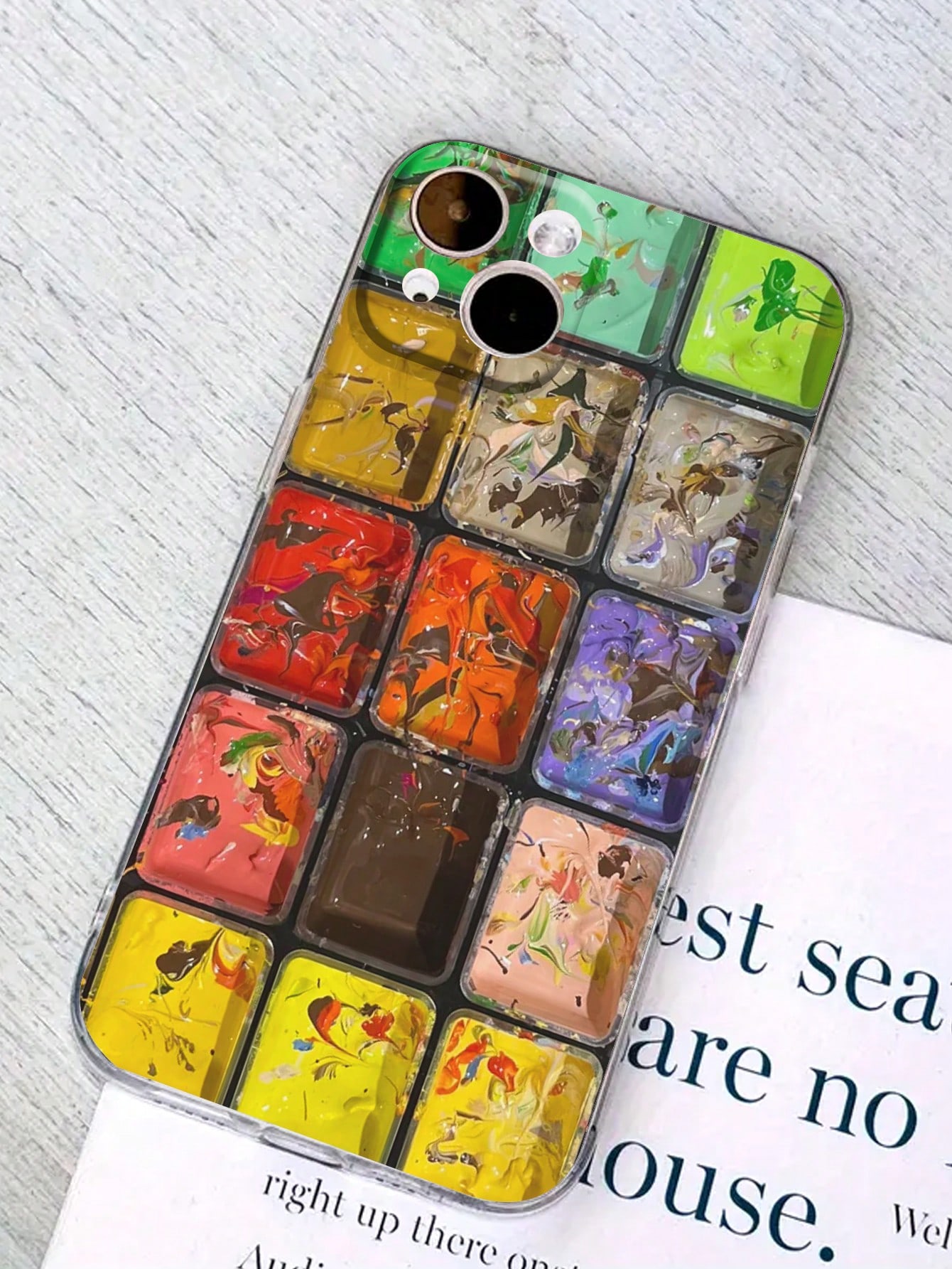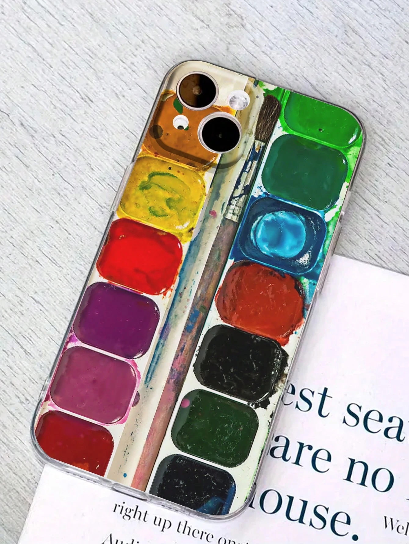 Graffiti Paint Box Printed Precision Hole Transparent Colorful Protective Phone Case, Compatible With IPhone 16/11/16pro/16plus/16promax/16e/15Promax/13/14/12/XS/XR/7G/8P, Compatible With Samsung Galaxy 11/12Pro/12/12X/13Pro/14Pro/15Pro/X3pro/, Compatible