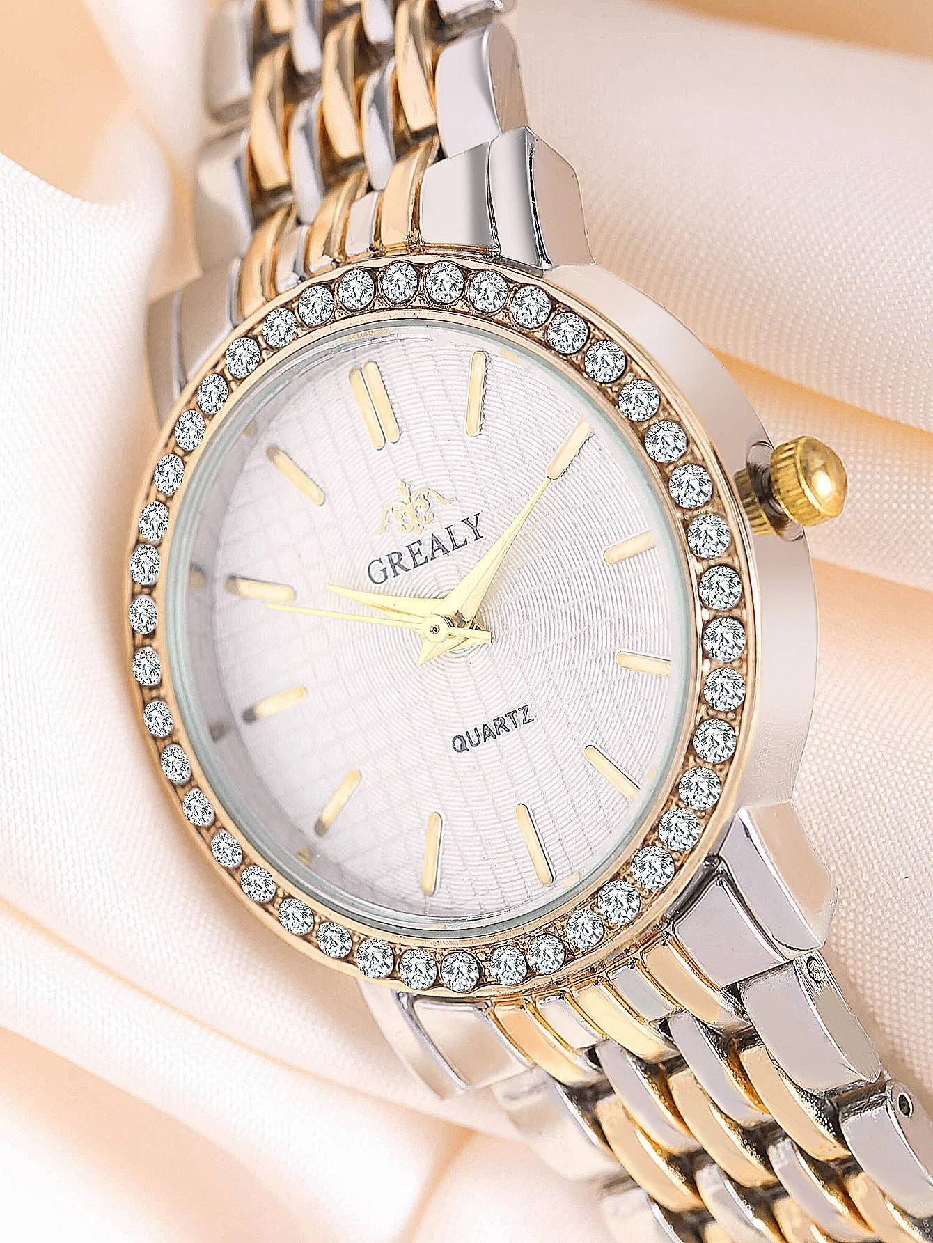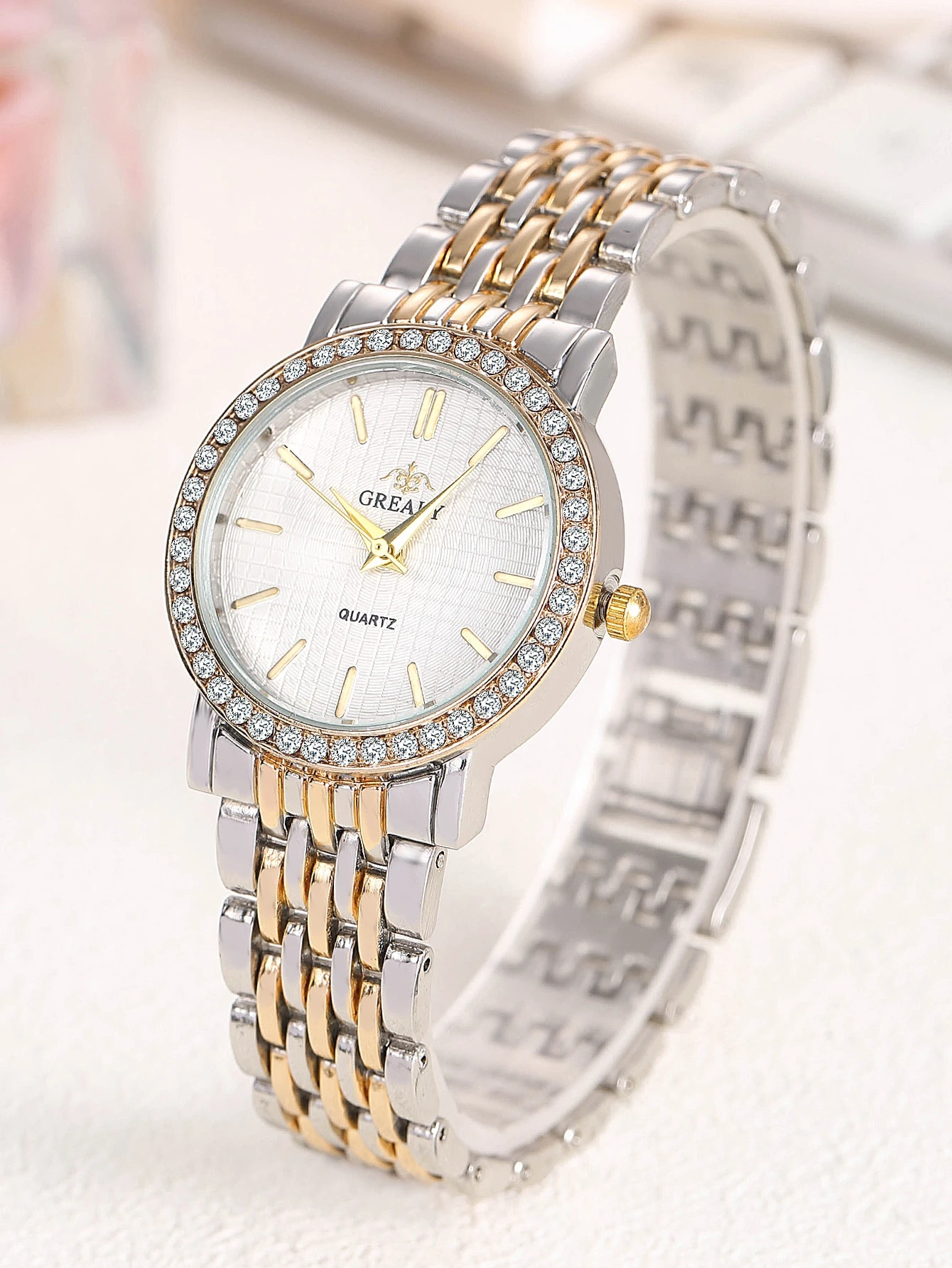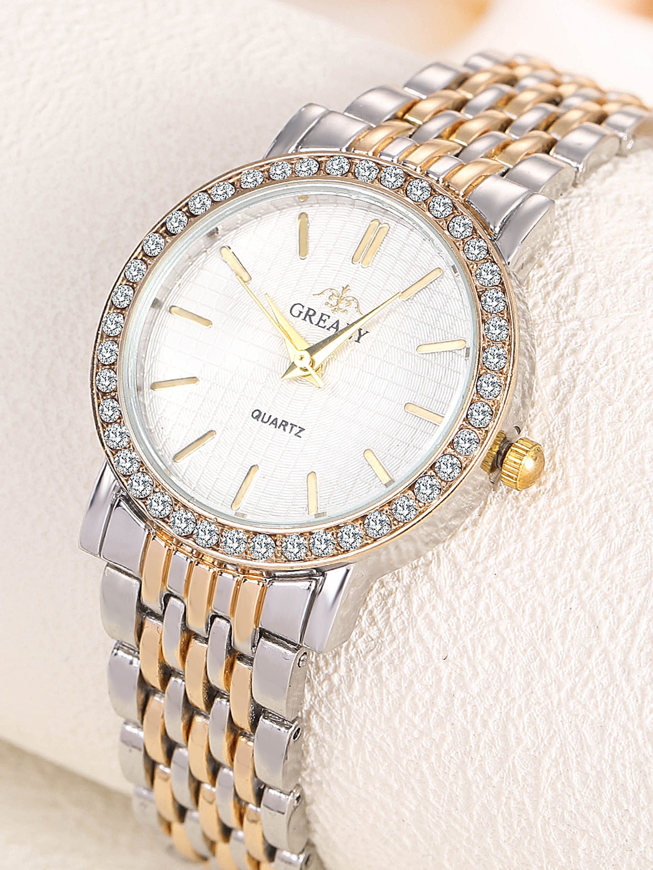 GREALY Rhinestone Decor Round Pointer Quartz Watch Holiday