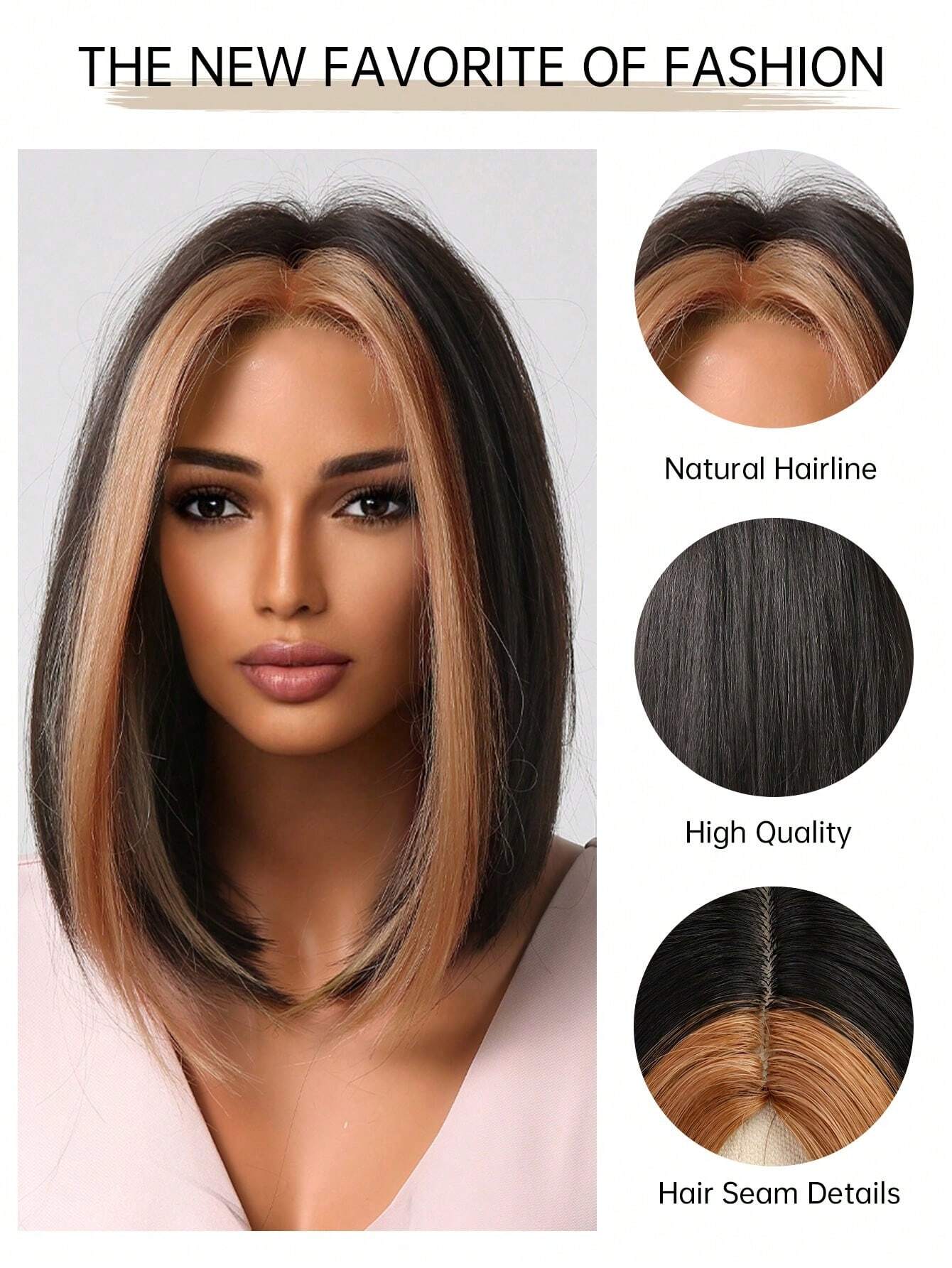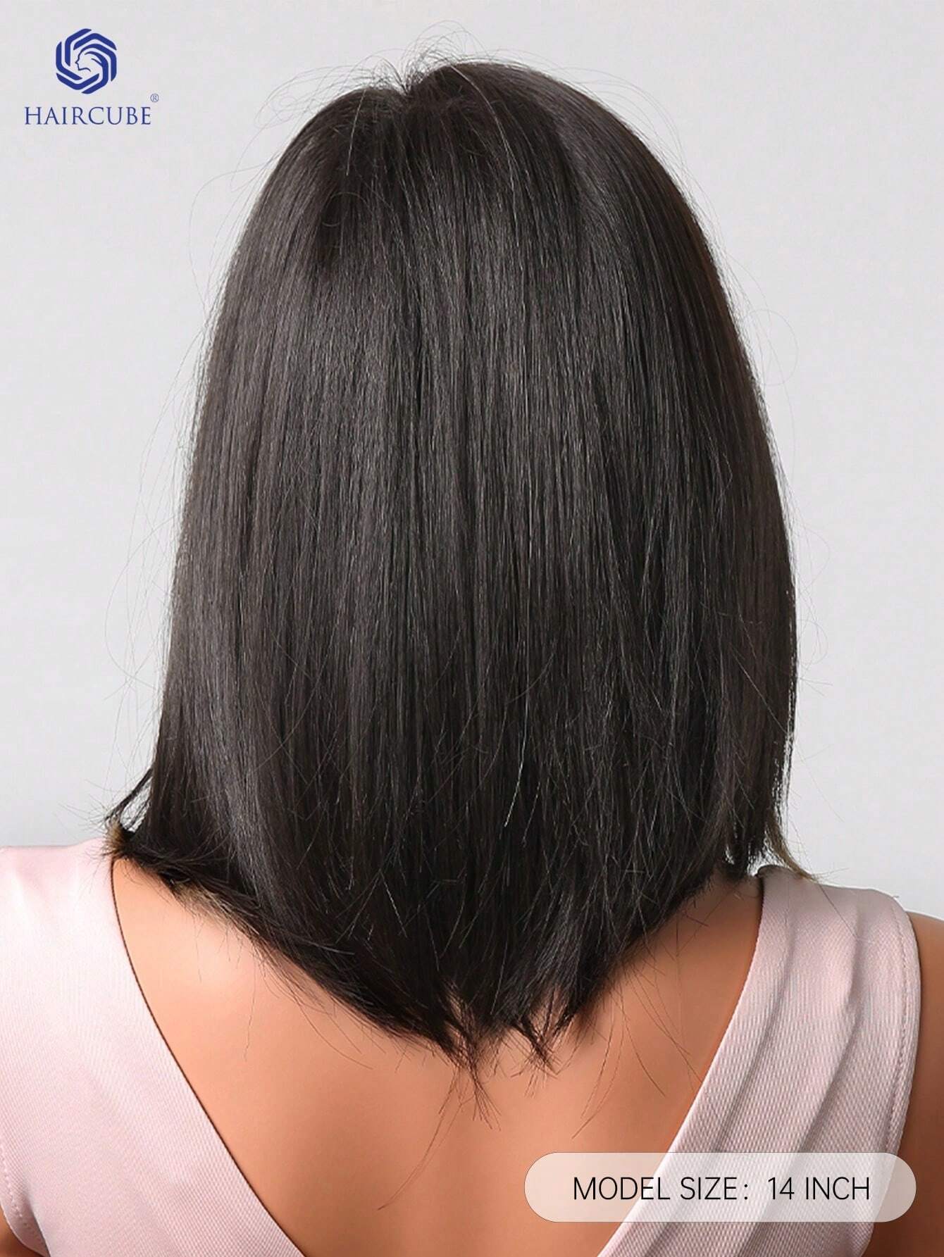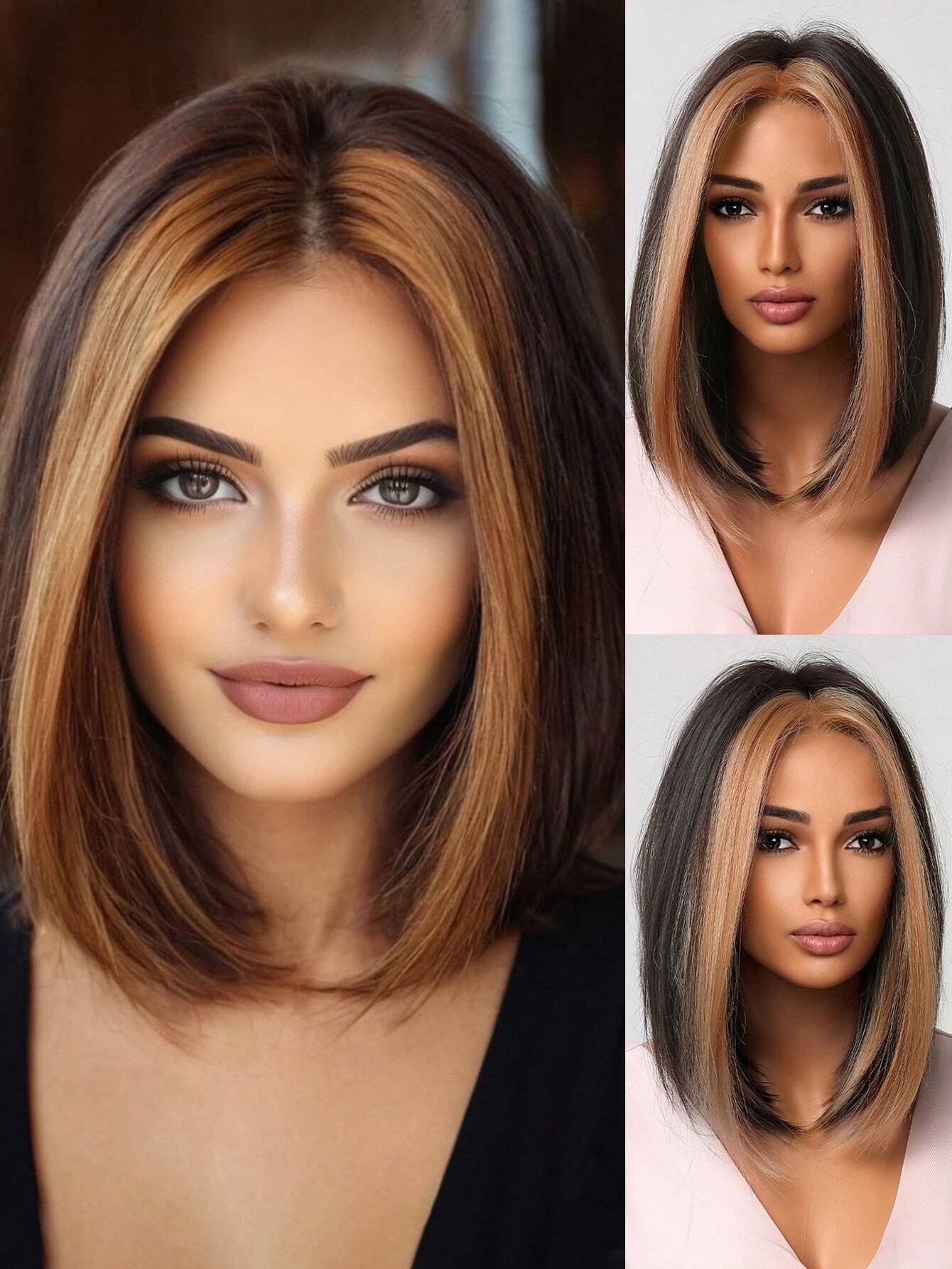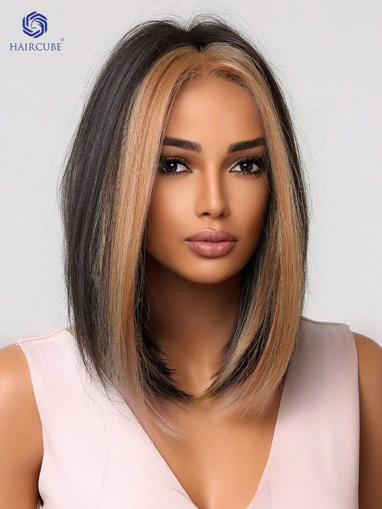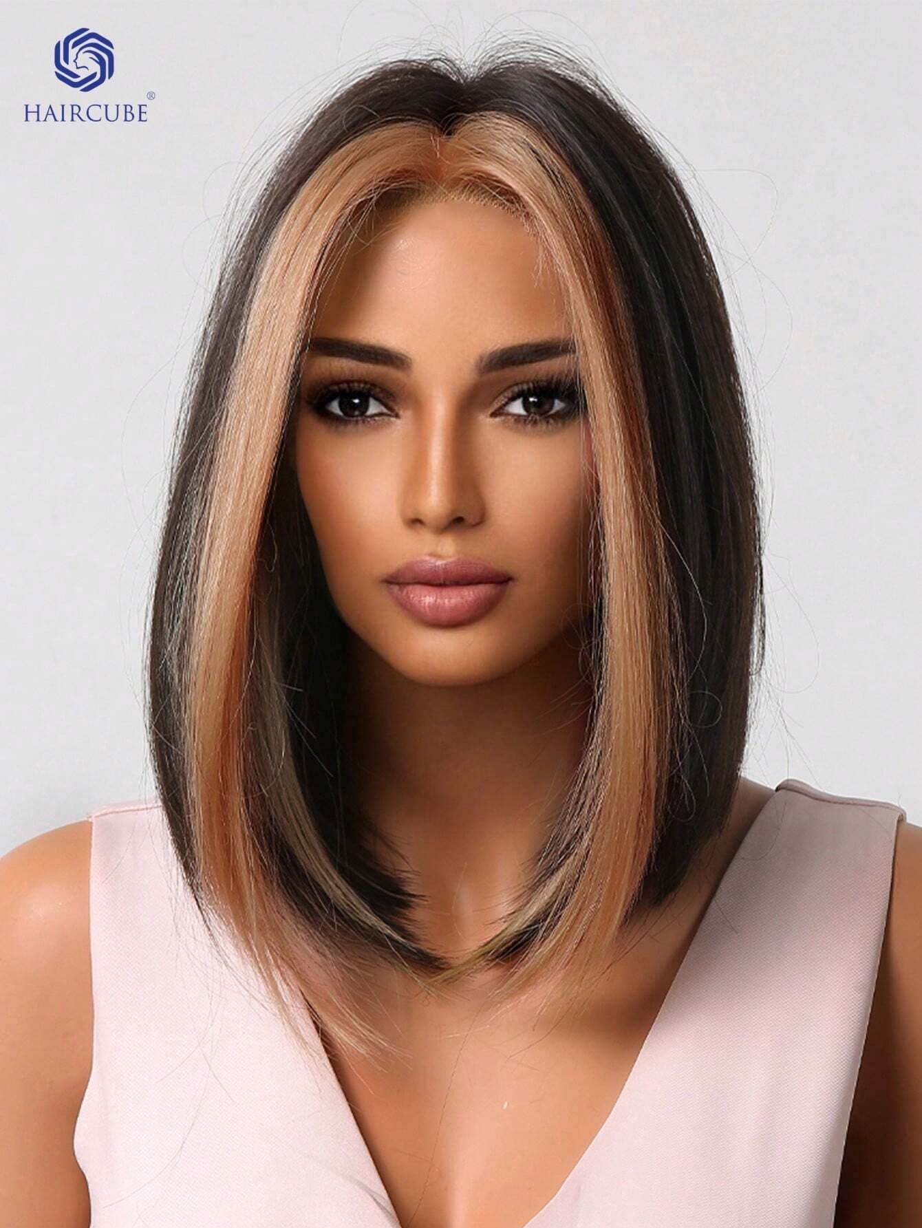 HAIRCUBE 12-Inch Dark Brown Highlights Straight Synthetic Hair Wig Short Bob Ladies Wig Brown Highlights.