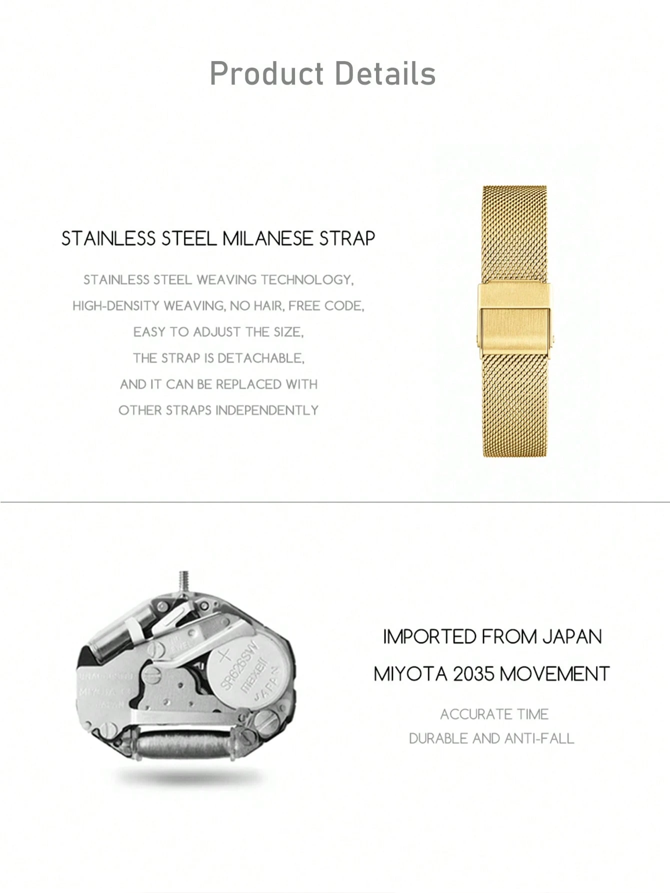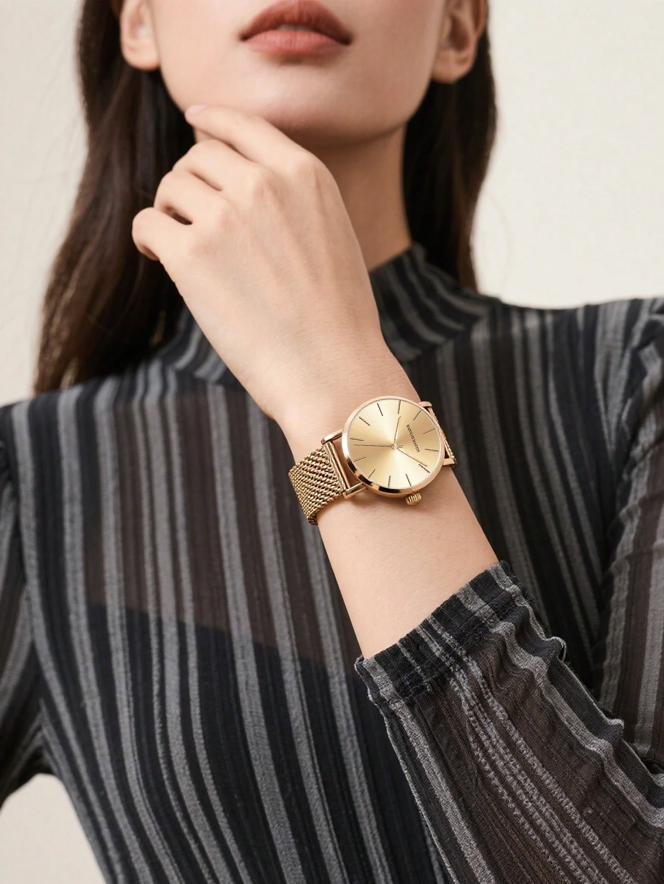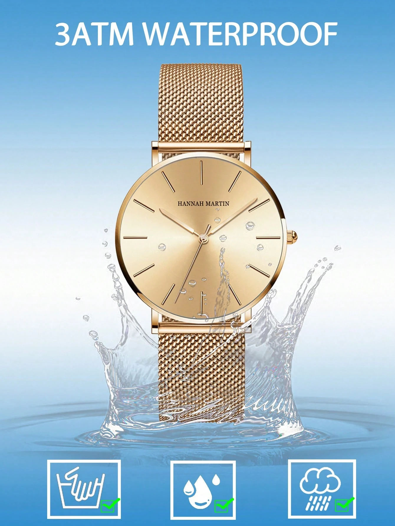 HANNAH MARTIN 1pc Women's Elegant Quartz Watch, 3ATM Water Resistant, Rose Gold Stainless Steel Mesh Strap, Japanese Quartz Movement, 36mm Round Case, Timeless Fashion Watch, Comes With Exquisite Black Gift Box, Suitable For Girlfriend & Mother Gifts
