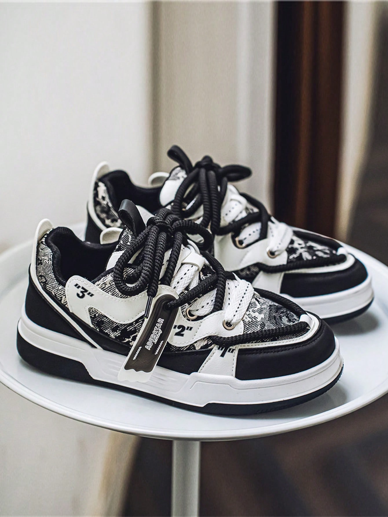 Men'S Retro Style Sneakers – Breathable, Lightweight, Thick Sole Casual Shoes with Lace-Up Closure, Black & White Design, Perfect for Casual Attire & Running, Casual Footwear | Retro Style Sneakers | Fabric Lined Interior