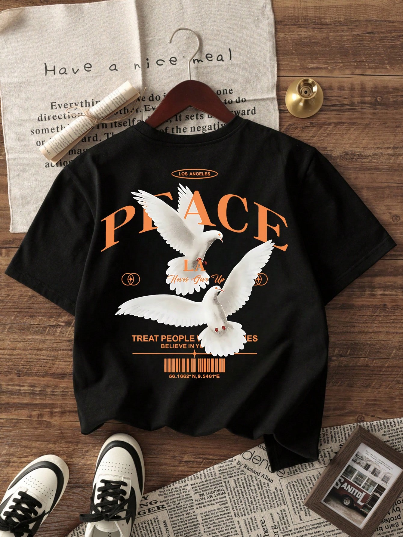 Gepersonaliseerde T-shirt met korte mouwen en duivenslogan voor heren, geschikt voor de zomer, comfortabel en ademend, toonaangevend in de mode