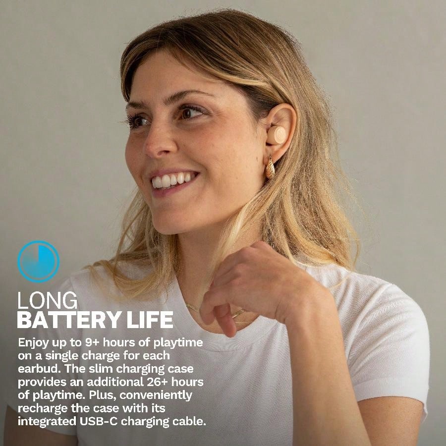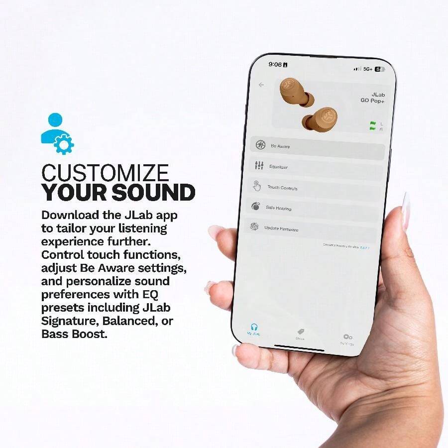 JLab Go Tones+ True Wireless Bluetooth Earbuds, Auto On And Connect, Touch Controls, 35+ Hours Bluetooth Playtime, EQ3 Sound, Dual Connect Earphones, Fast Charge, Rechargeable, Headphones, 2 Year Warranty