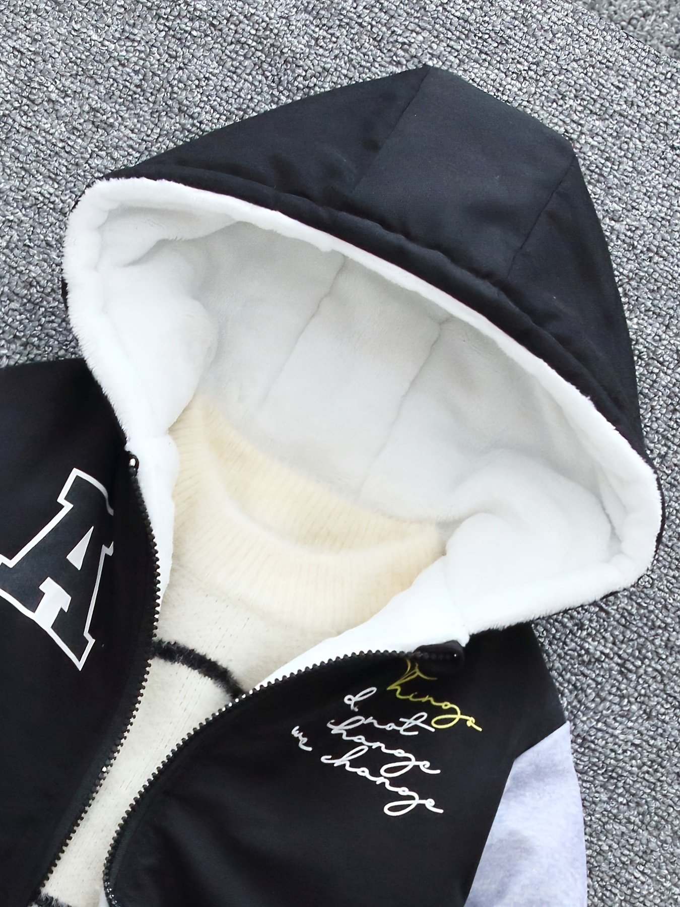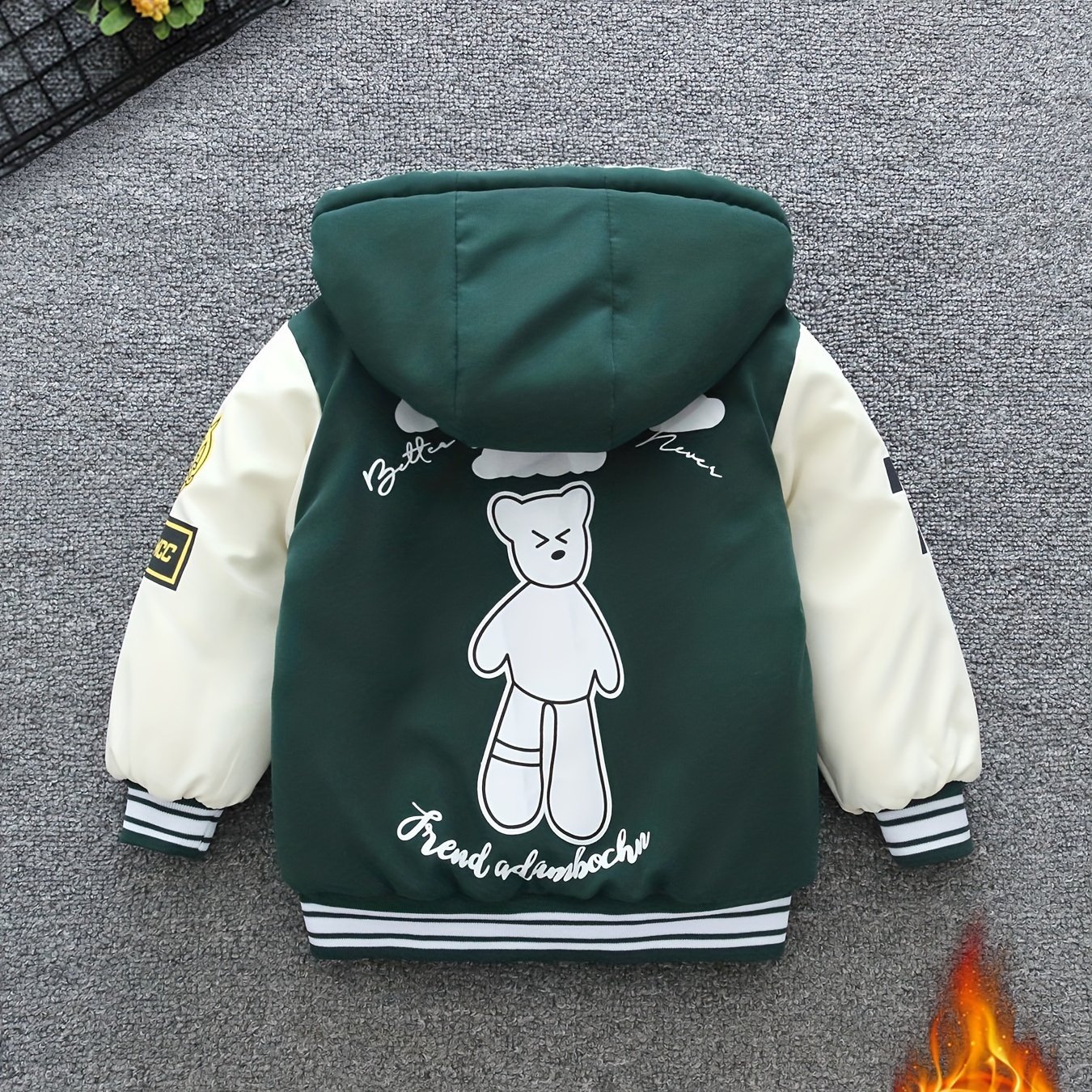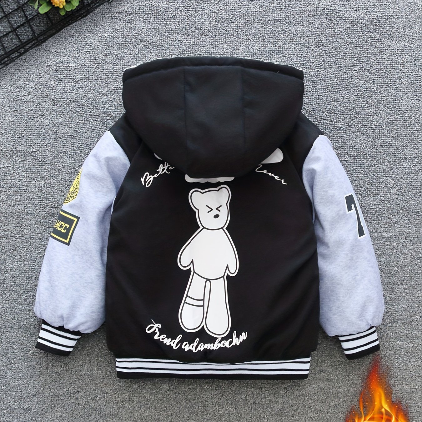 Korean Style Cartoon White Bear Print Jacket for Girls and Boys, Loose Hooded Coat for Autumn and Winter