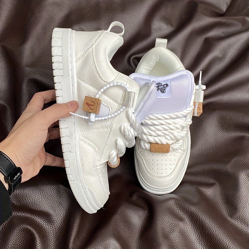 Large-size Low-Top Sneakers | White Thick Tongue Loafers, Versatile Retro Street Fashion, Unisex, Suitable for All Seasons, Casual & Sports Occasions