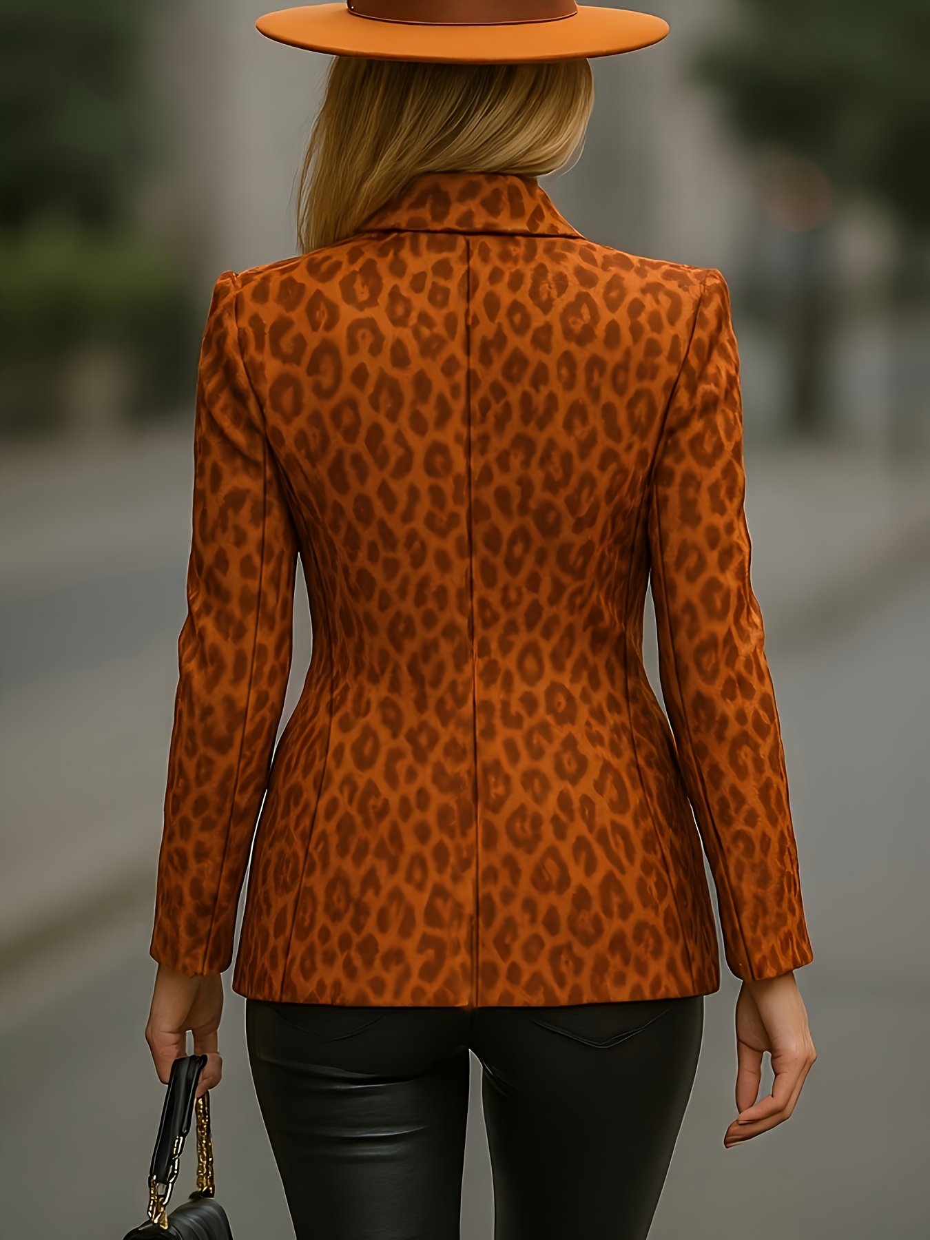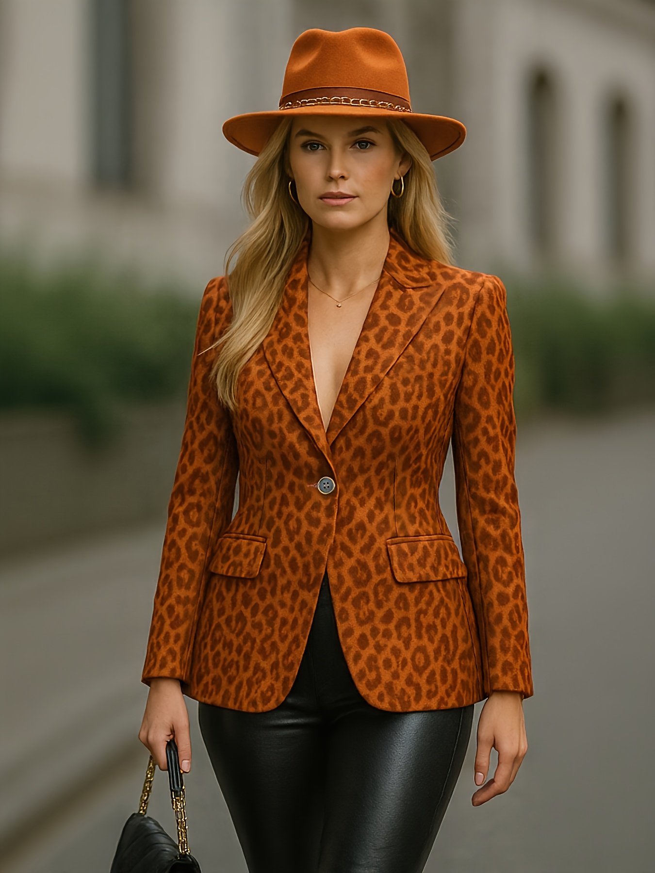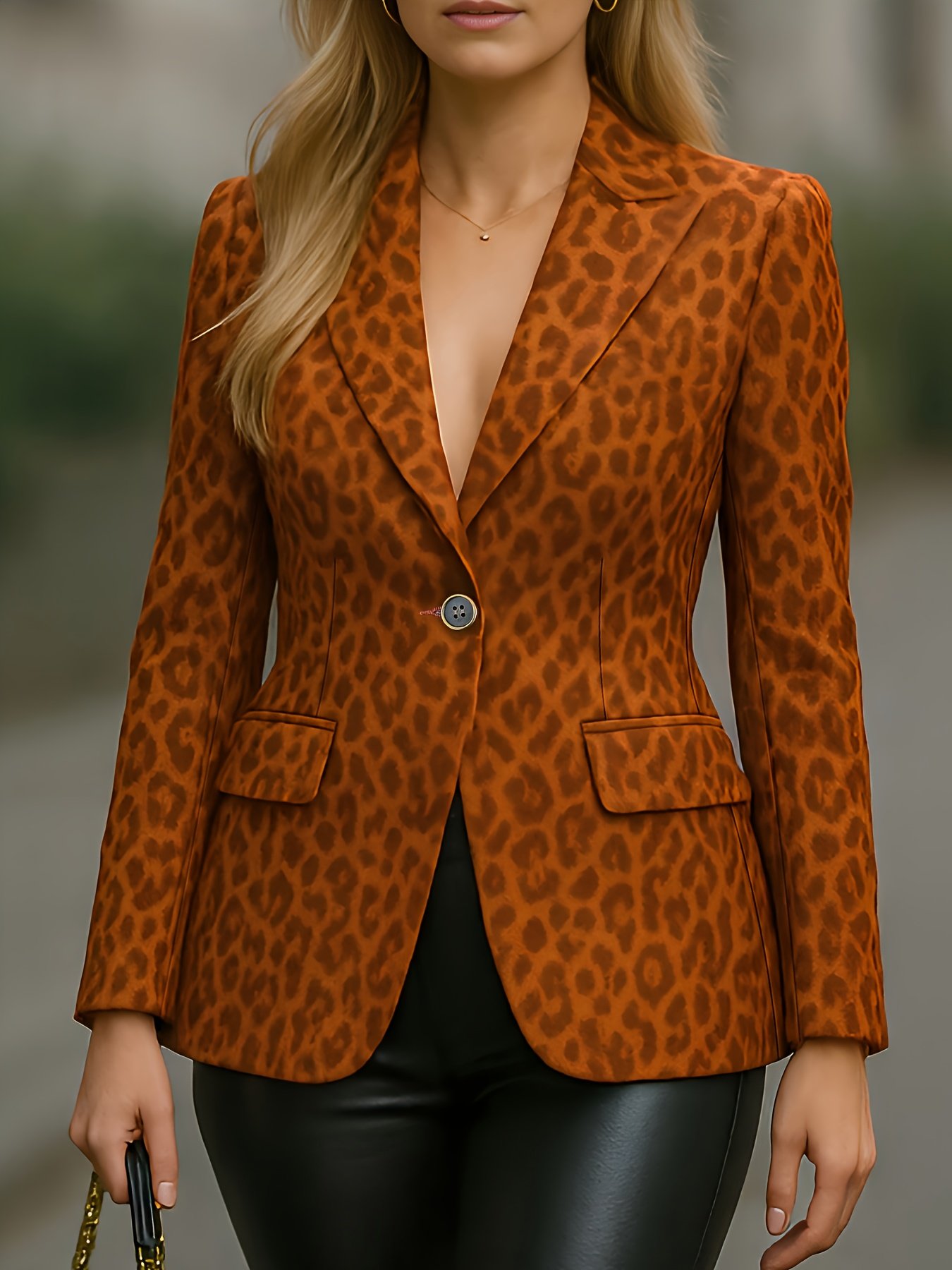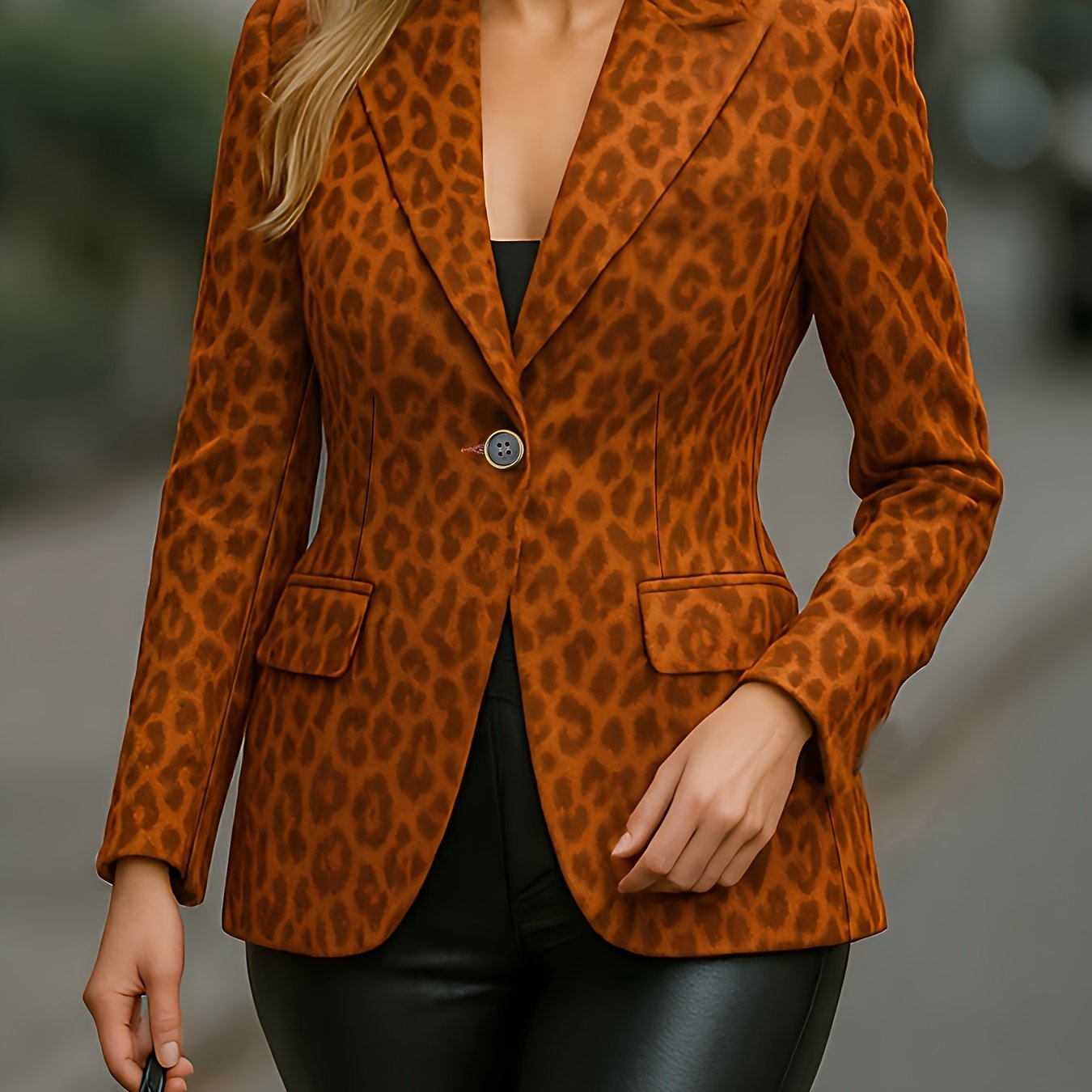 Leopard Print Blazer | Dorabana Chic Style with Regular Sleeves and Pockets, Single Button Closure