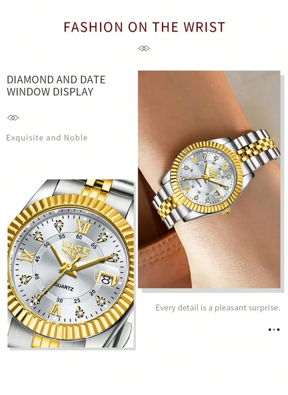LIGE LIGE Fashion Women's Business And Casual Watch Waterproof Small And Exquisite Quartz Watch Elegant Daily Wear Calendar Date Watch Giving Friends And Girlfriends Holiday Gifts