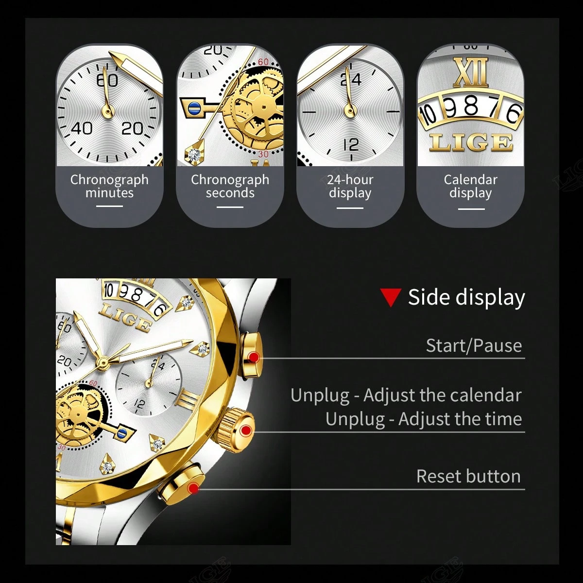 LIGE LIGE Fashion Women's Elegant Watch Waterproof Luminous Quartz Watch Business Daily Calendar Watch