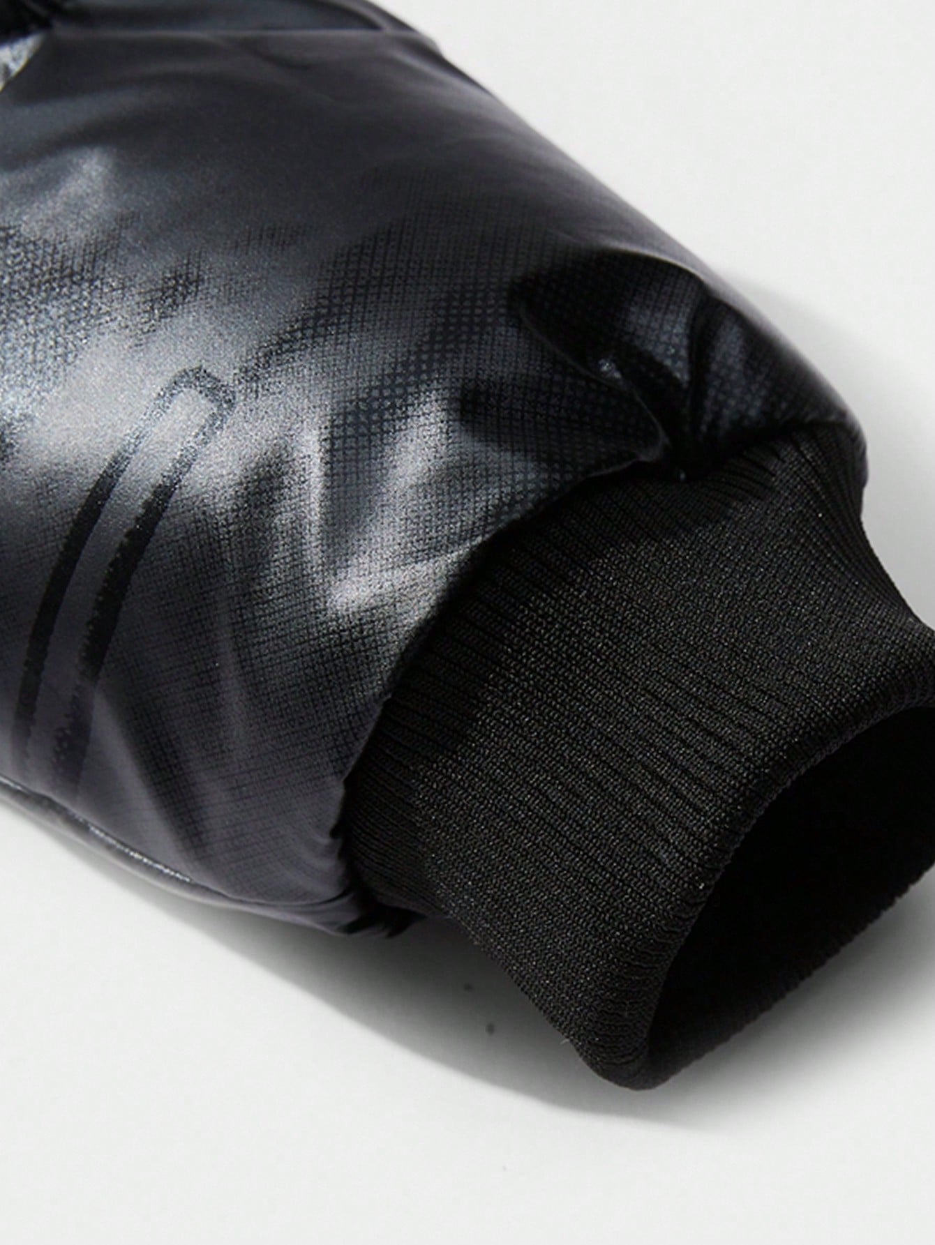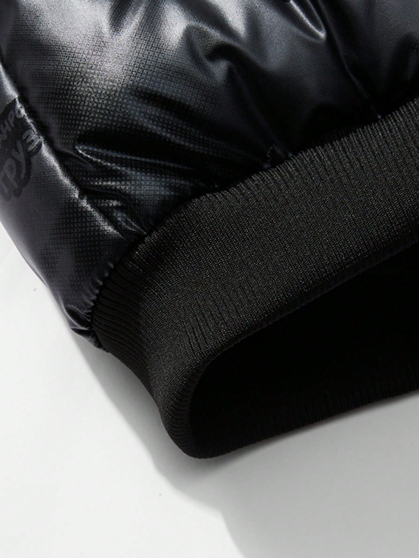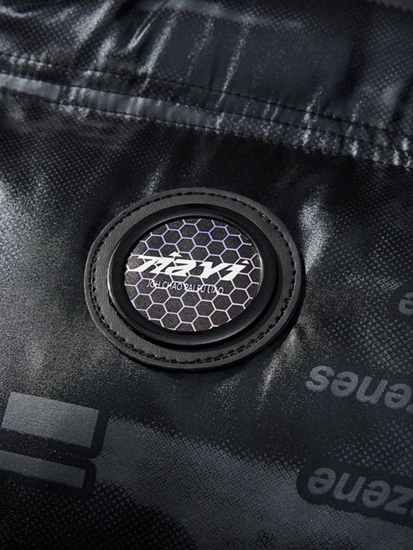 ROMWE MEN Prep Herenjas met kleurblokstiksel, voorkant, nummer, alfabetpatroon en zak, casual ravejack