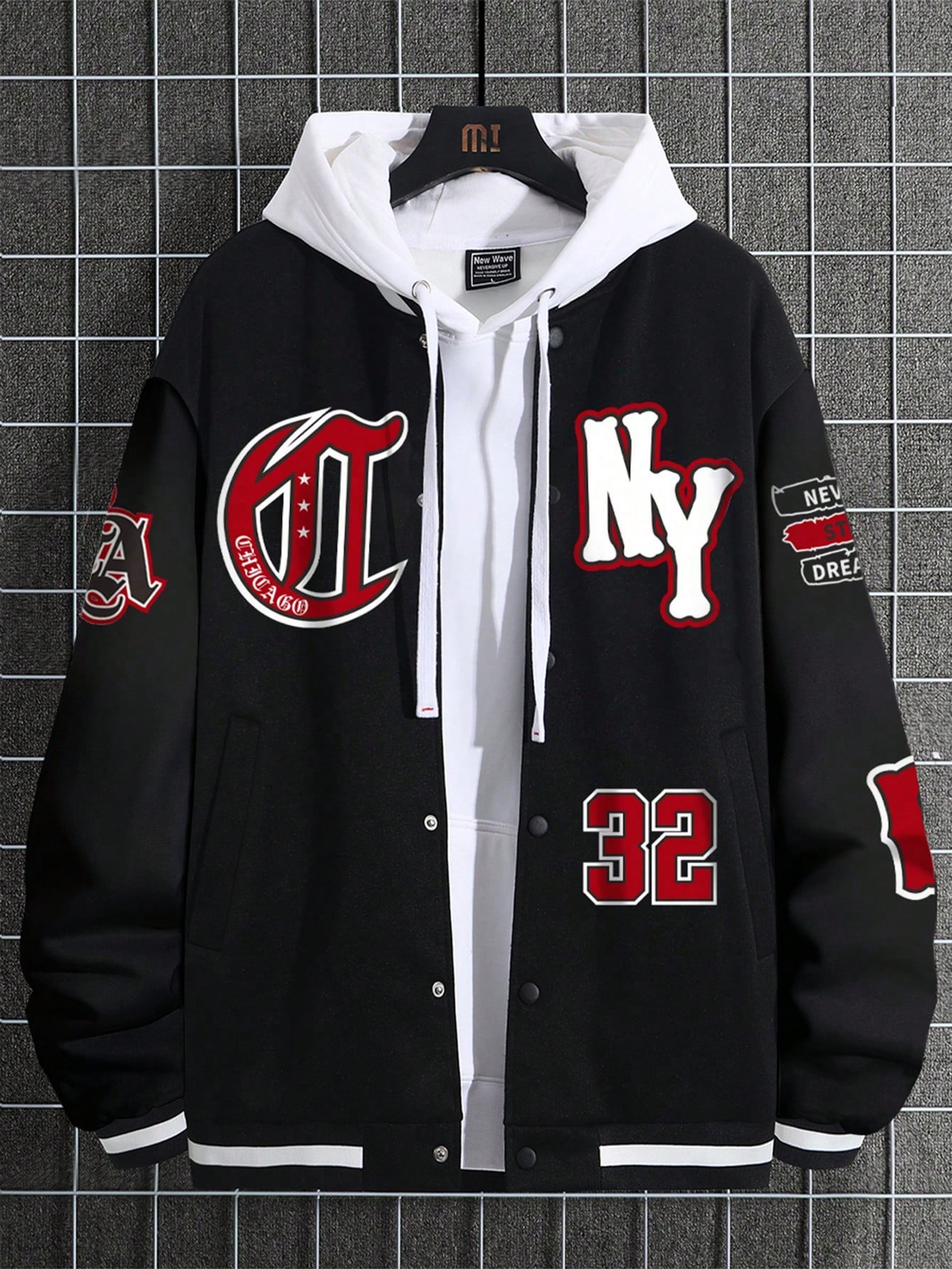 Ideaal voor : conventioneelHalslijn : Honkbal-kraagScènes : StraatPatroon type : Tekst, GestreeptType mouwen : OversizedType : VarsityDetails : Patched, Zak,