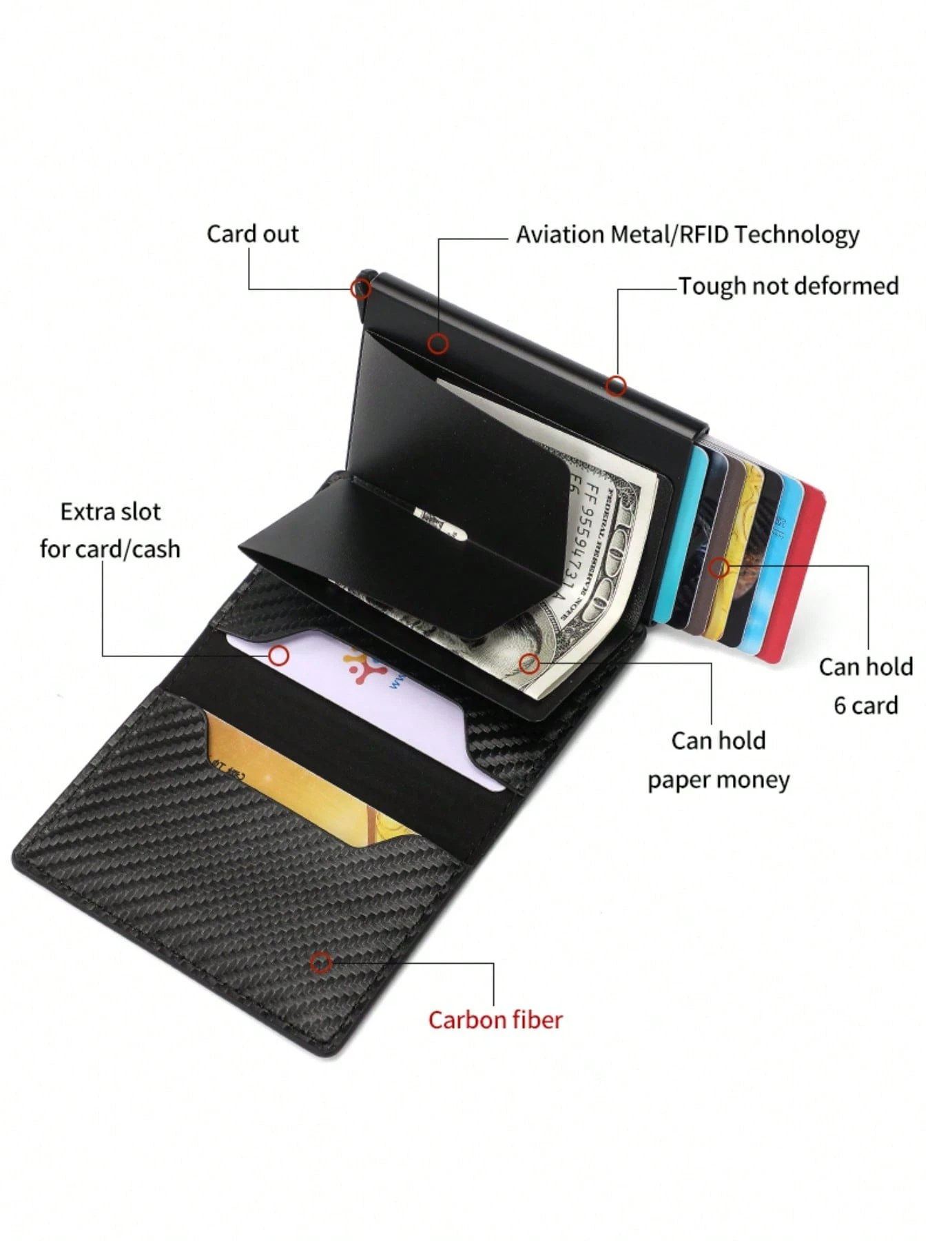 Be the first to review “Men Credit Card Holder Wallet Men Rfid Smart Meral Thin Slim Pop Up Minimalist Wallet Small Black Purse Metal Wallet” Cancel reply