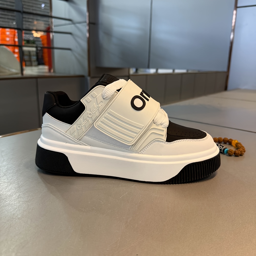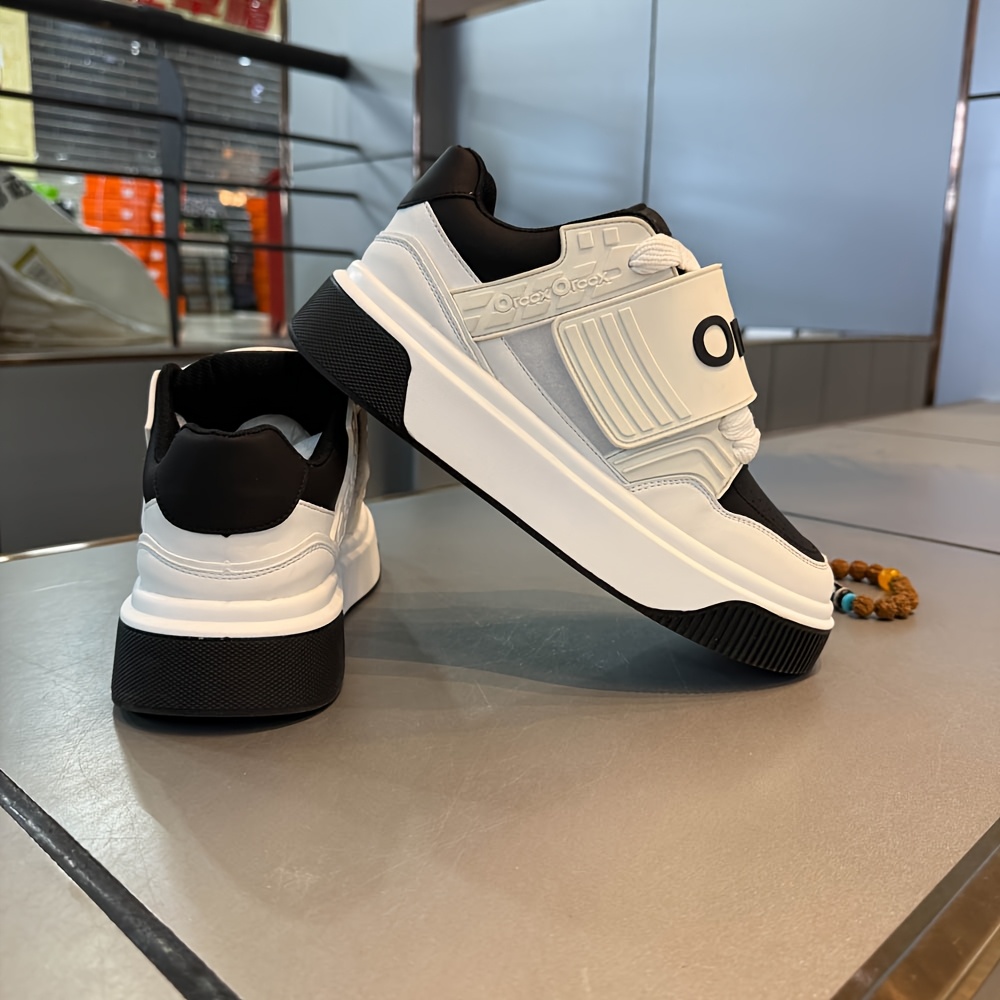 Men'S All-Season Trendy Casual Sneakers – Comfortable Low-Top Lace-Up Shoes with Durable Rubber Sole, Breathable Fabric Lining, and Stylish Black & White Design for Casual Attire, Casual Footwear | Modern Sneakers | Synthetic Cover Shoes
