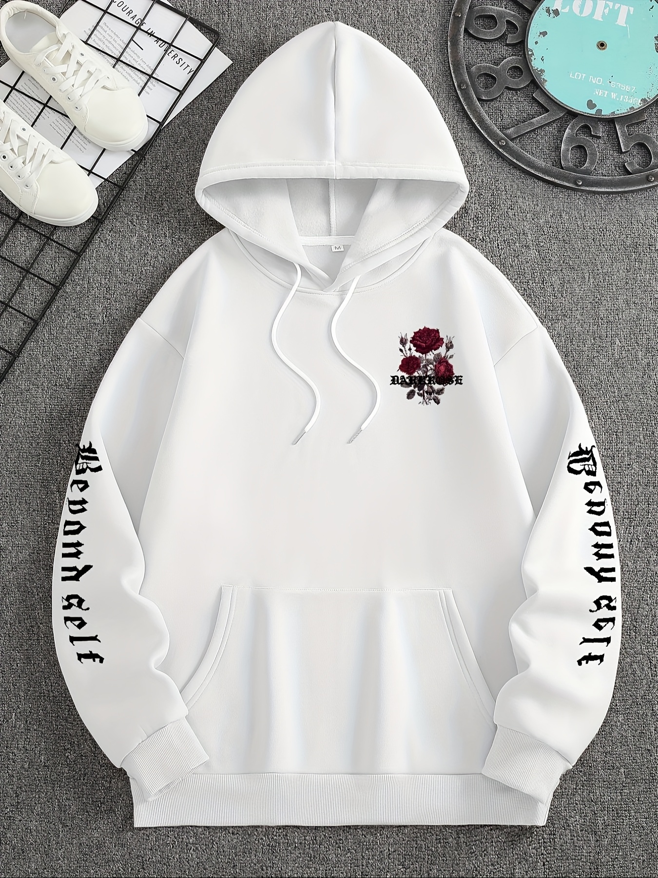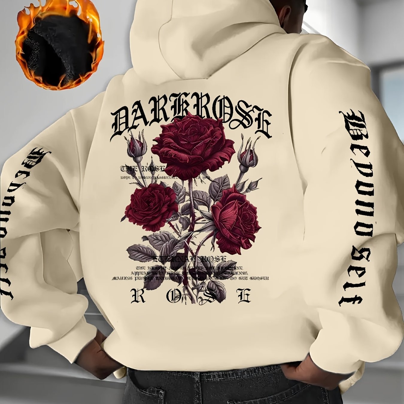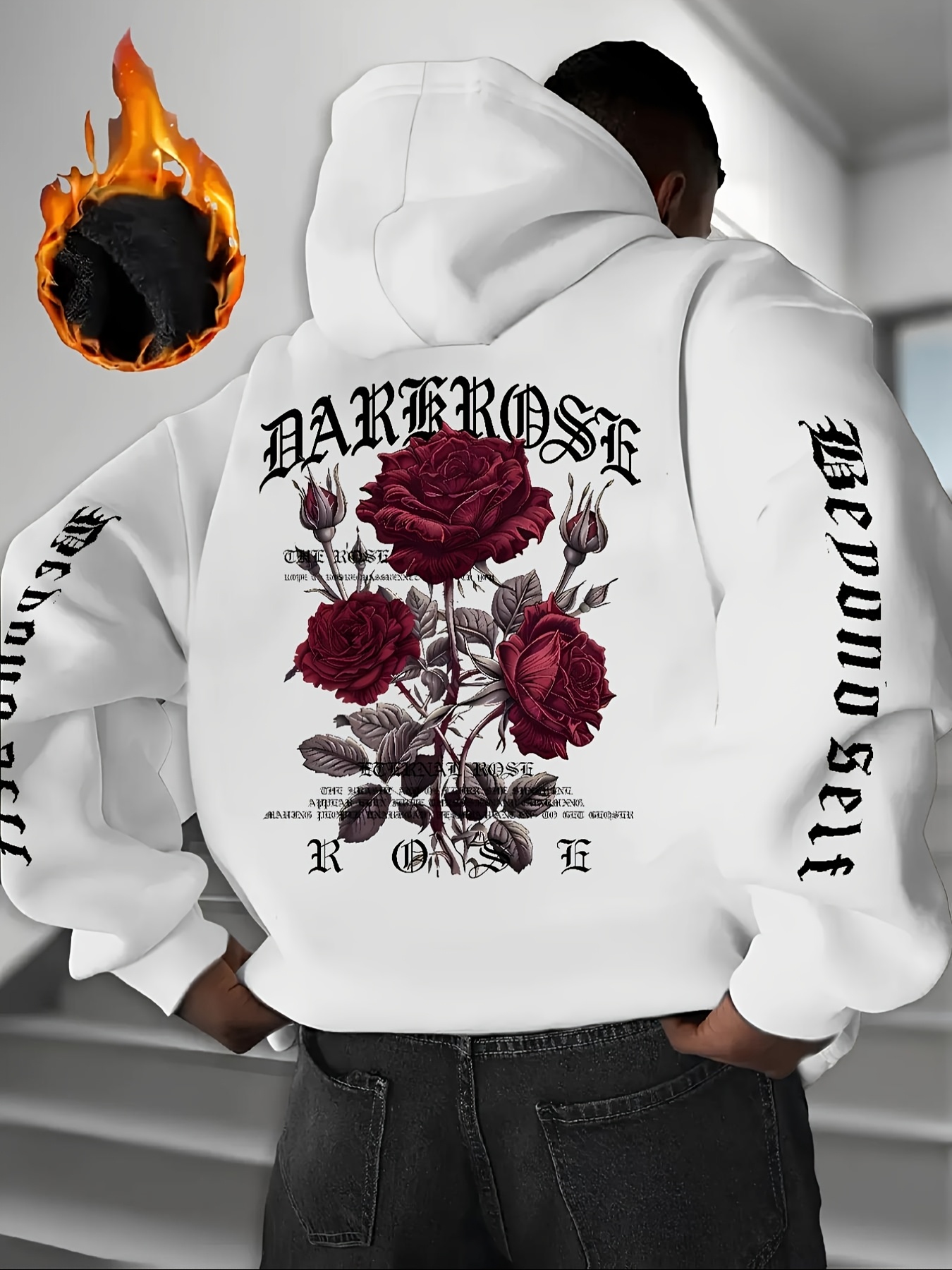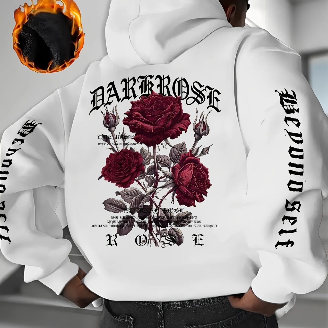 Men'S Black Hoodie with "e;BARTEROSE"e; Floral Print – Cozy Fleece-Lined Pullover, Loose Fit, Casual Sporty Style, Pockets Included, Perfect for Fall & Winter, Autumn Winter Apparel | Floral Hoodie | Fleece Lined Hoodie