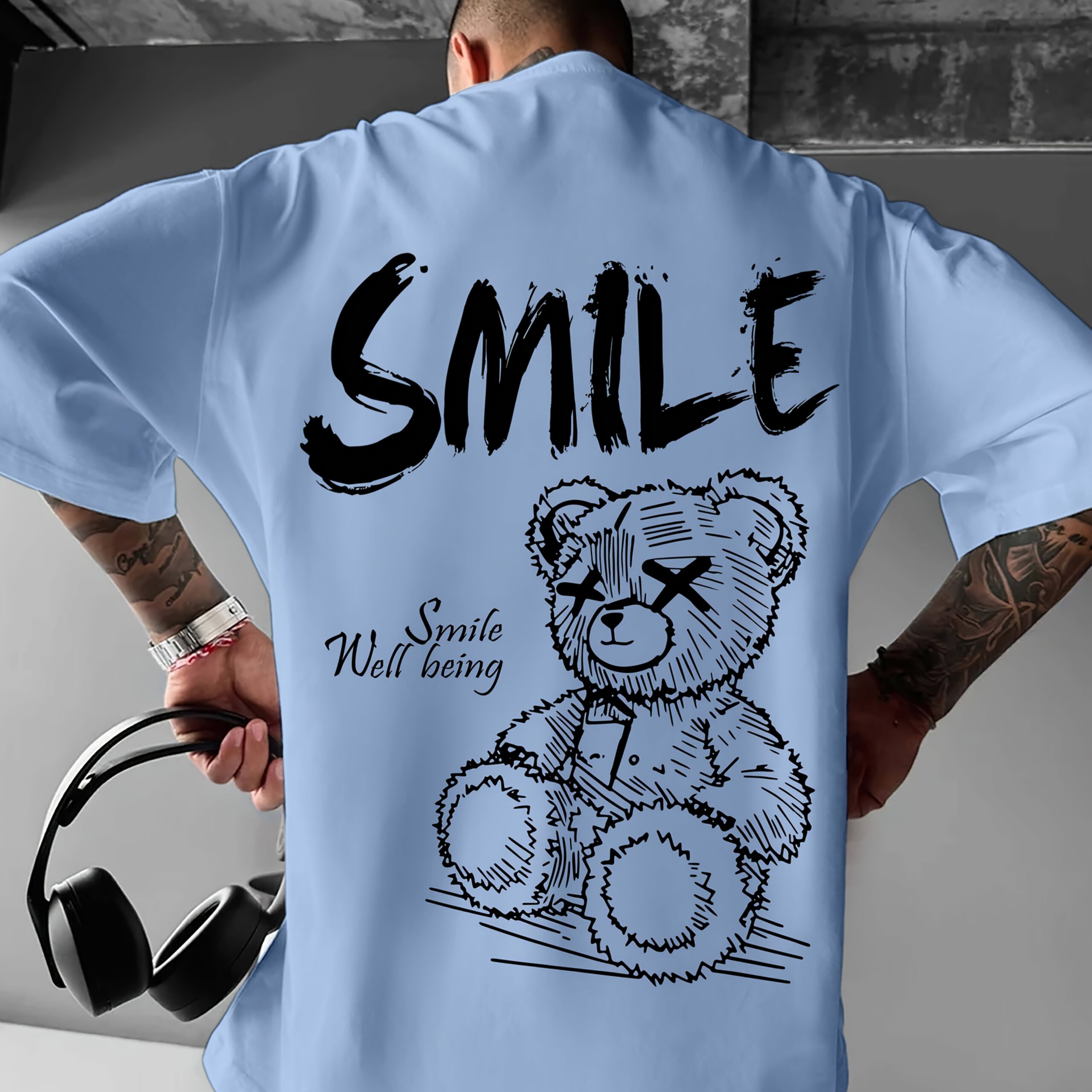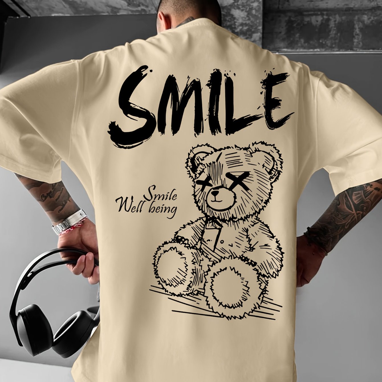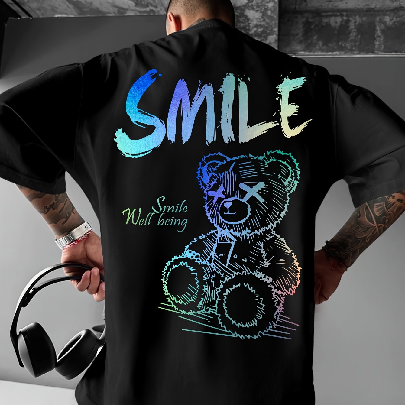 Men'S Bright Yellow Graphic T-Shirt – Loose Fit Streetwear Tee with Smile Design, Round Neck Summer Shirt for Everyday & Formal Outfits – Lightweight Casual Top, Street Style, Bold Print, Comfortable Material, Printed Shirt, Urban Style, Street Fashion, G