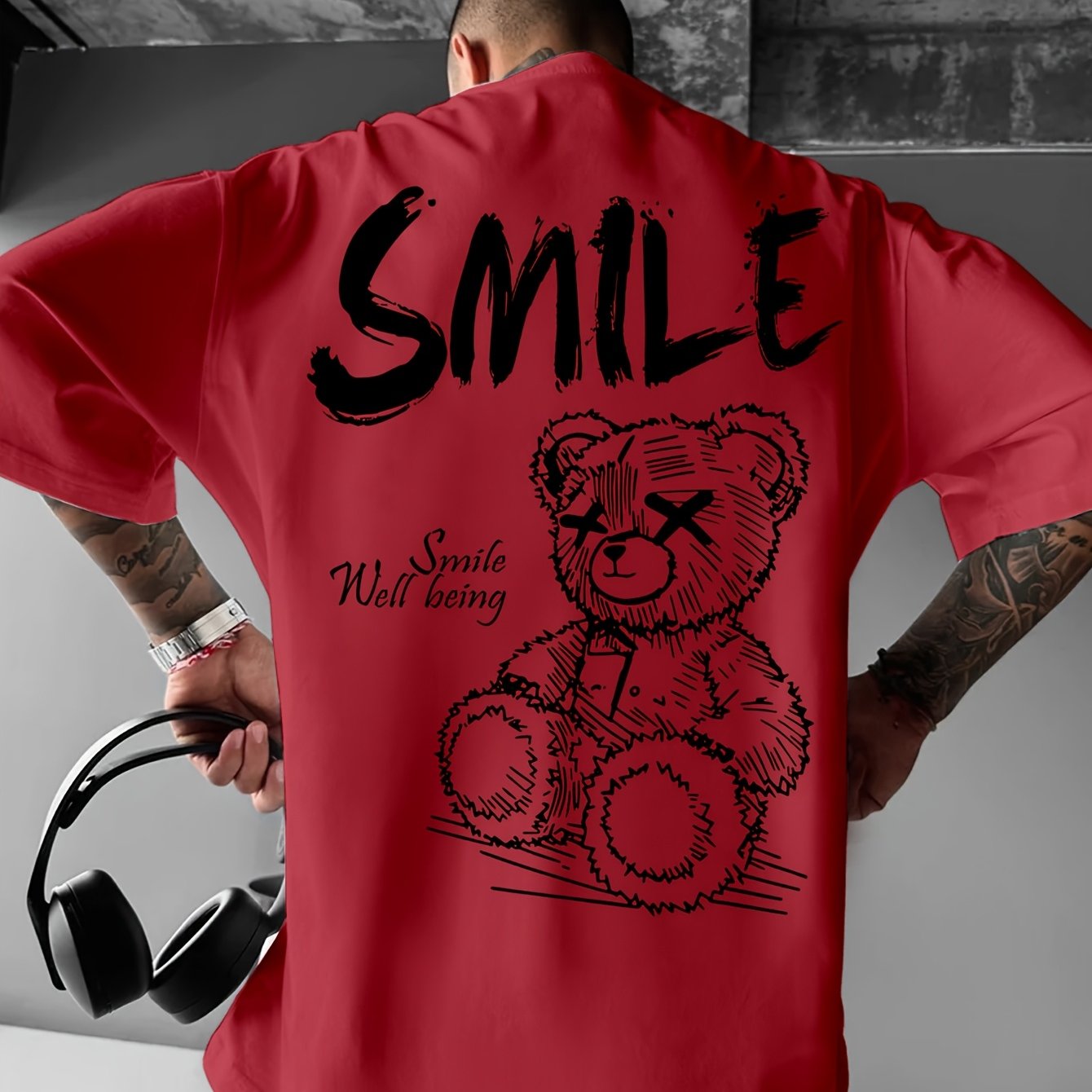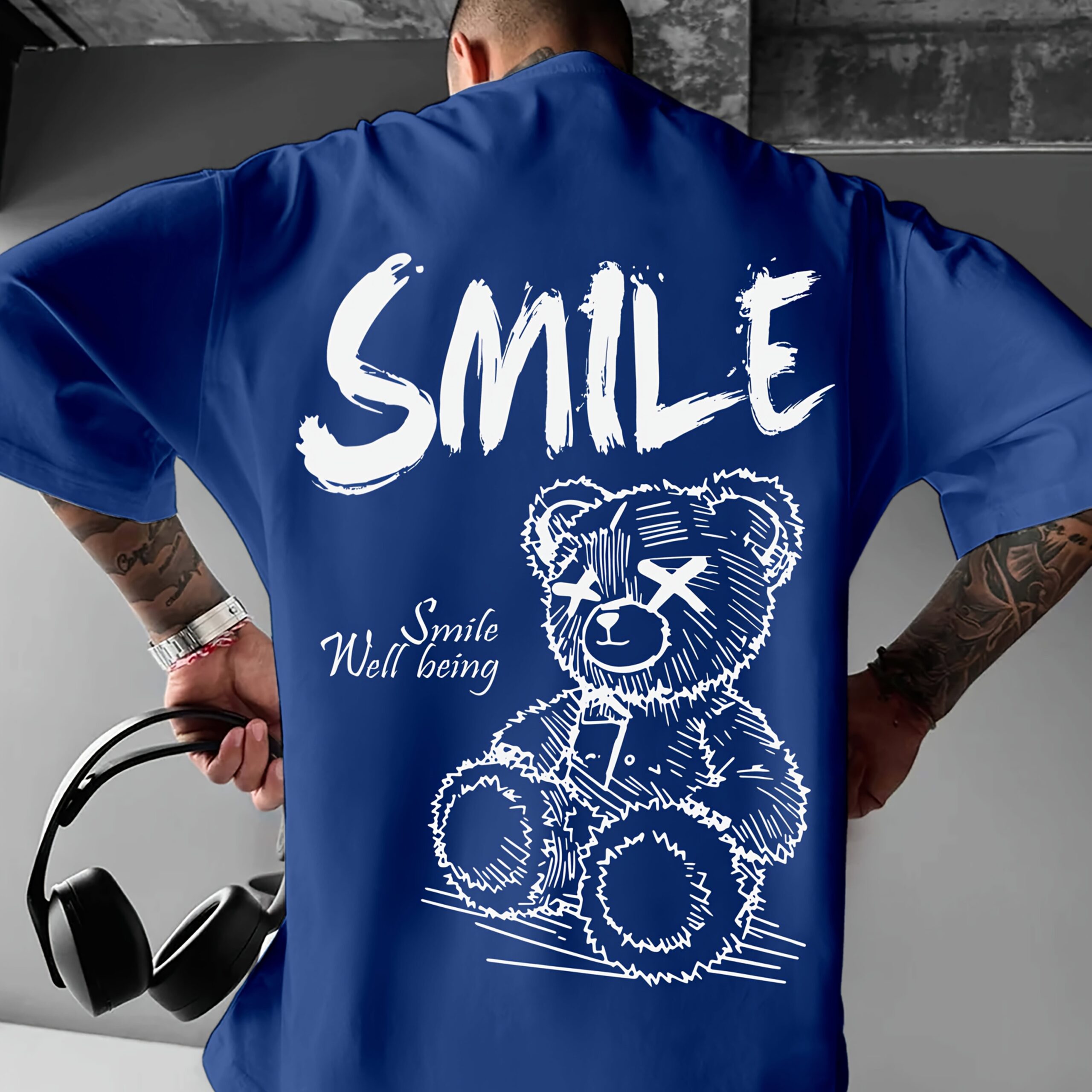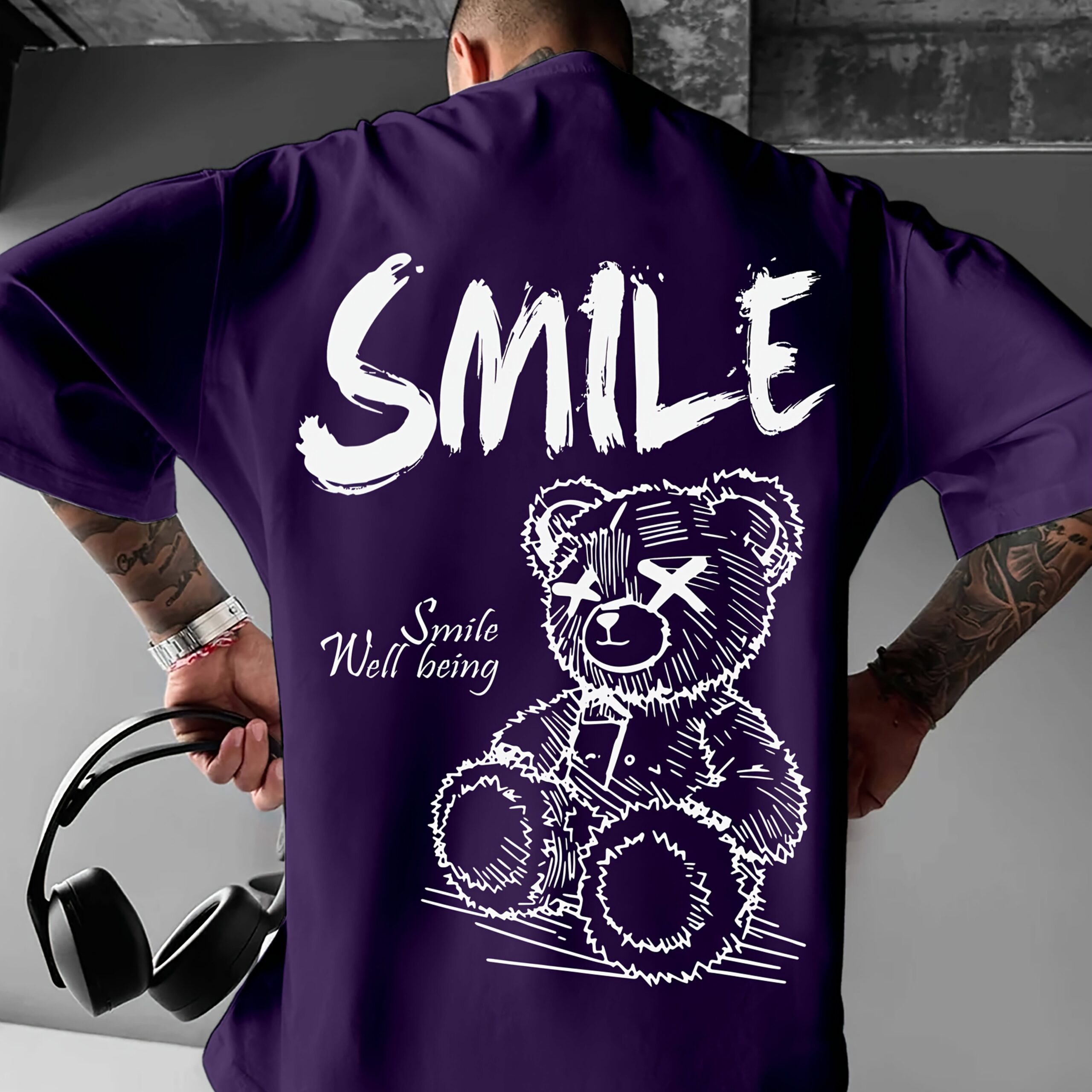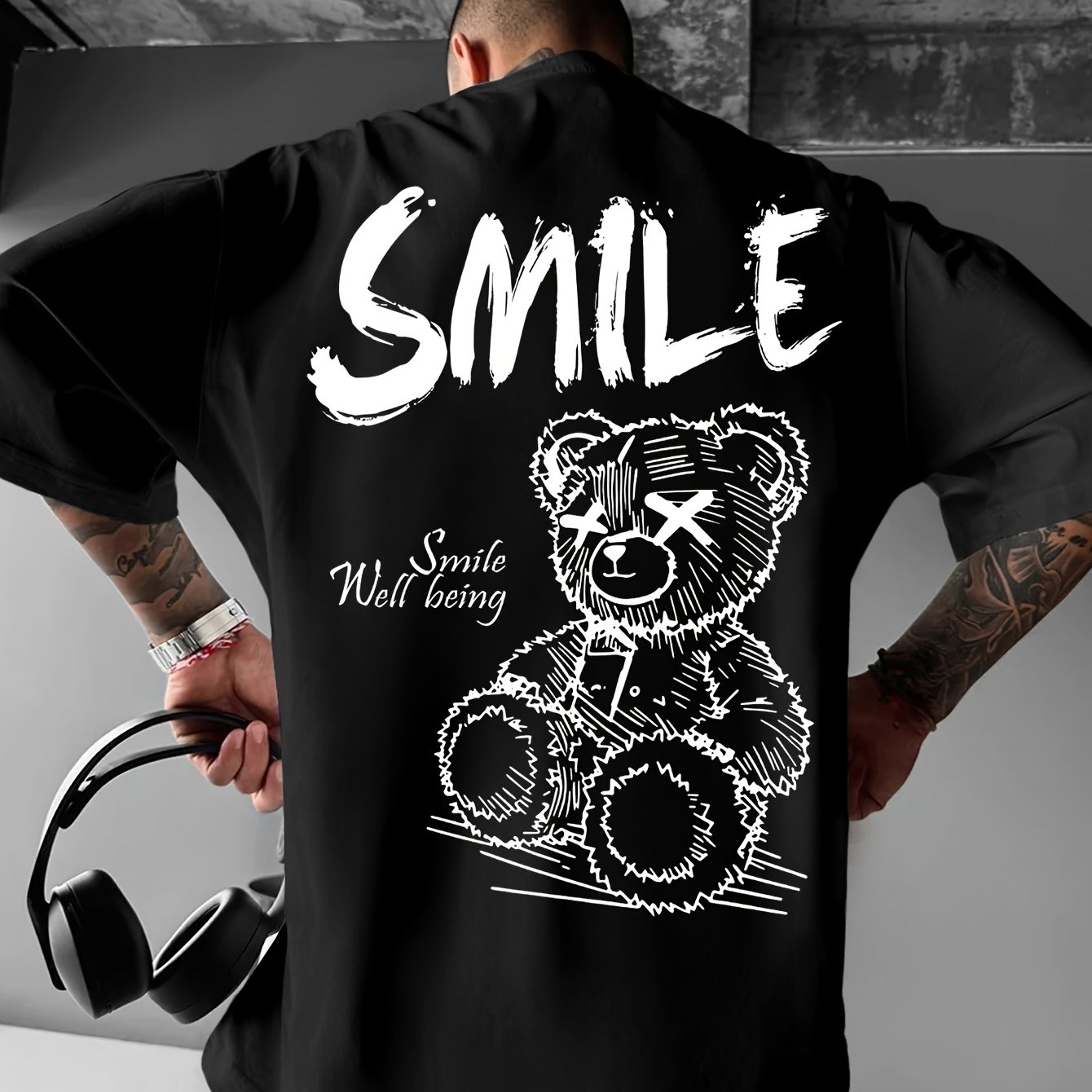 Men'S Bright Yellow Graphic T-Shirt – Loose Fit Streetwear Tee with Smile Design, Round Neck Summer Shirt for Everyday & Formal Outfits – Lightweight Casual Top, Street Style, Bold Print, Comfortable Material, Printed Shirt, Urban Style, Street Fashion, G