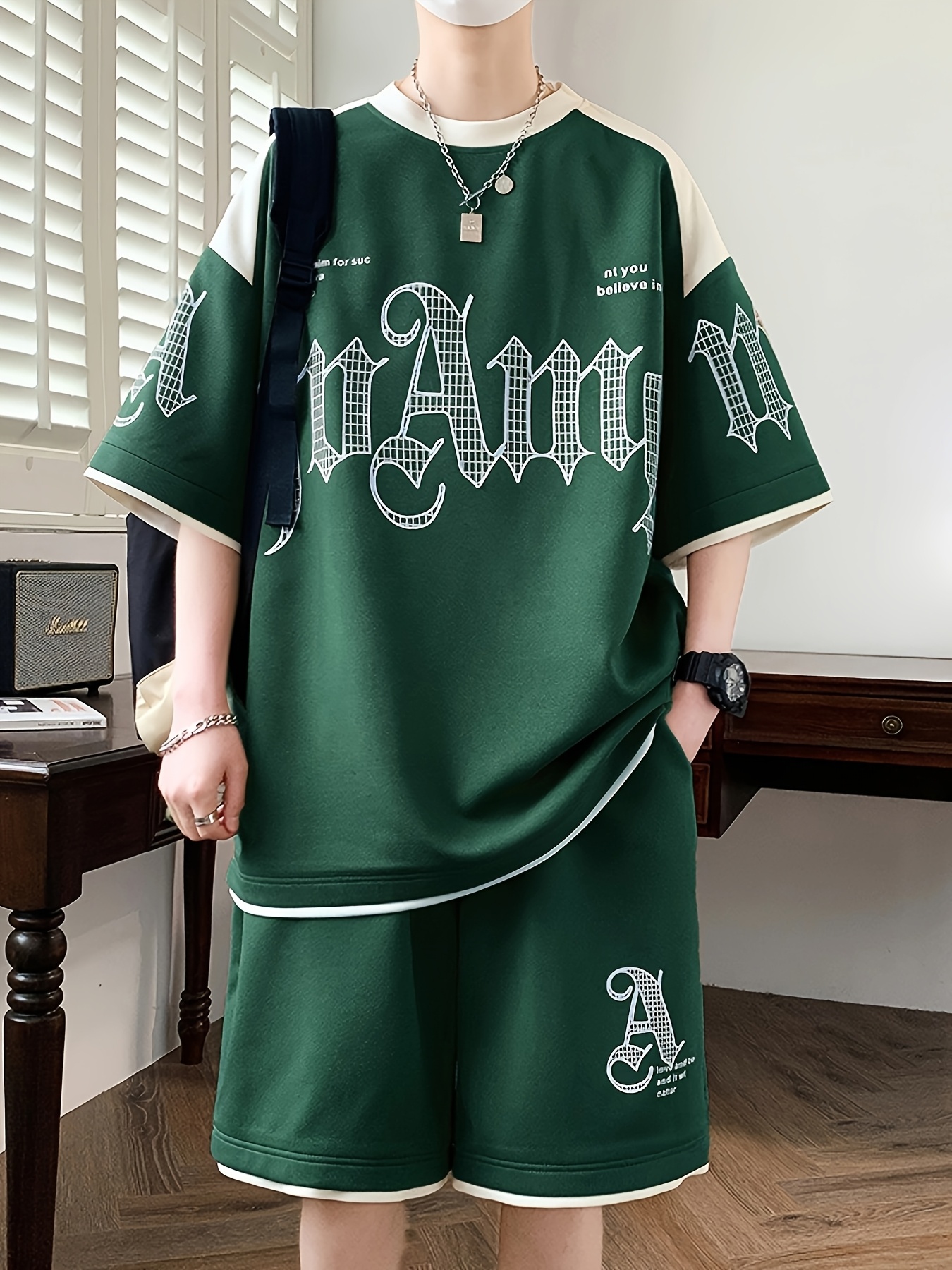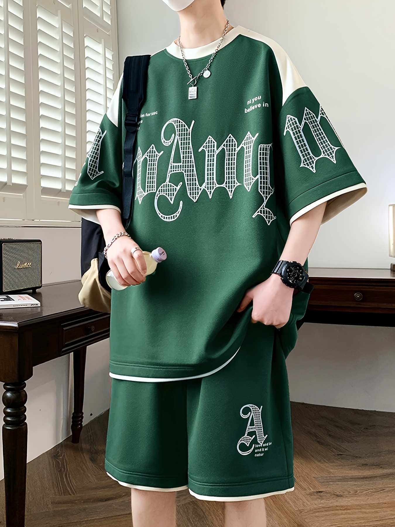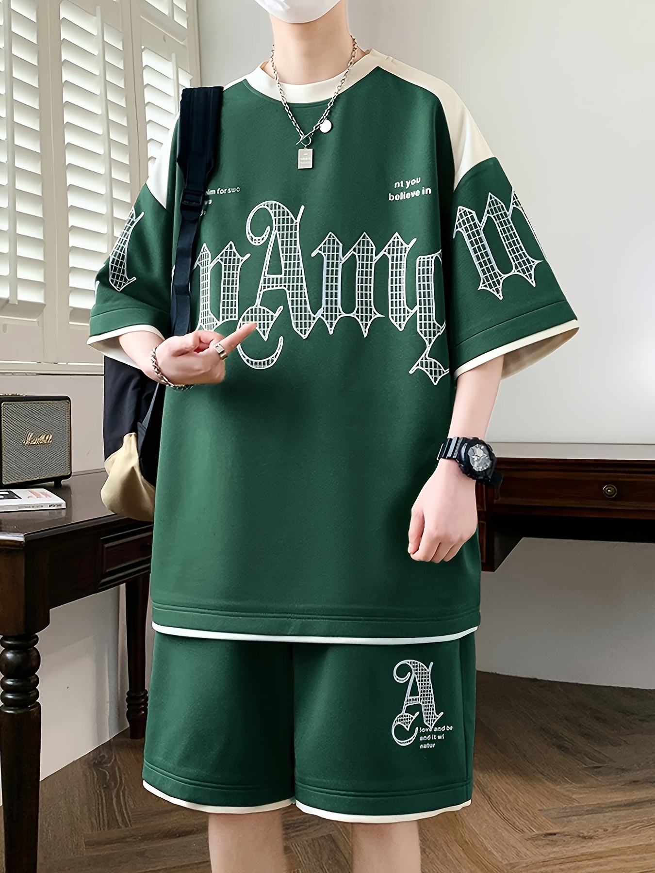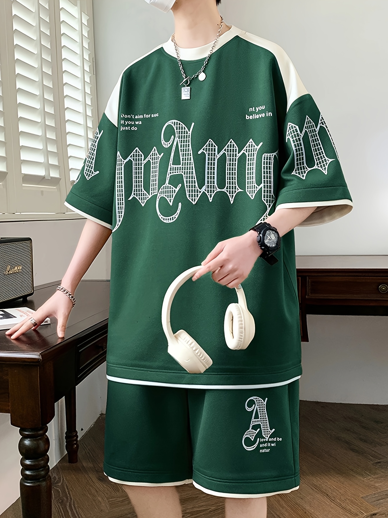 Men'S Casual 2pcs Summer Short Sleeve Short Pants Set, Men'S Sports Clothing, Casual Clothing, Youth Clothing, Men'S Casual Sports Clothing, Fashionable Holiday Clothing, Exercise Clothing, Summer Casual Clothing, Trendy Clothing Set
