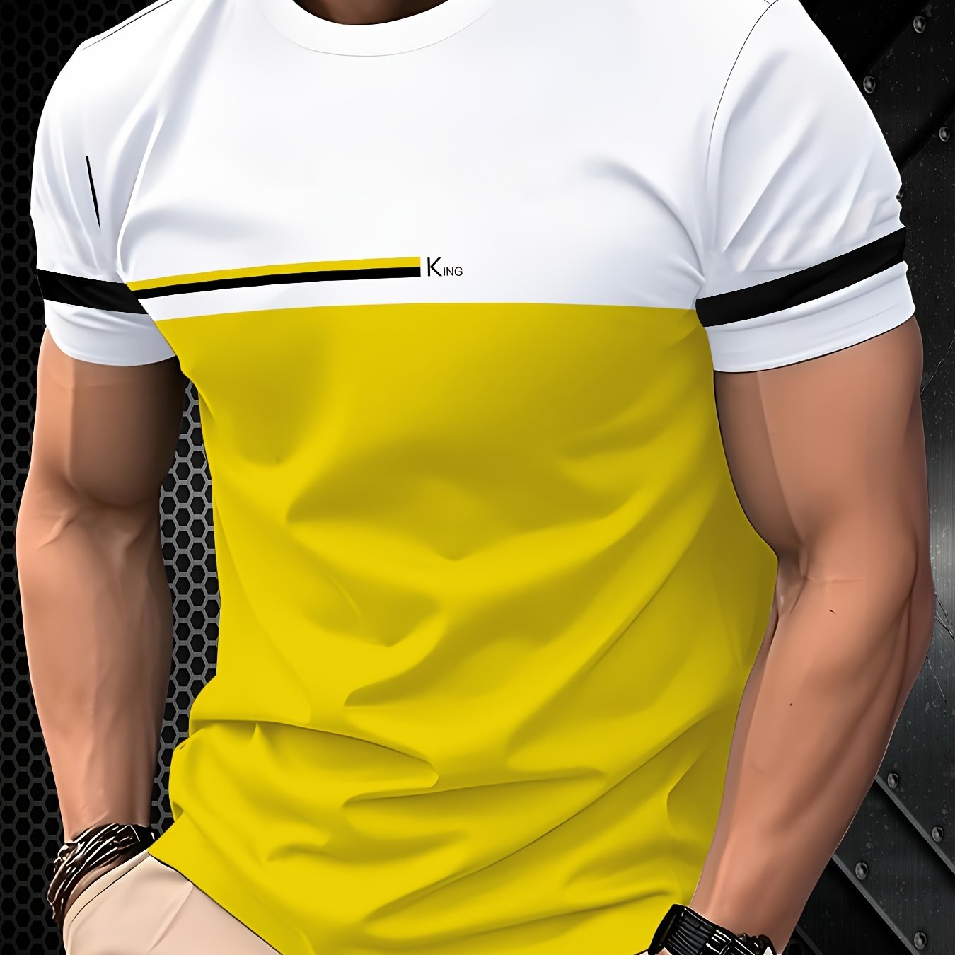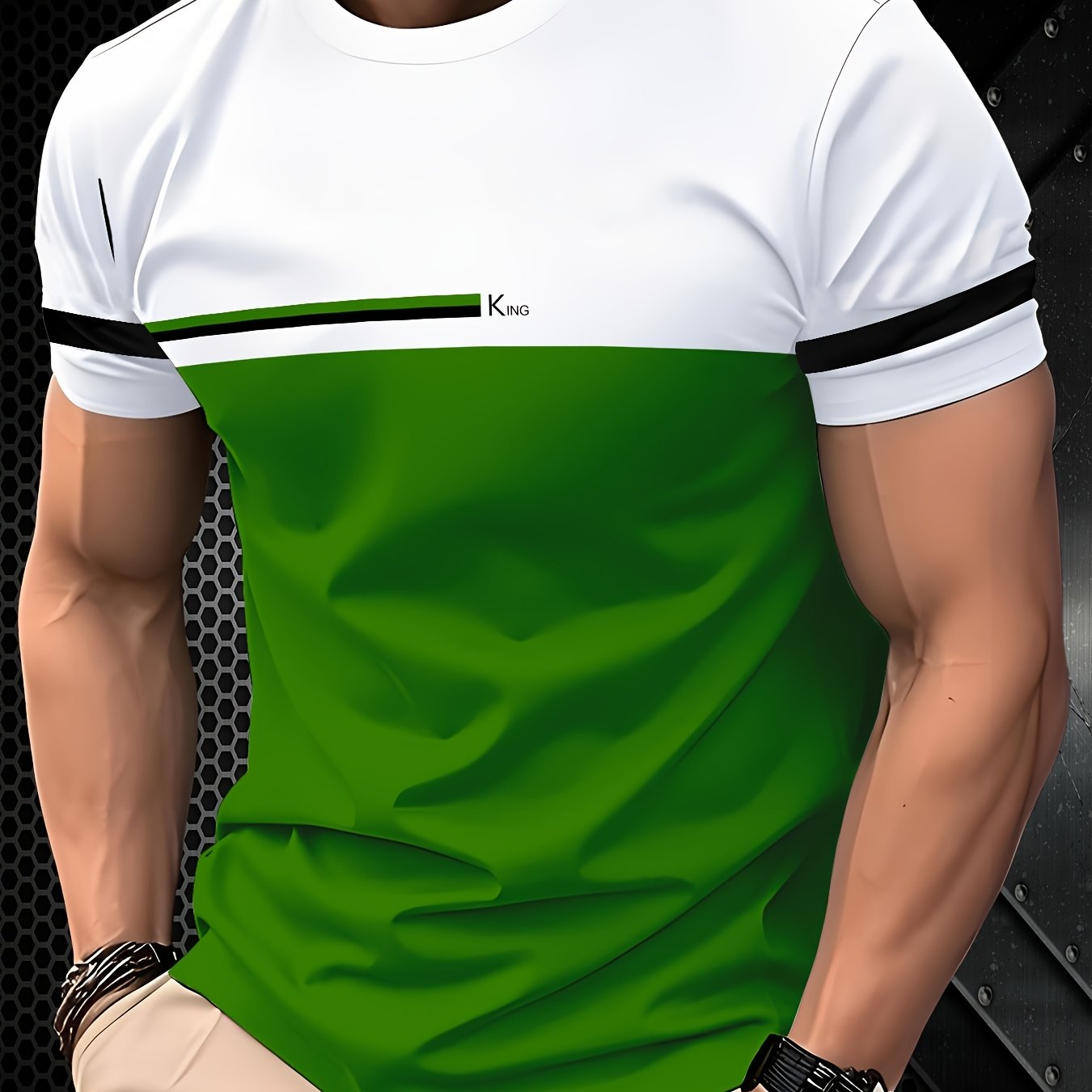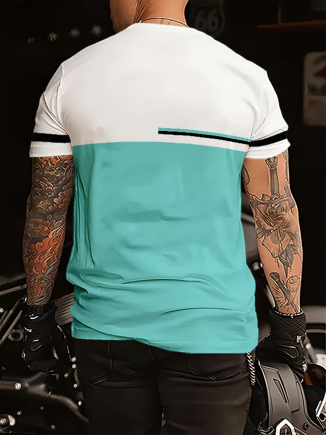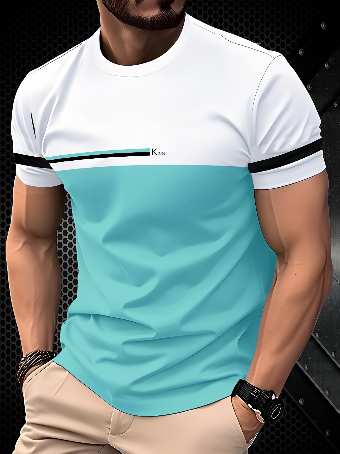 Minimalistisch allover print casual dagelijks kleurblok ronde hals korte mouwen digitaal bedrukt T-shirt voor heren, zomer