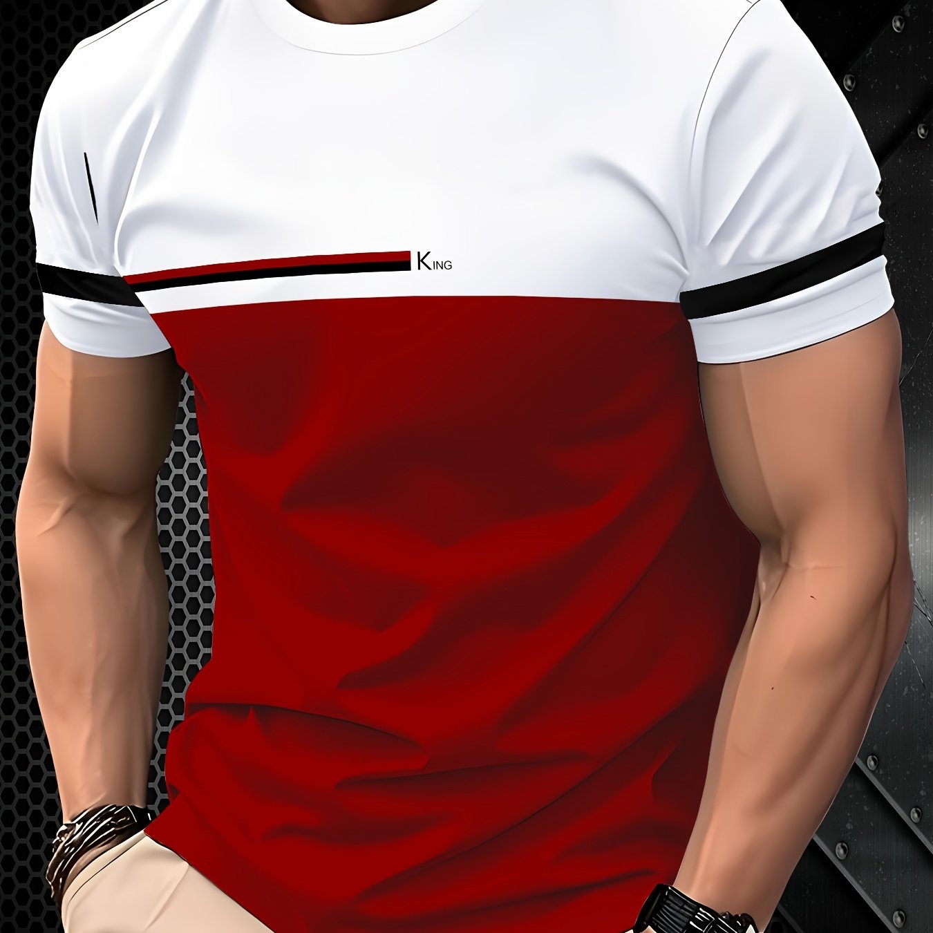 Men'S Casual Crew Neck T-Shirt, 100% Polyester Knit Fabric, Regular Fit, Short Sleeve Tee with Bold Digital Print, Solid Color, Summer Fashion Top, Casual Summer Wear | Fashionable Casualwear | Durable Casual Tee, Shirts for Summer