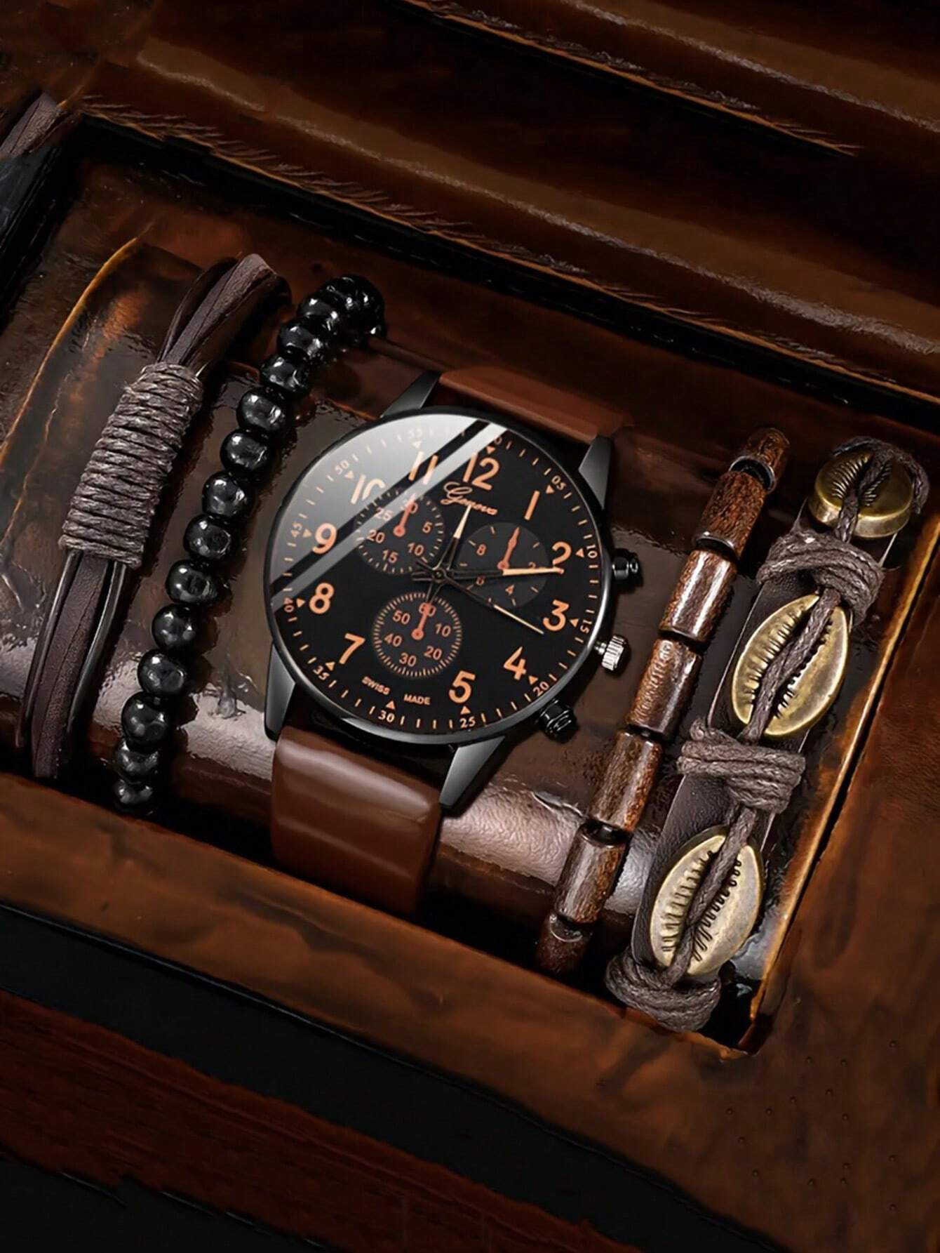 Be the first to review “Men'S Casual Fashion Quartz Watch And Beaded Bracelet Set And PU Leather Bracelet, Durable, Fashion-Forward Design, Perfect Gift For Him” Cancel reply