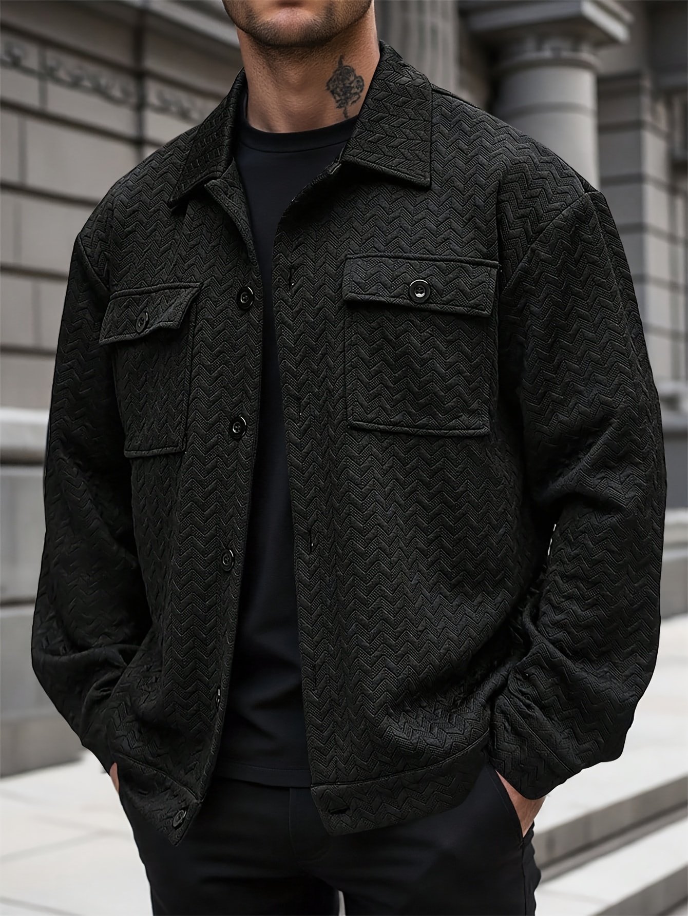 Men'S Casual Jacket, Front Button Long Sleeve Pocket Simple Coat, Daily Wear for Spring Autumn Winter, Boyfriend Gift, Warm Long Sleeve Casual Jacket, Outerwear, Textured Jacket