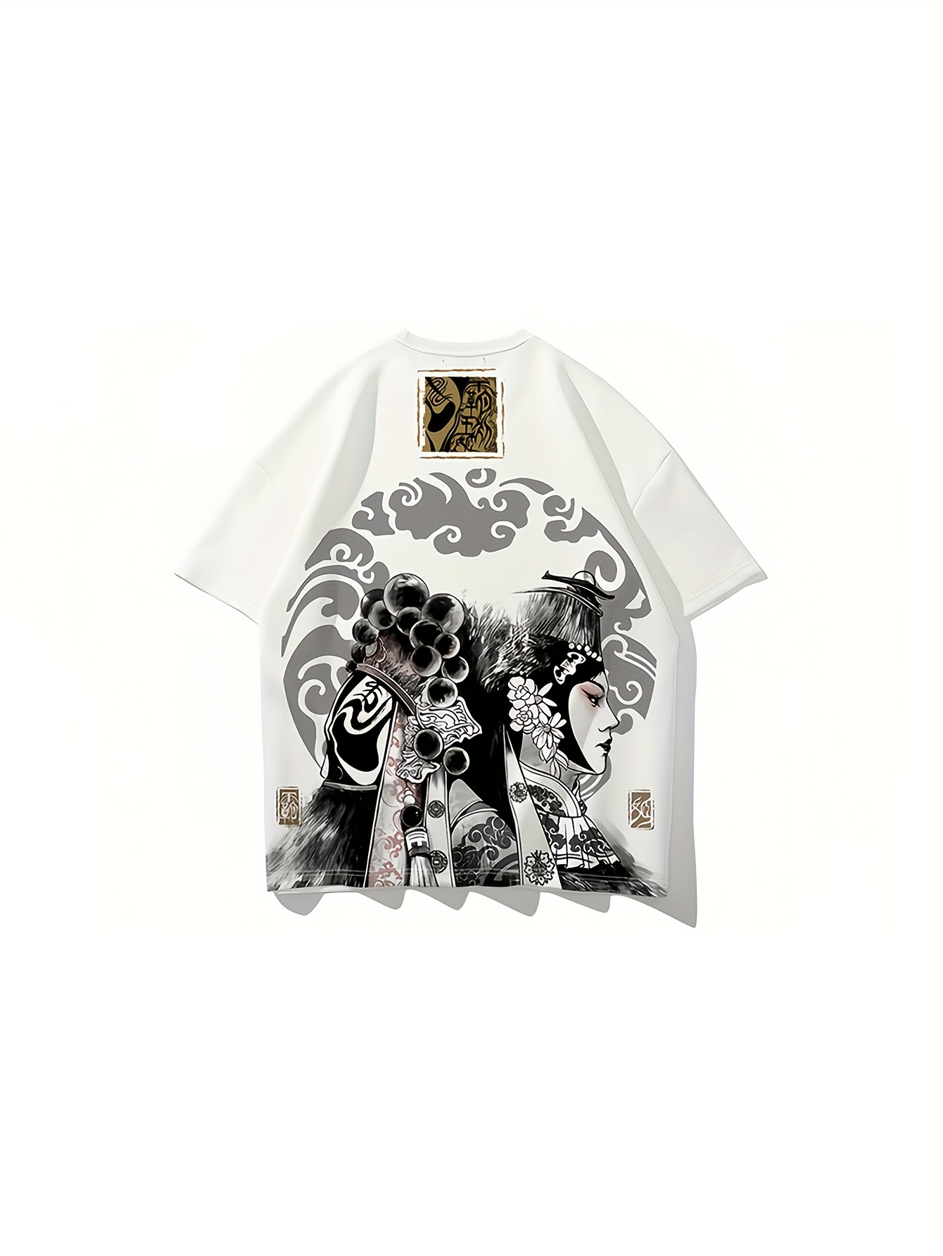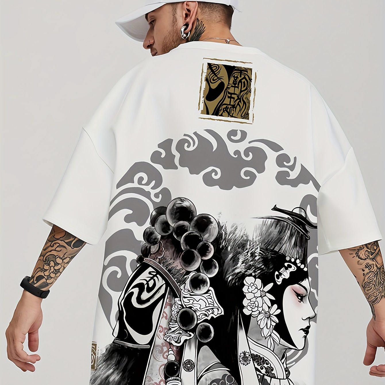 Men'S Casual "e;Farewell to the Sword"e; Chinese Ink Painting Graphic T-Shirt – Loose Fit, Short Sleeve, All-Season Wear, White with Intricate Artwork, Allseason Tee | Artistic Tshirt | Comfortable Fit