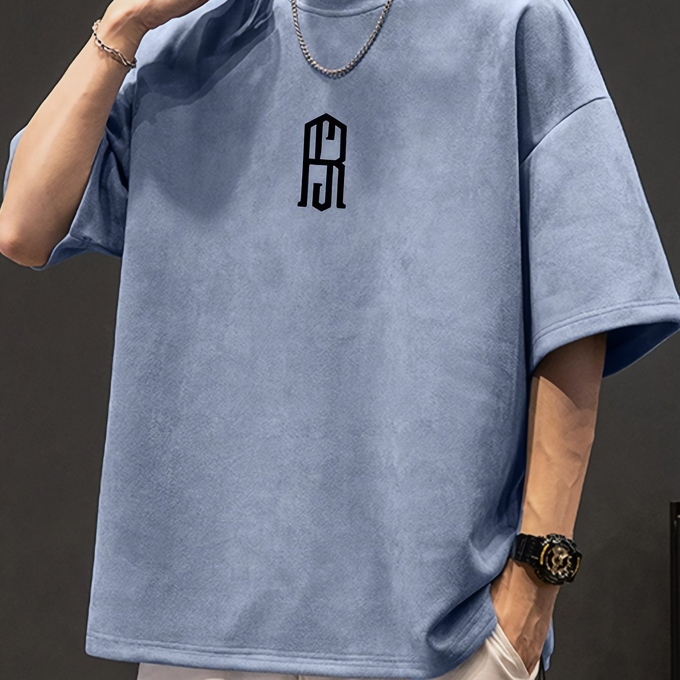 Men'S Casual Round-Neck Short-Sleeve T-Shirt with Letter Print for Spring And Summer Outfits