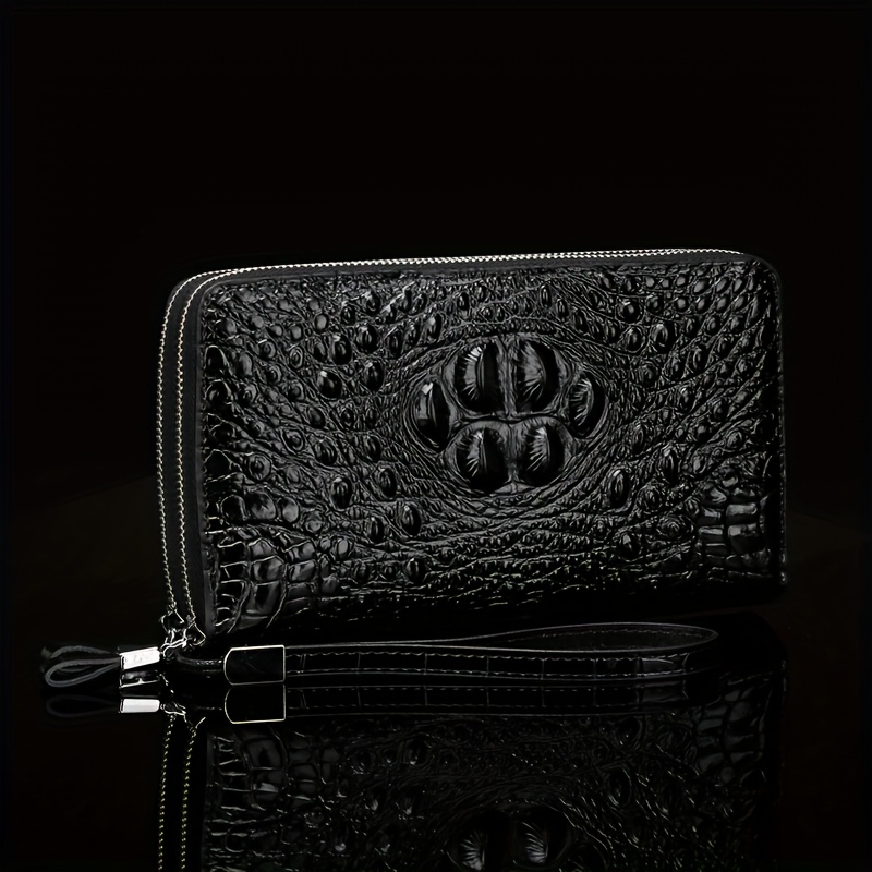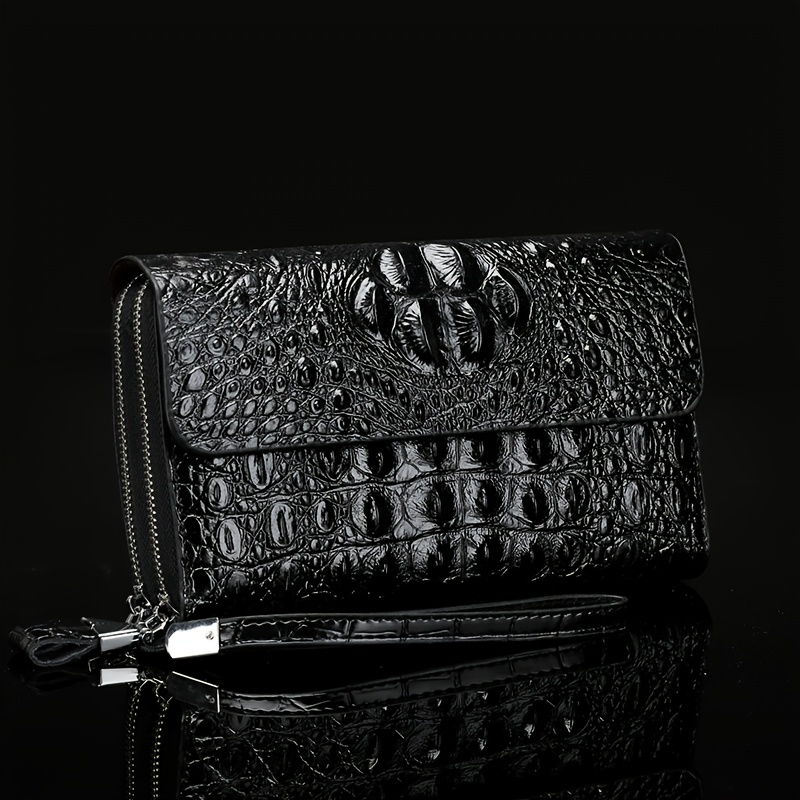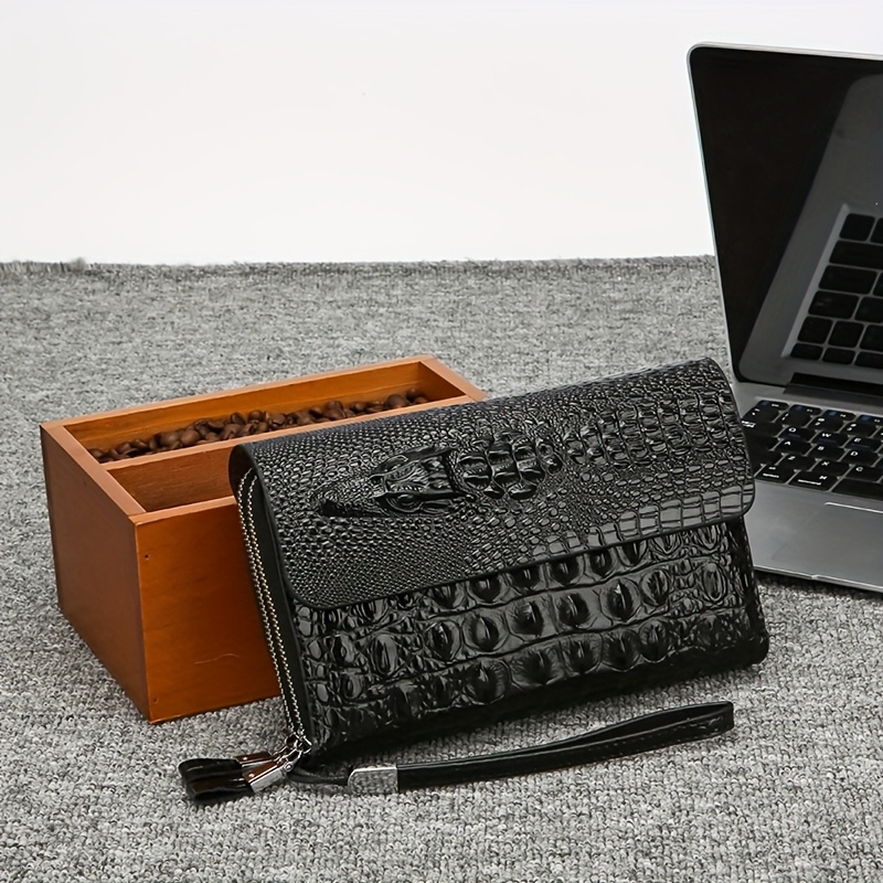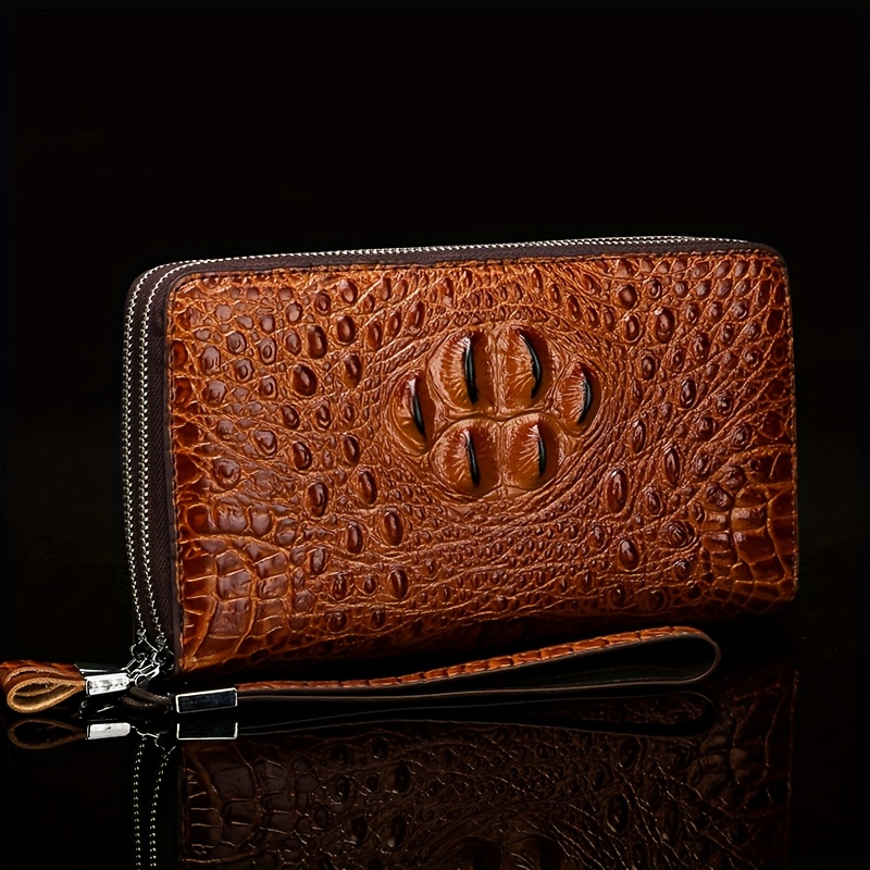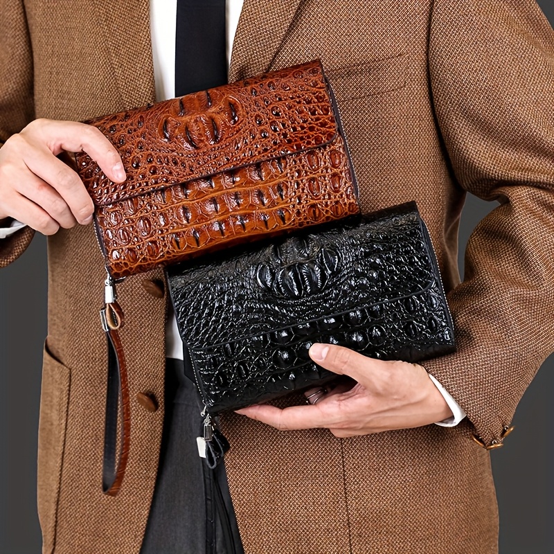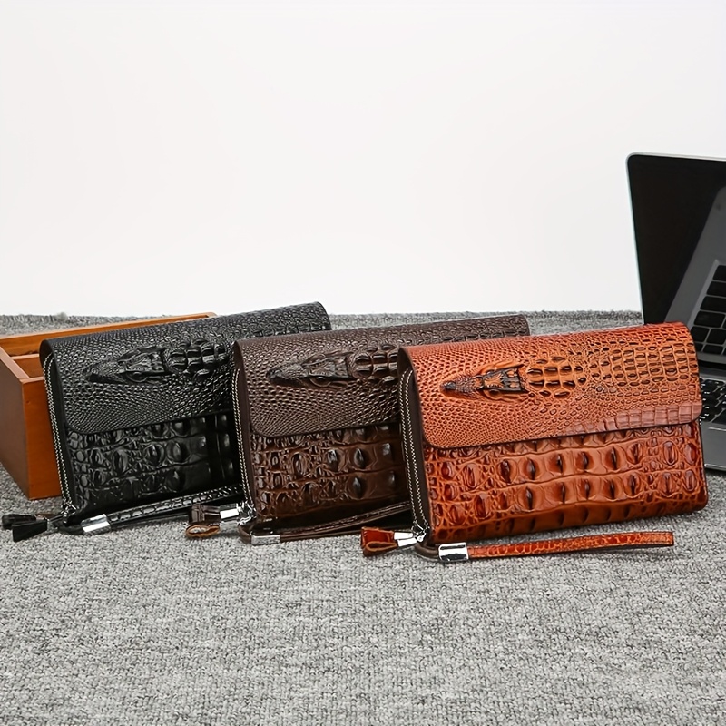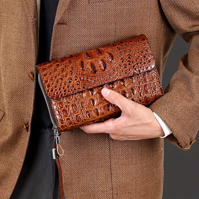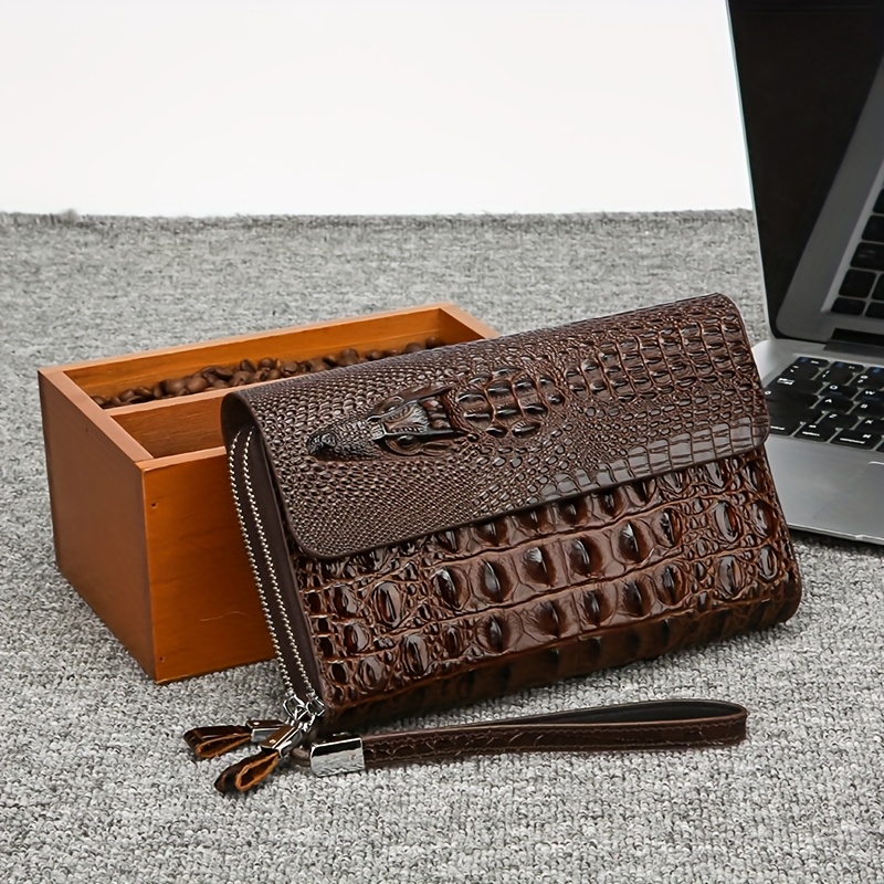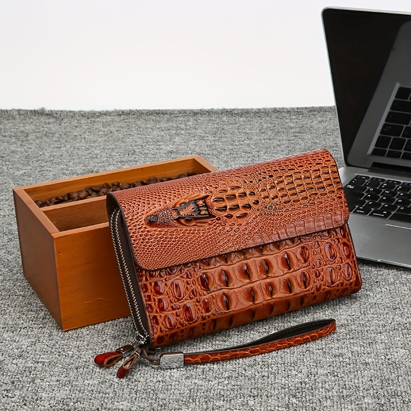 Men'S Crocodile Pattern Clutch – Stylish Brown Bifold with Wrist Strap, Perfect for Office or Casual Use, Office Accessory | Sleek Clutch | Bag
