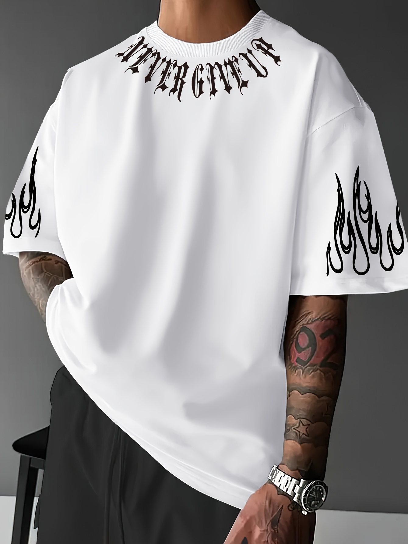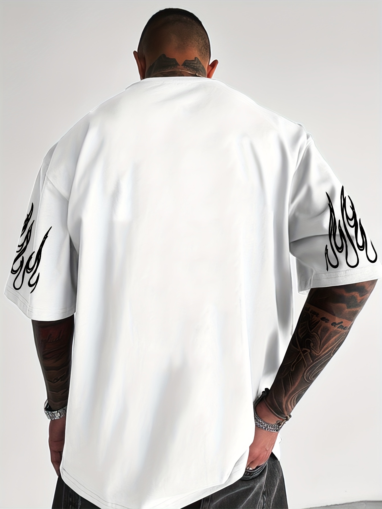 Be the first to review “Men's Gothic Flame & Letter Graphic Print Loose Fit T-Shirt – Breathable Polyester Knit, Round Neck Casual Summer Tee for Casual Attire, Retro T Shirt, Flame Motif Shirt, Machine Washable Top” Cancel reply