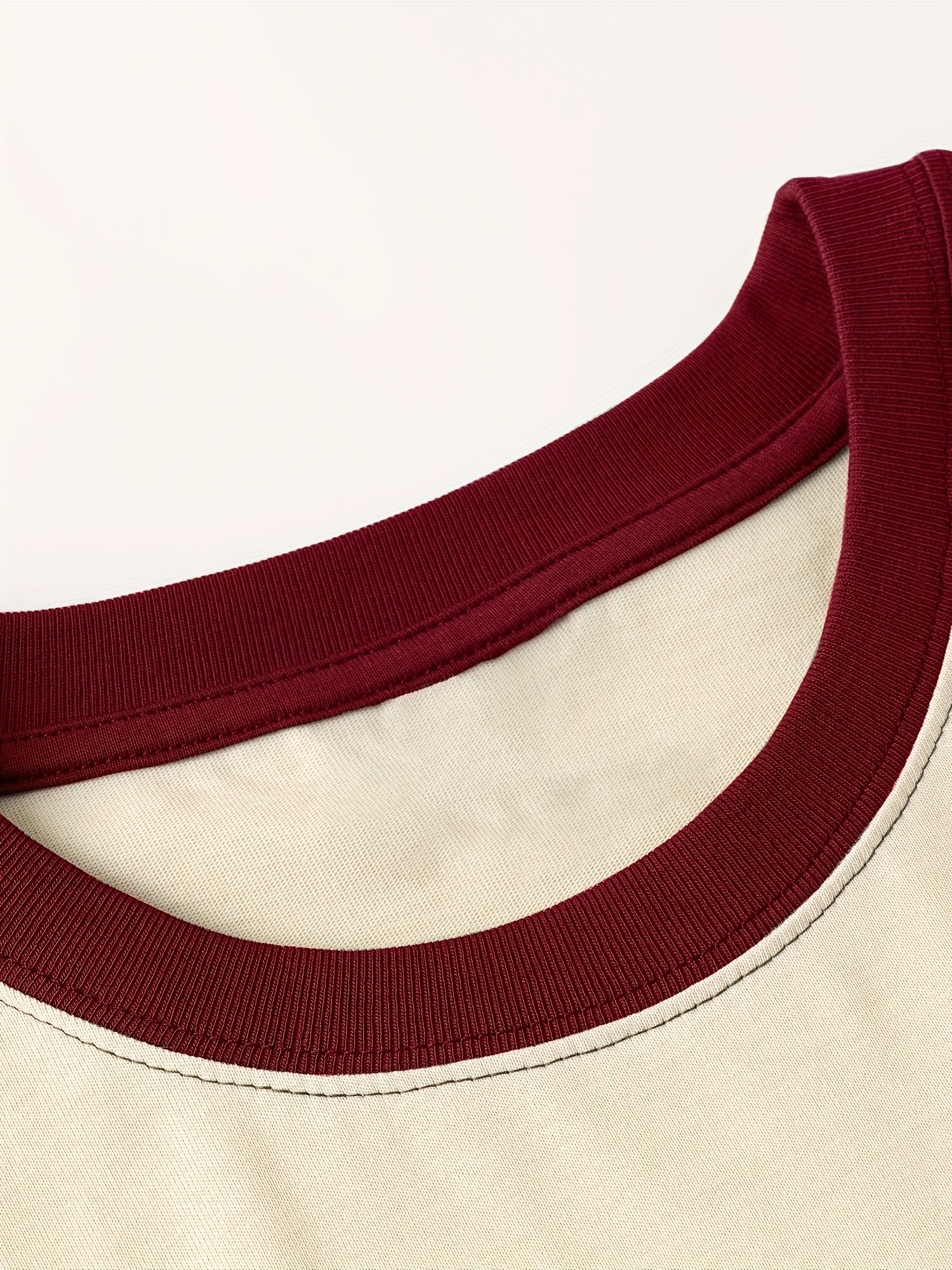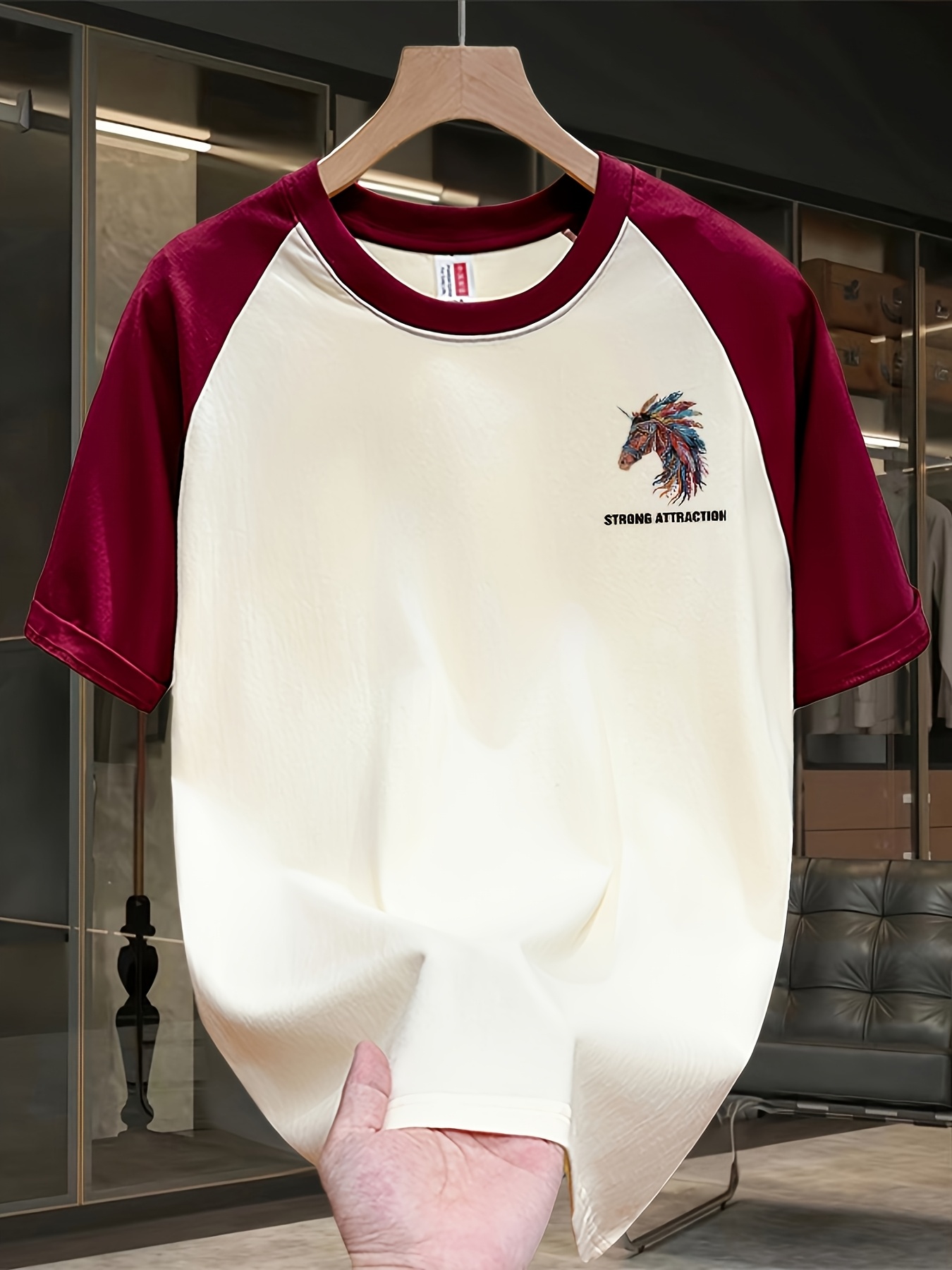 Men's Heavyweight Cotton T-Shirt – Loose Fit Raglan Sleeve Tee, Contrast Red & colorblock, Everyday Casual Streetwear Top for Teens & Adults, Urban Fashion, Statement Shirt, Breathable Fabric, Pullover Shirt, Teen Clothing