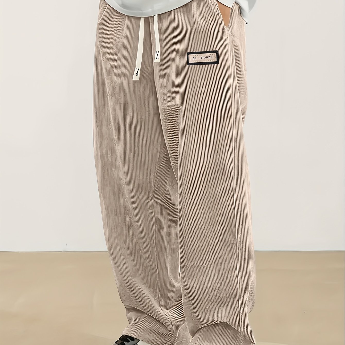 Men'S Casual Straight-Leg Pants with Elastic Waistband & Drawstring – Beige Jacquard Fabric, Relaxed Fit for Spring/Fall Outdoor Leisure, Perfect for Casual Attire, Leisure Leisurewear, Smooth Texture Fabric