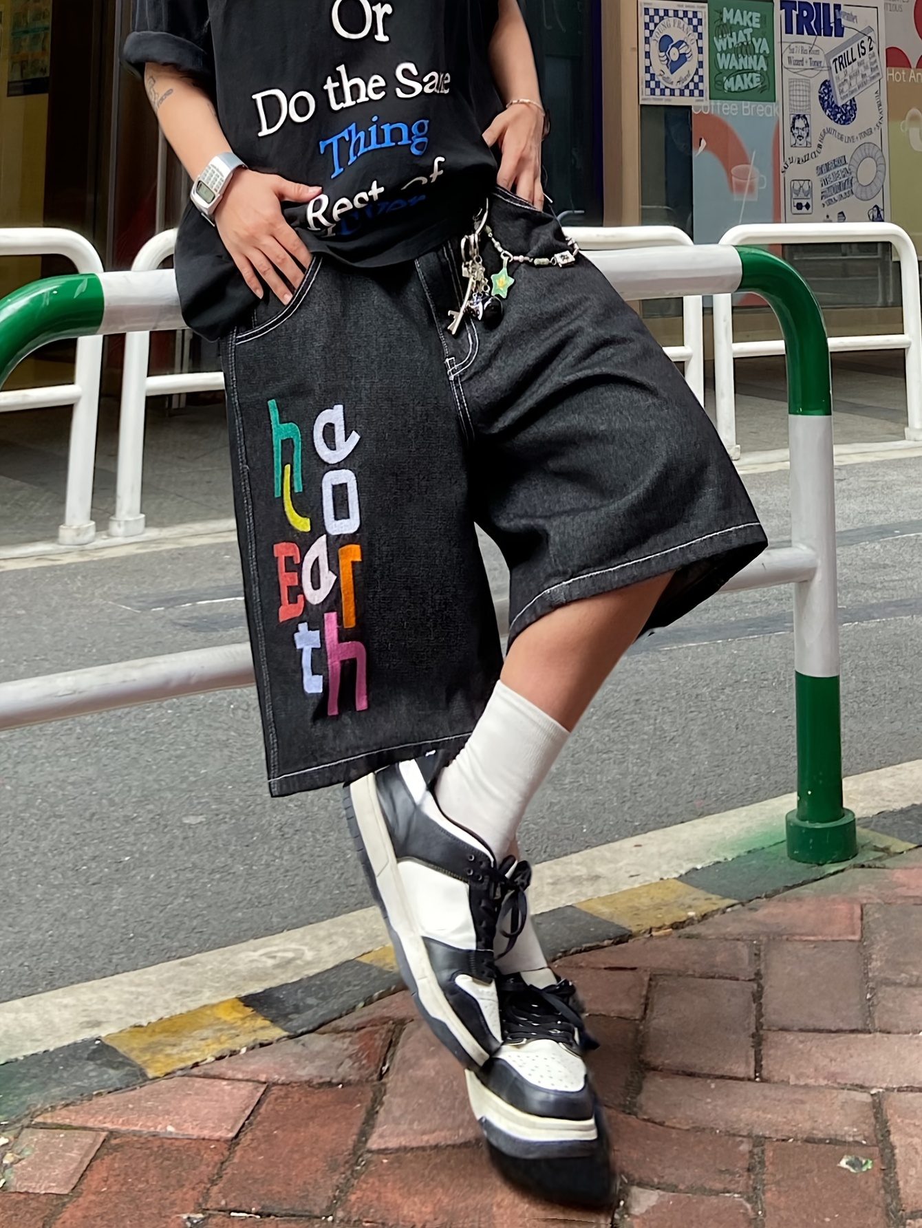 Be the first to review “Men's Loose Fit Knee-Length Denim Shorts – Casual Street Style with "e;HEALTH"e; Print, Machine Washable, No Stretch, Black Color, Perfect for Summer Outfits, Jean Shorts” Cancel reply