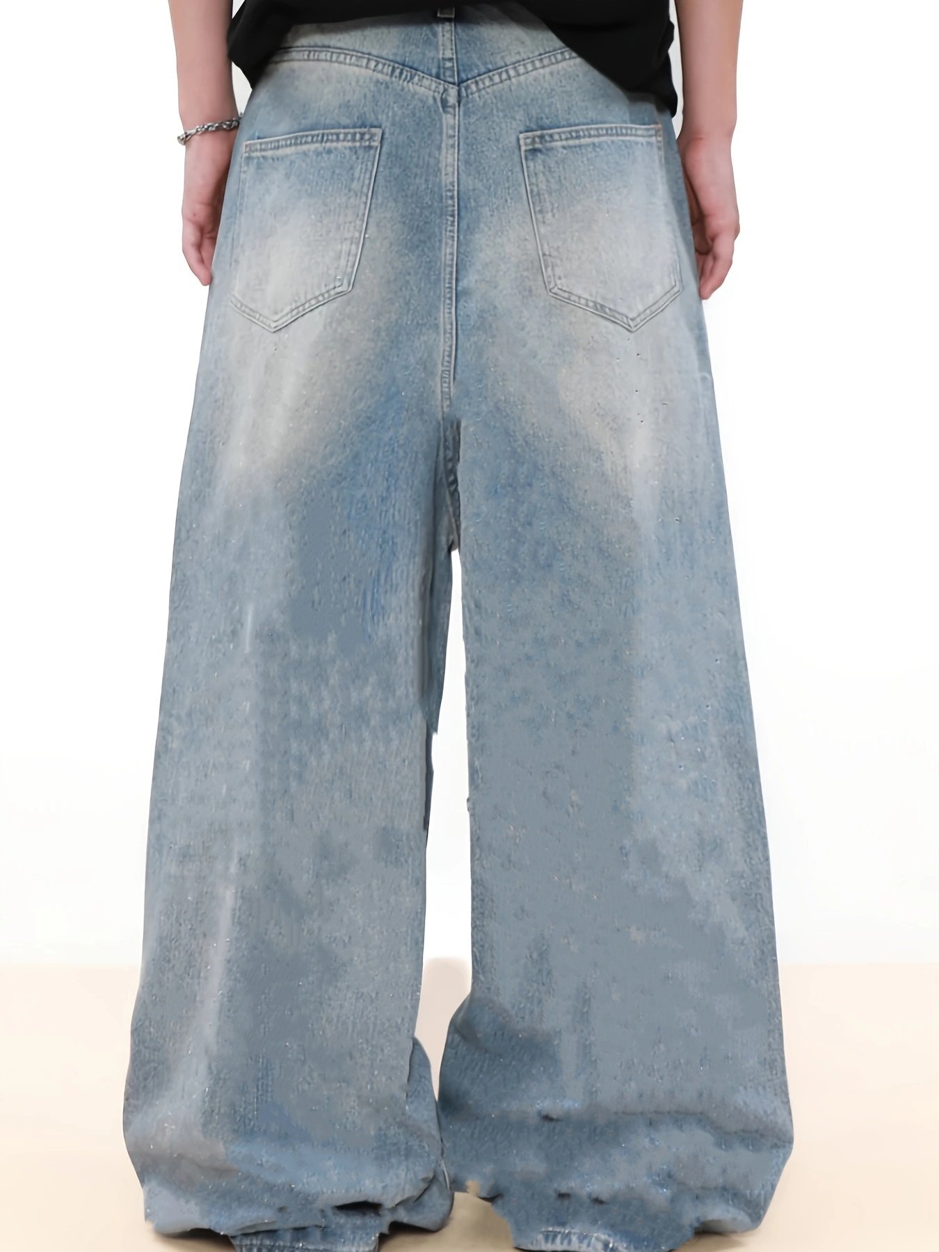 Men's & Women's Wide-Leg Distressed Denim Jeans – Oversized Streetwear Pants with Frayed Hem & Rivet Details, Heavy-Duty Loose Fit, Beltless All-Season Wear No Belt/Accessories – Casual Outfit Staple for Jeanswear Lovers