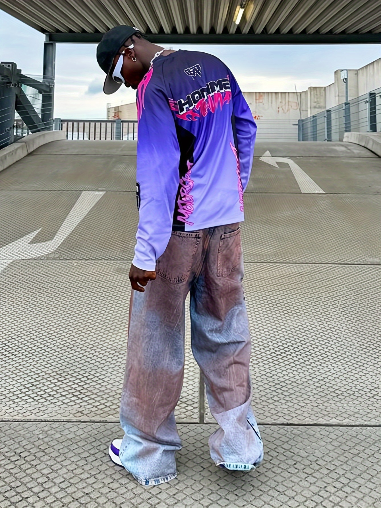 Men'S Gradient Black Mid-Thigh Jeans – Casual Loose Fit Straight-Leg Pants with Pockets, Lightweight Denim for Casual Attire, Streetwear Fashion & Everyday Comfort, Comfortable Fashion, Fashionforward Look, Nonstretch Fabric