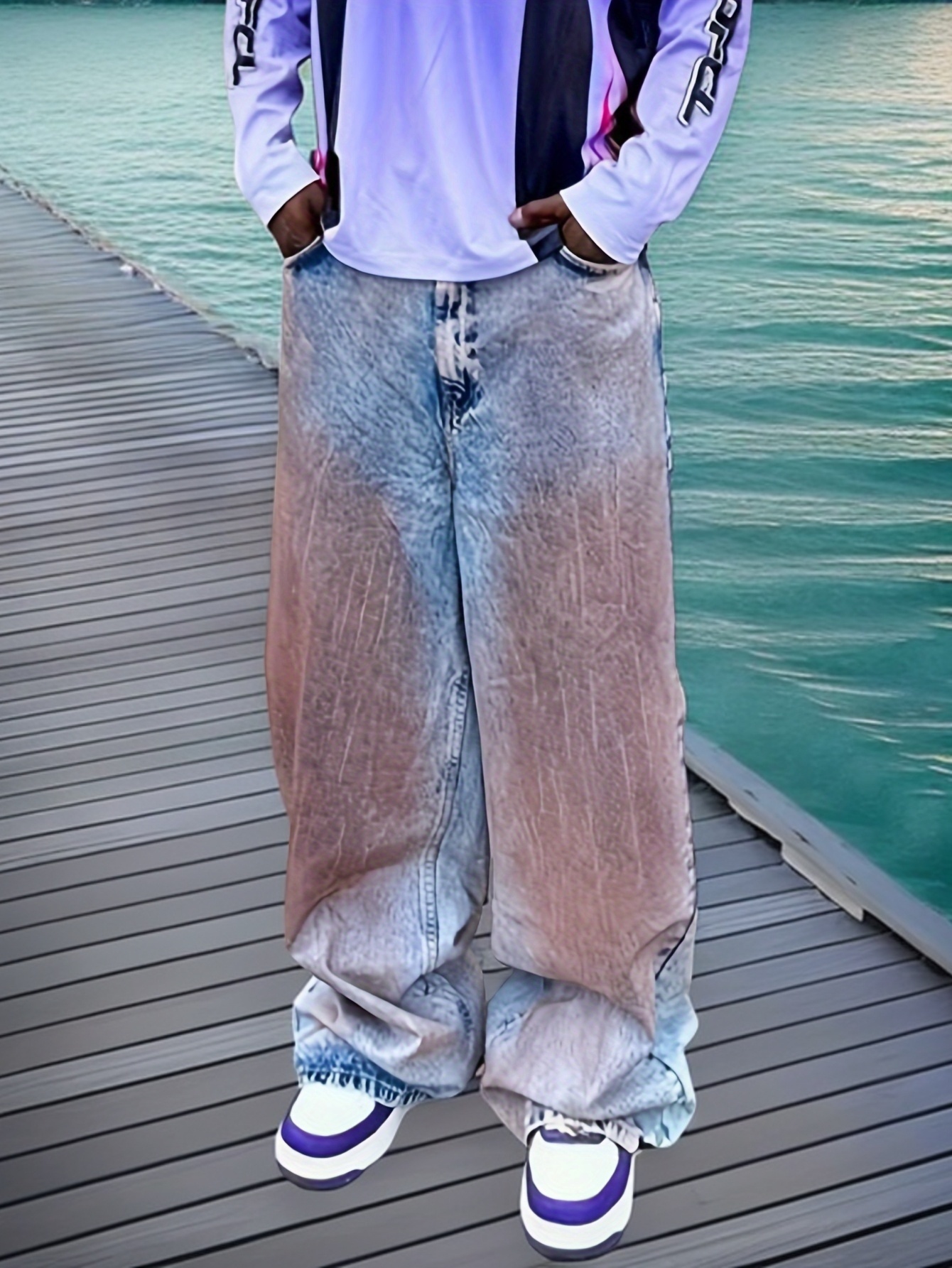Men's Vintage Distressed Jeans – Non-Stretchy Denim Pants with ripped Knee Loose Fit Streetwear for Casual Outfits – Machine Washable Everyday Jeans, Jeans Pants for Men, Jeans for Men High Quality, Baggy Jeans, Mens Denim Jeans, Denim Jeans Men