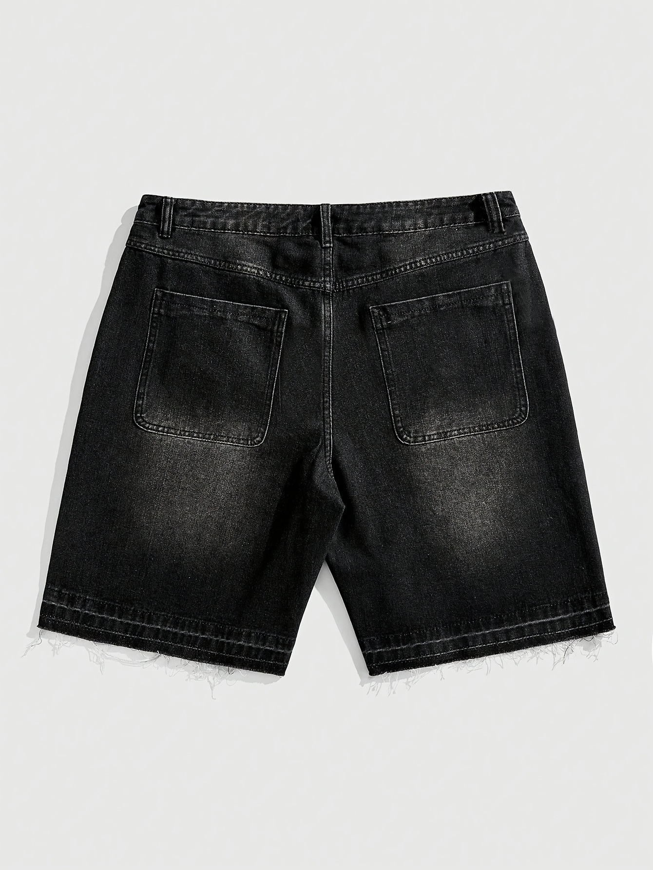 Men'S Loose-Fit Mid-Rise Denim Shorts – American Street Style Washed Distressed, Non-Stretch Fabric, Zipper Fly, All-Season Casual Wear, Streetwear Shorts | Relaxed Fit Shorts | Durable Fabric Shorts