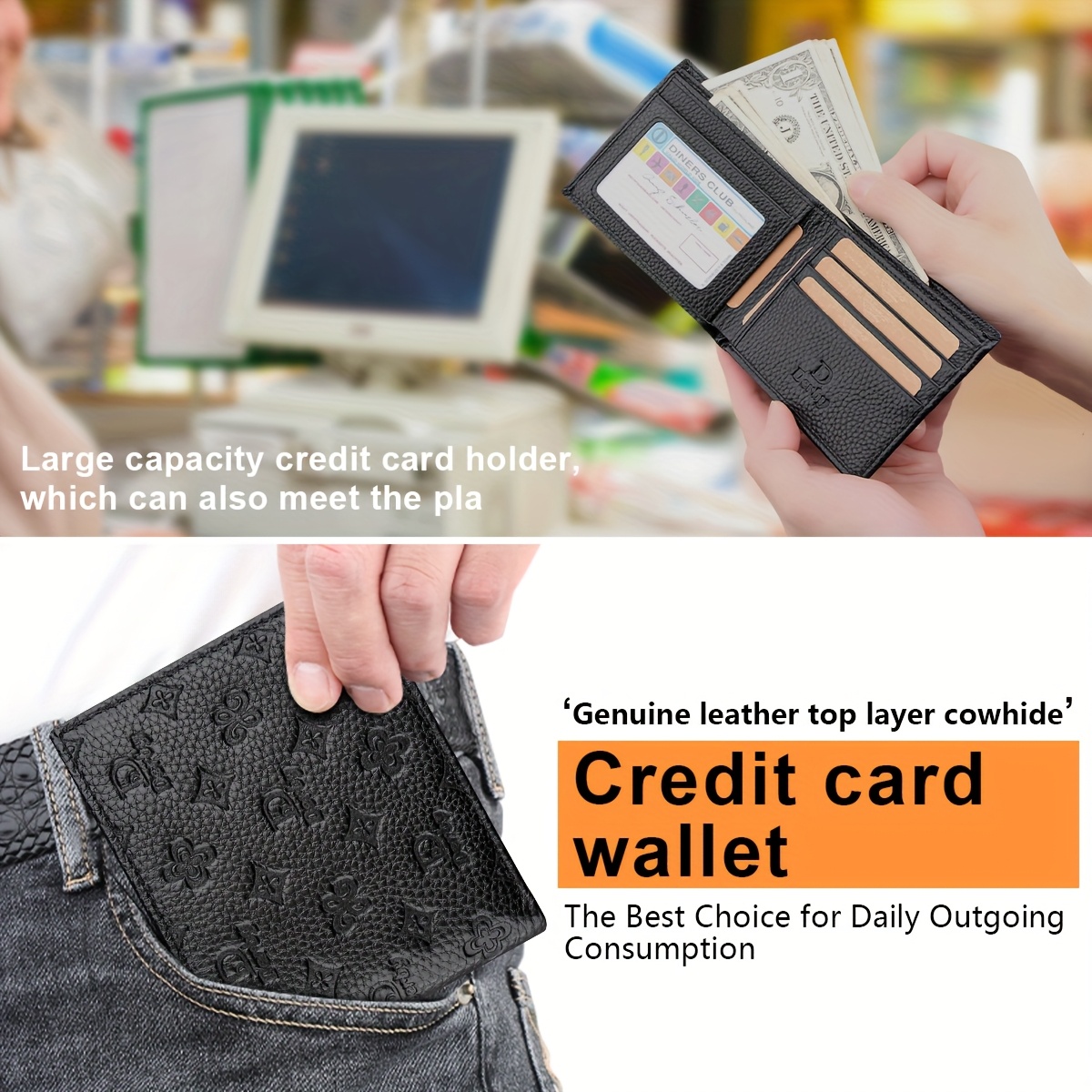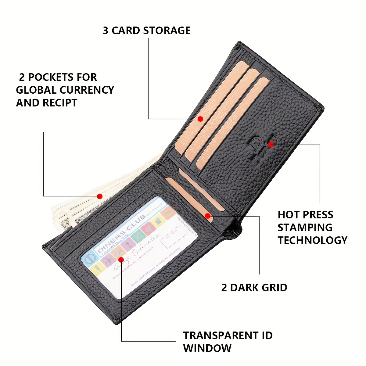 Men'S Slim Business Card Wallet with ID Window – Black Genuine Leather, Multi-Card Slots & Cash Compartment, Stylish Design for Everyday Use, Perfect Gift for Holidays & Valentine'S Day, Everyday Wallet | Stylish Slim Wallet | Durable Wallet