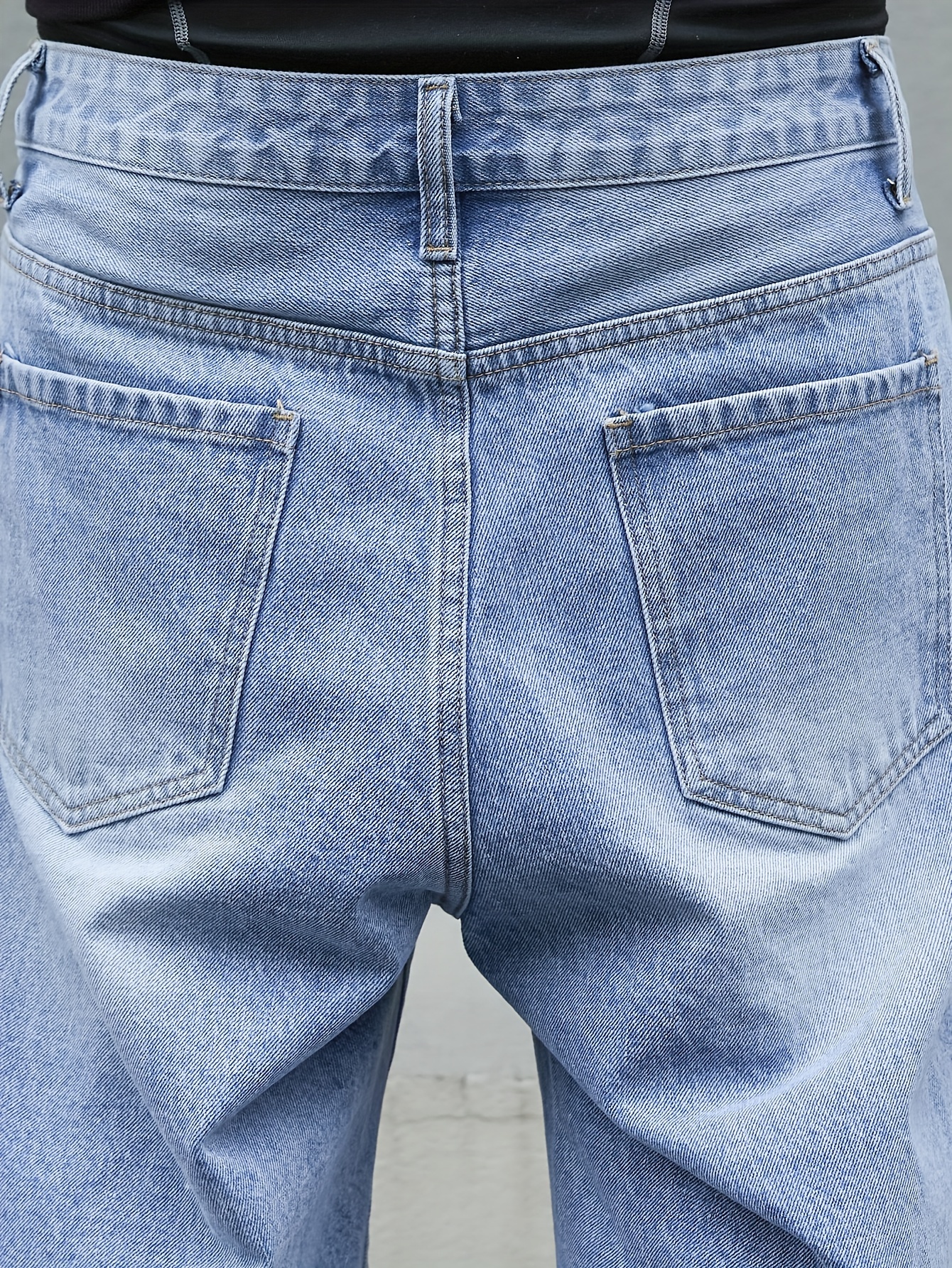 Men'S Gradient Black Mid-Thigh Jeans – Casual Loose Fit Straight-Leg Pants with Pockets, Lightweight Denim for Casual Attire, Streetwear Fashion & Everyday Comfort, Comfortable Fashion, Fashionforward Look, Nonstretch Fabric