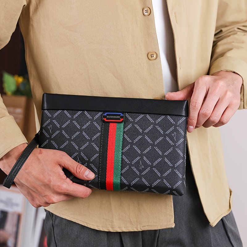 Men'S Stylish Black Clutch with Colorful Strap – Minimalist Design, Versatile Envelope Bag for Daily Commute, Everyday Clutch | Modern Clutch | Textured Finish