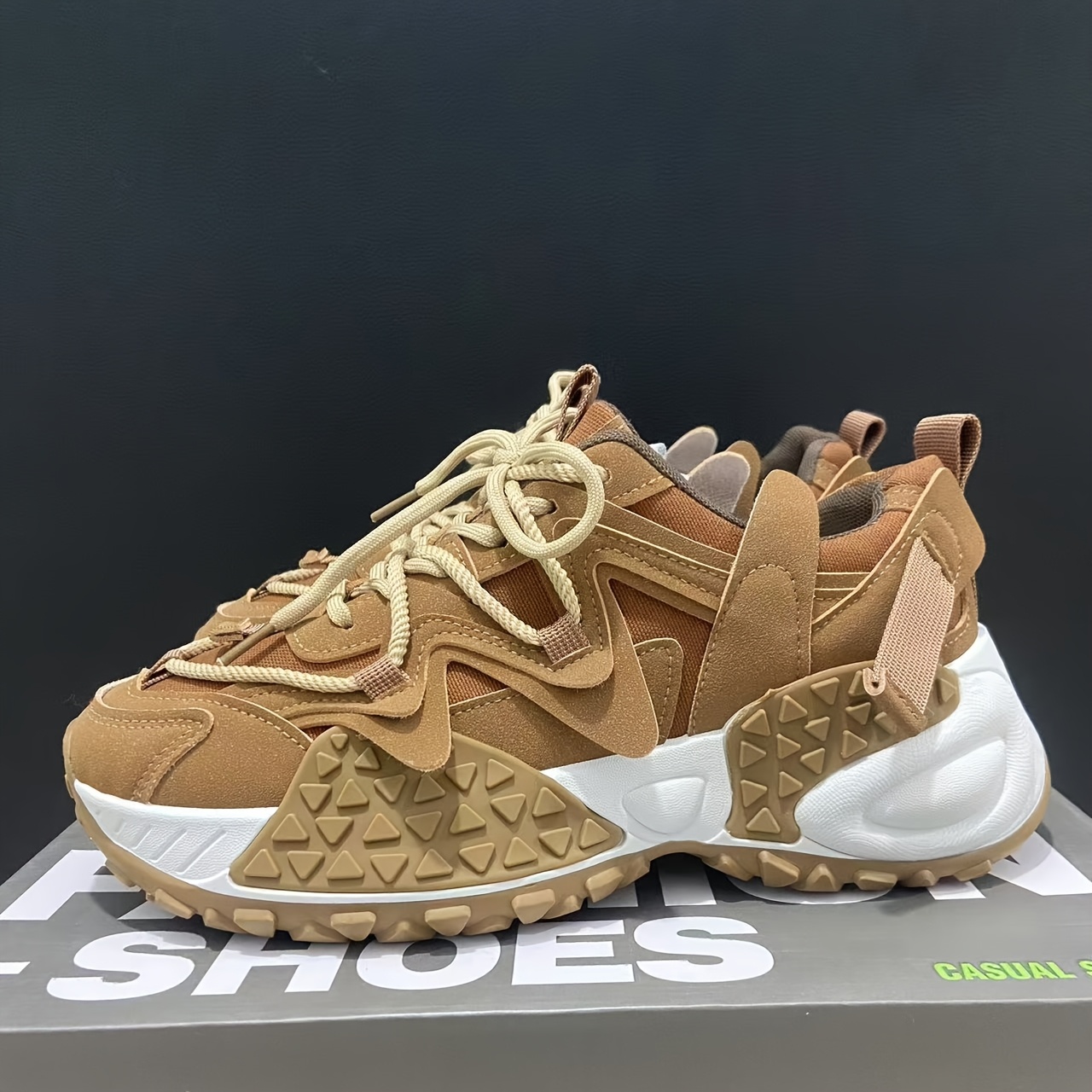 Men's Stylish Chunky Sneakers – Durable, Comfortable, and Versatile Dad Shoes with Thick Sole, Brown & White Design, Perfect for Casual Wear and Outdoor Activities, Sleek Shoe Design | Textured Shoe Pattern