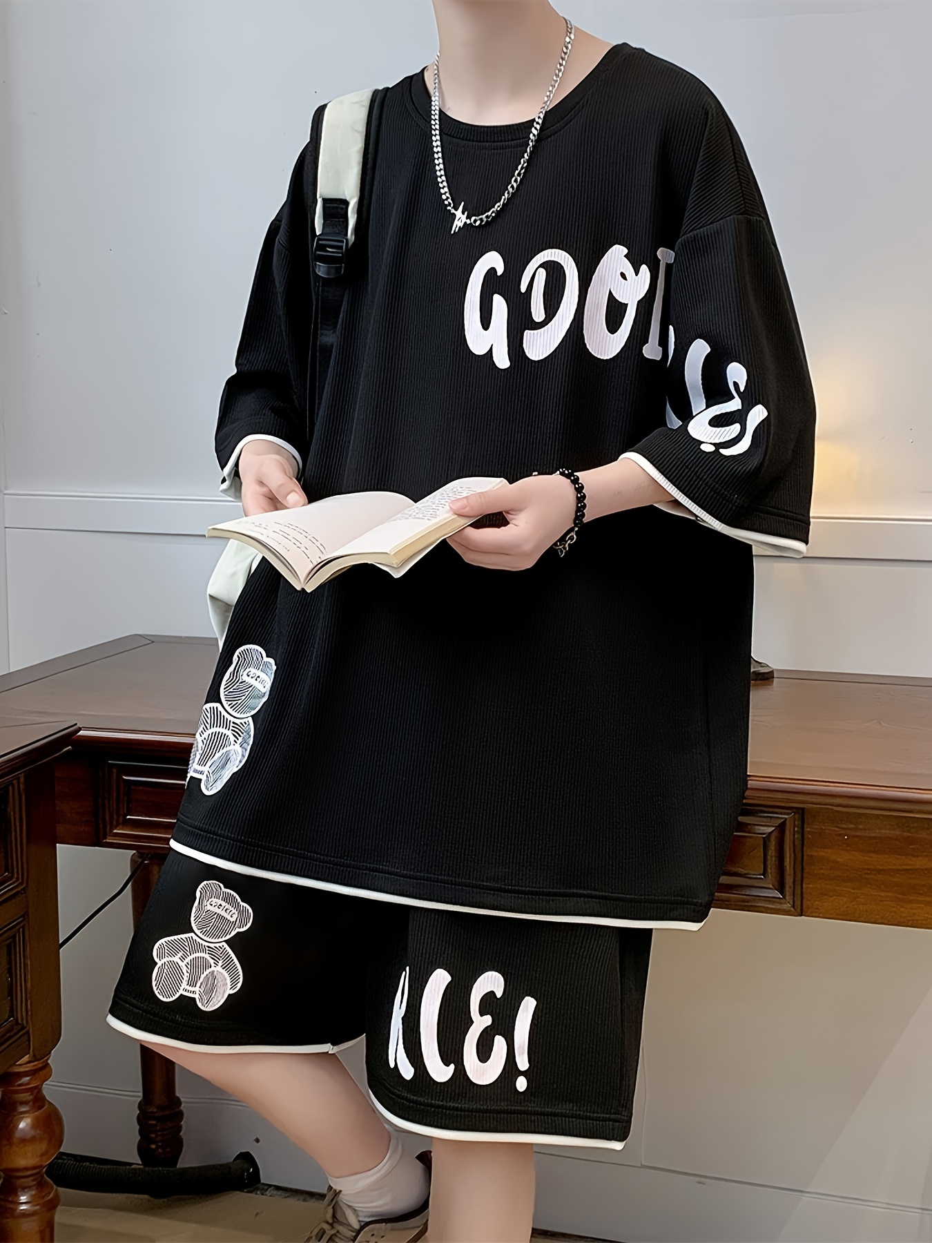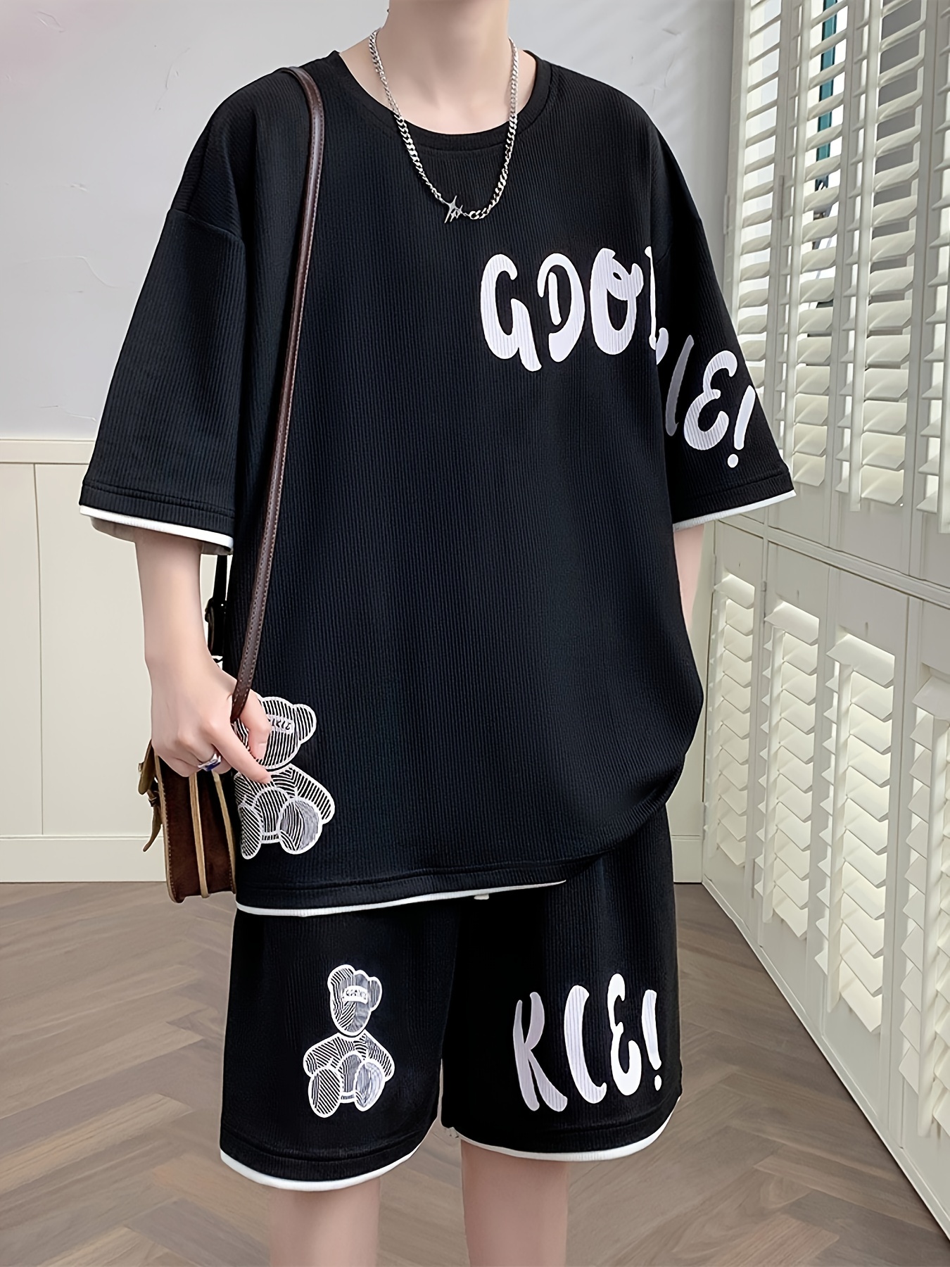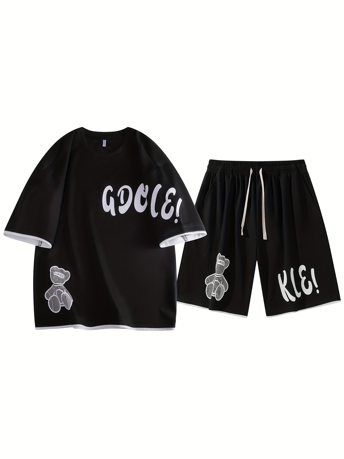 Men'S Summer Casual Sports Outfit, Trendy And Versatile, Featuring Short Sleeves And Shorts, Perfect for Stylish Combinations for Teenagers And Students.