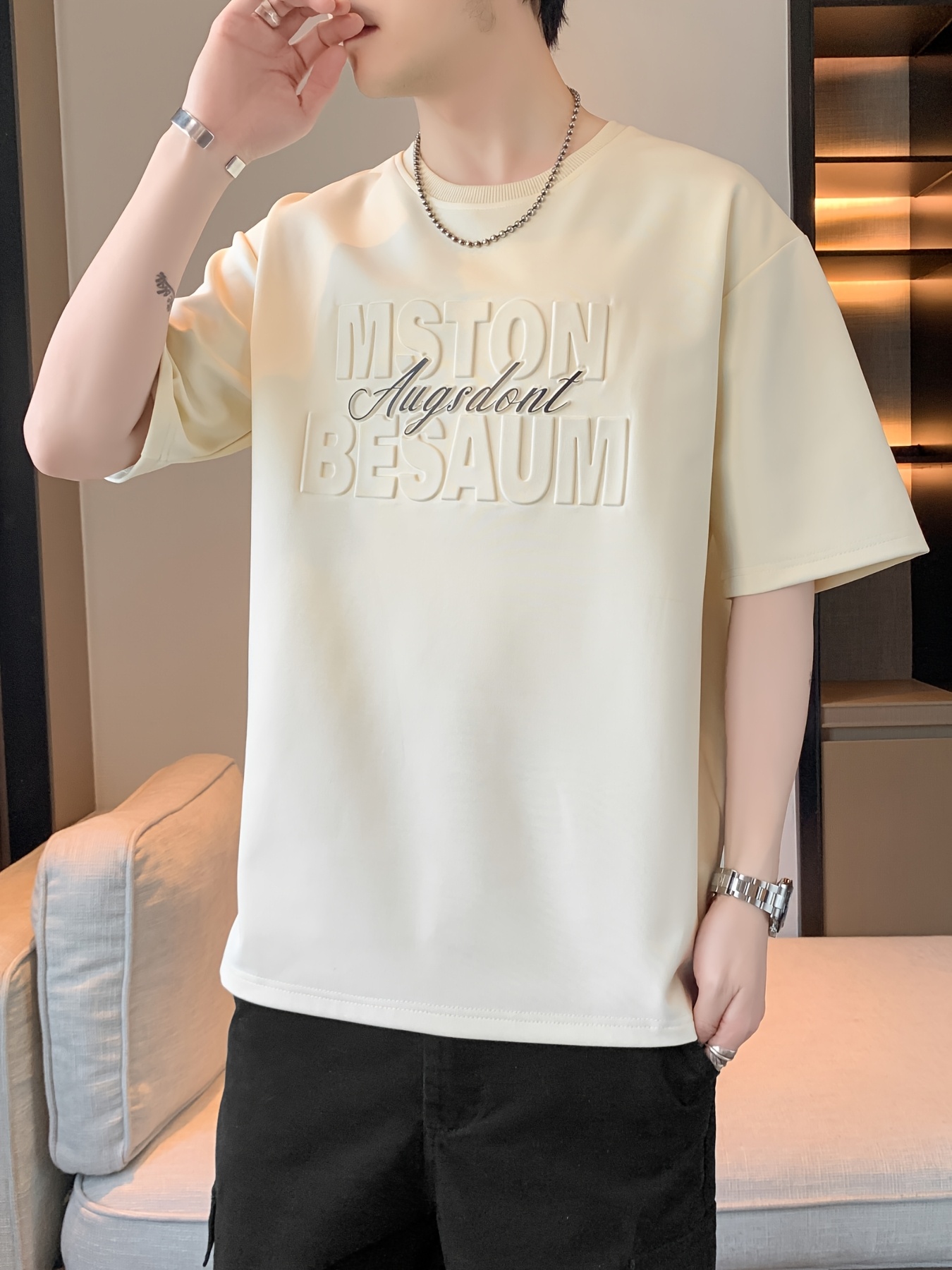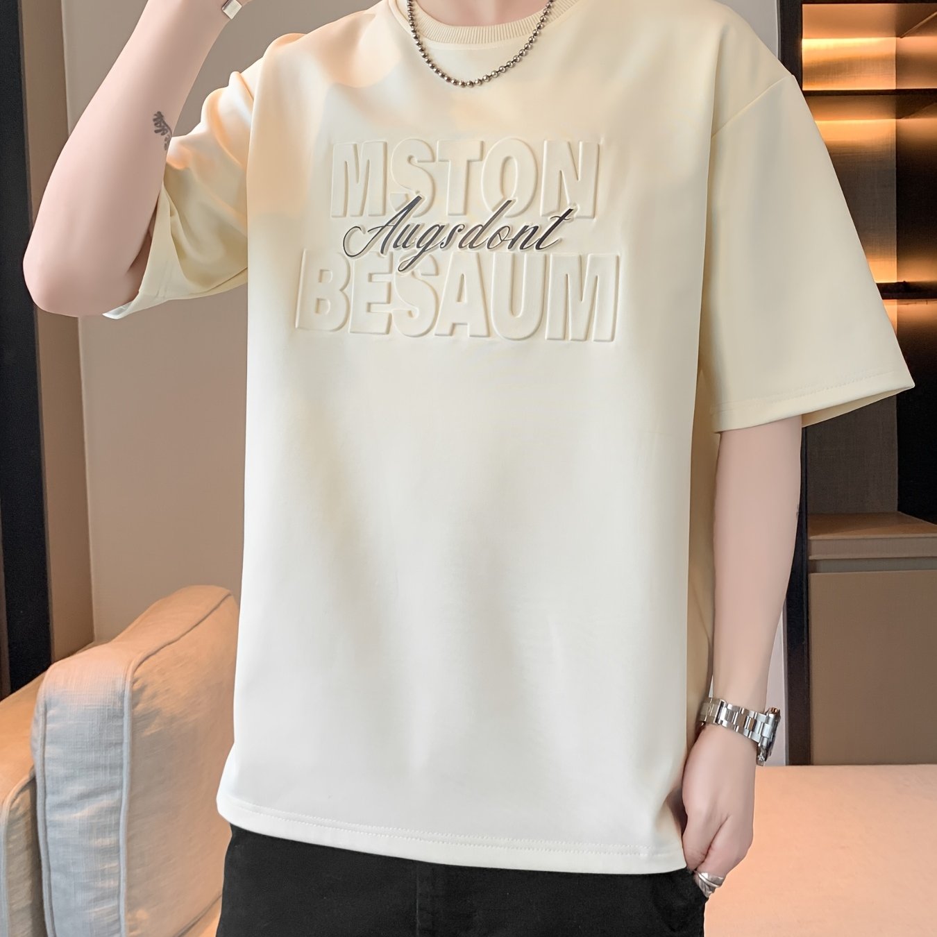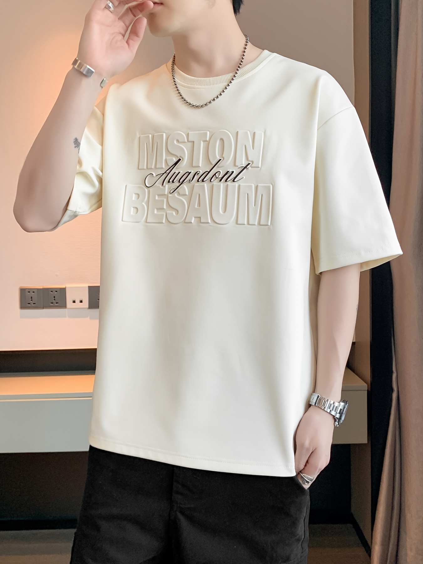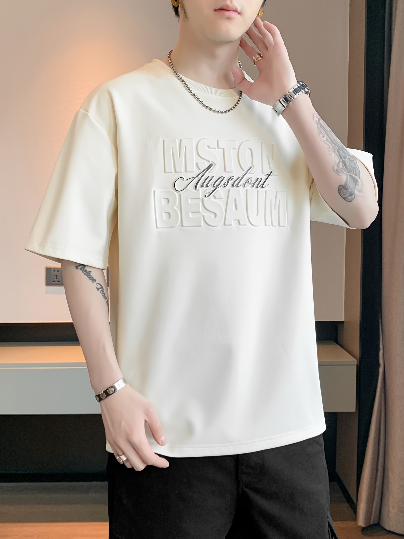 Be the first to review “Men's Summer T-Shirt with 3D Raised Letter Graphic – Steel Print Solid Color Round Neck Loose Fit Short Sleeve, Breathable Casual Top for Daily Wear & Outdoor Activities” Cancel reply