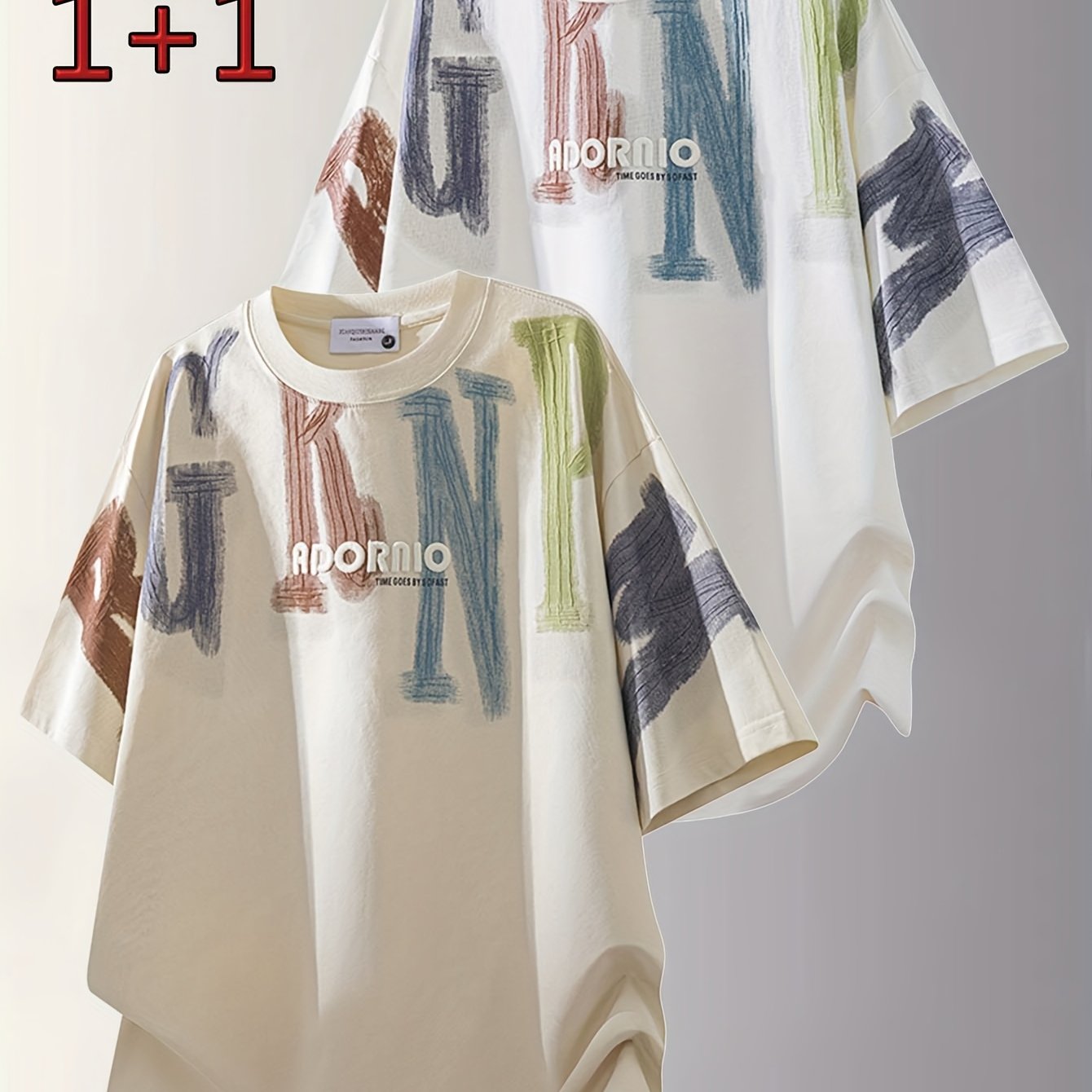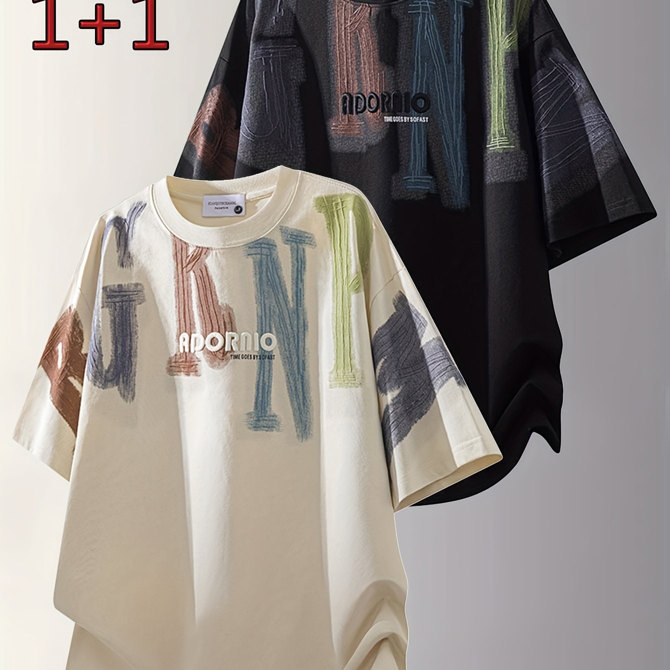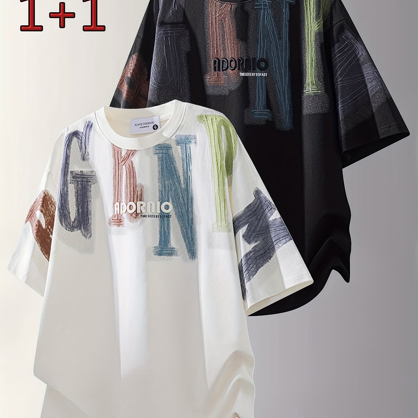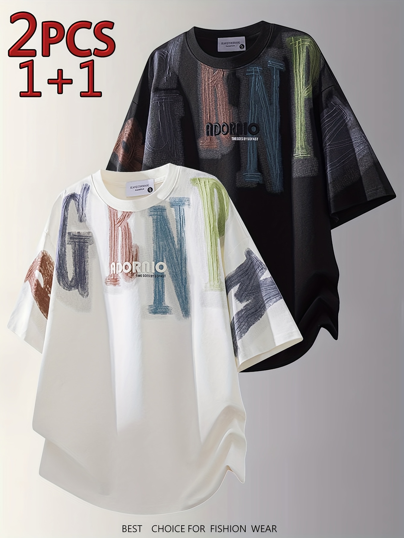 Men's Summer Trendy Letter Embroidery Casual Simple Versatile Short Sleeve T-Shirt Two-Piece Set