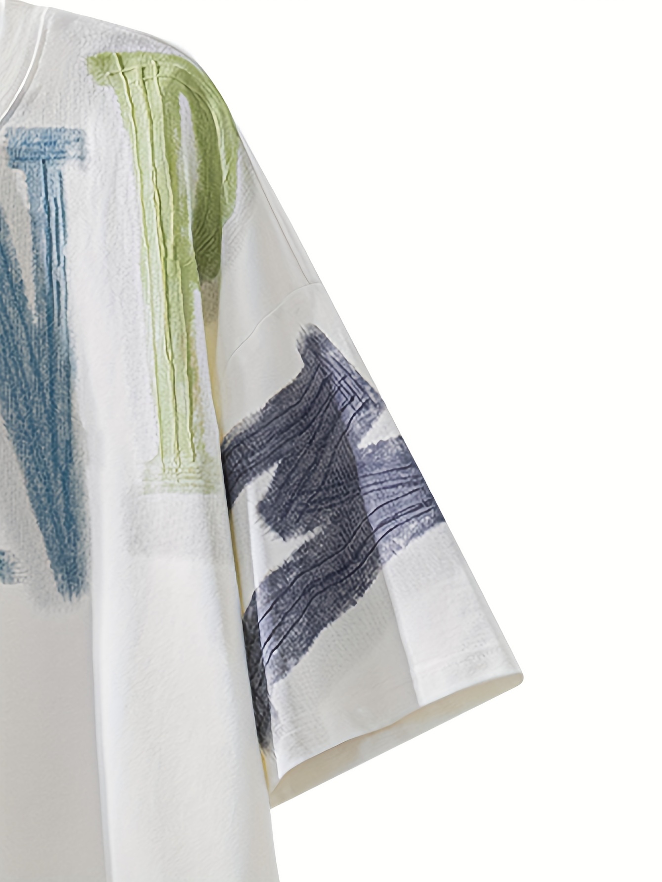 Heren gewassen casual stijl, creatieve cartoonprint comfortabel T-shirt met korte mouwen voor dagelijks gebruik, zomer om uit te gaan en thuis te zijn