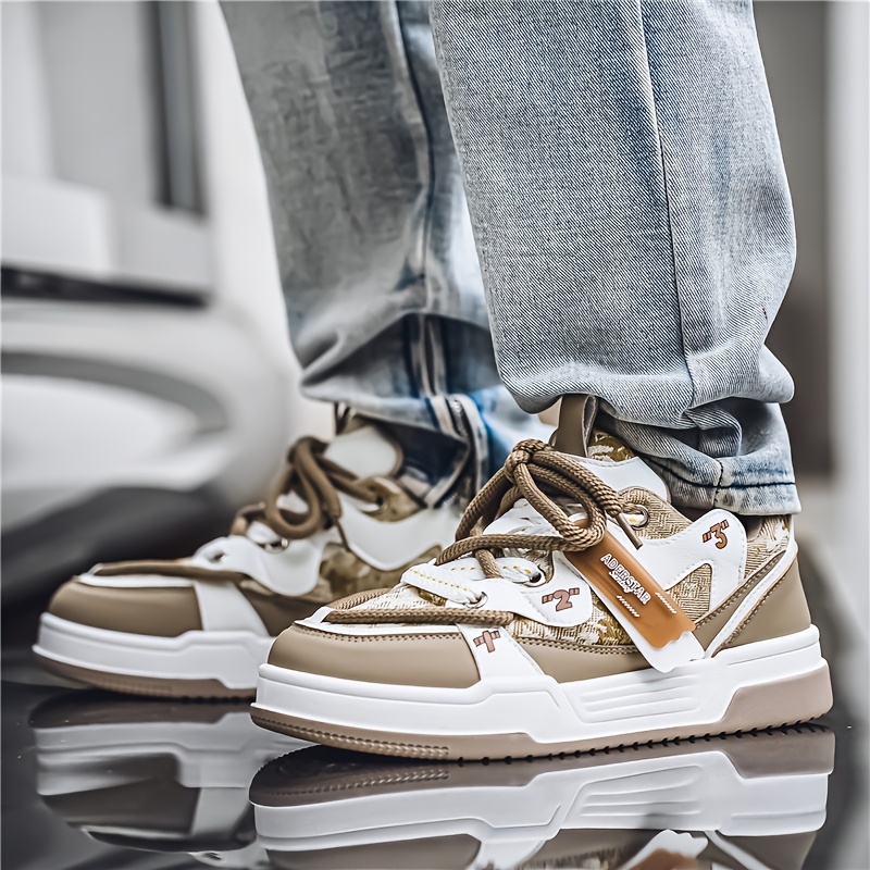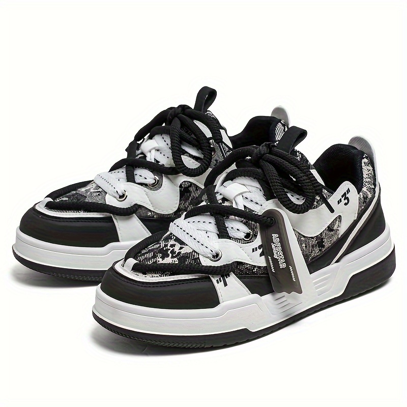 Men'S Stylish 2025 Spring Sneakers – Thick Cushioned Platform Low-Top Lace-Up Shoes with Double-Color Design, Comfortable Fabric & Faux Upper, Durable Rubber Sole for Casual Streetwear, Everyday Comfort Footwear, Minimalist Streetwear, Soft Fabric Lining