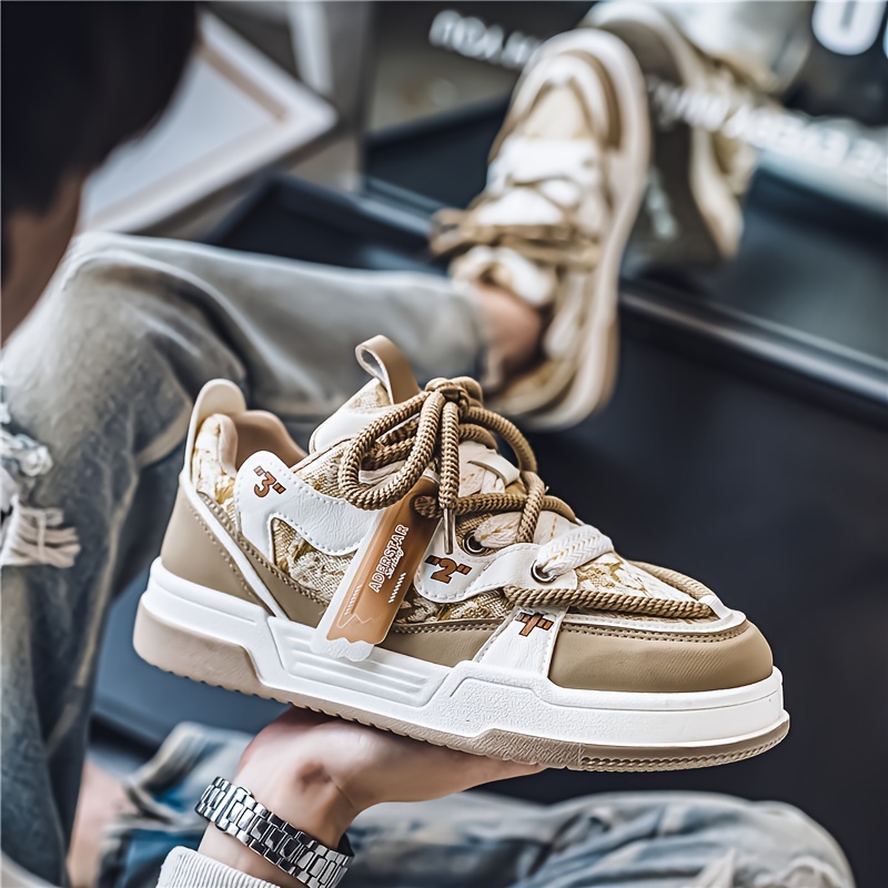 Men'S Trendy Color-Block Dad Sneakers – Chunky Sole for Height Increase, Casual Lace-Up Shoes with Graffiti Design, Comfortable Mesh Upper for Hiking & Everyday Wear, Casual Sneakers | Stylish Dad Sneakers | Thick Rubber Sole