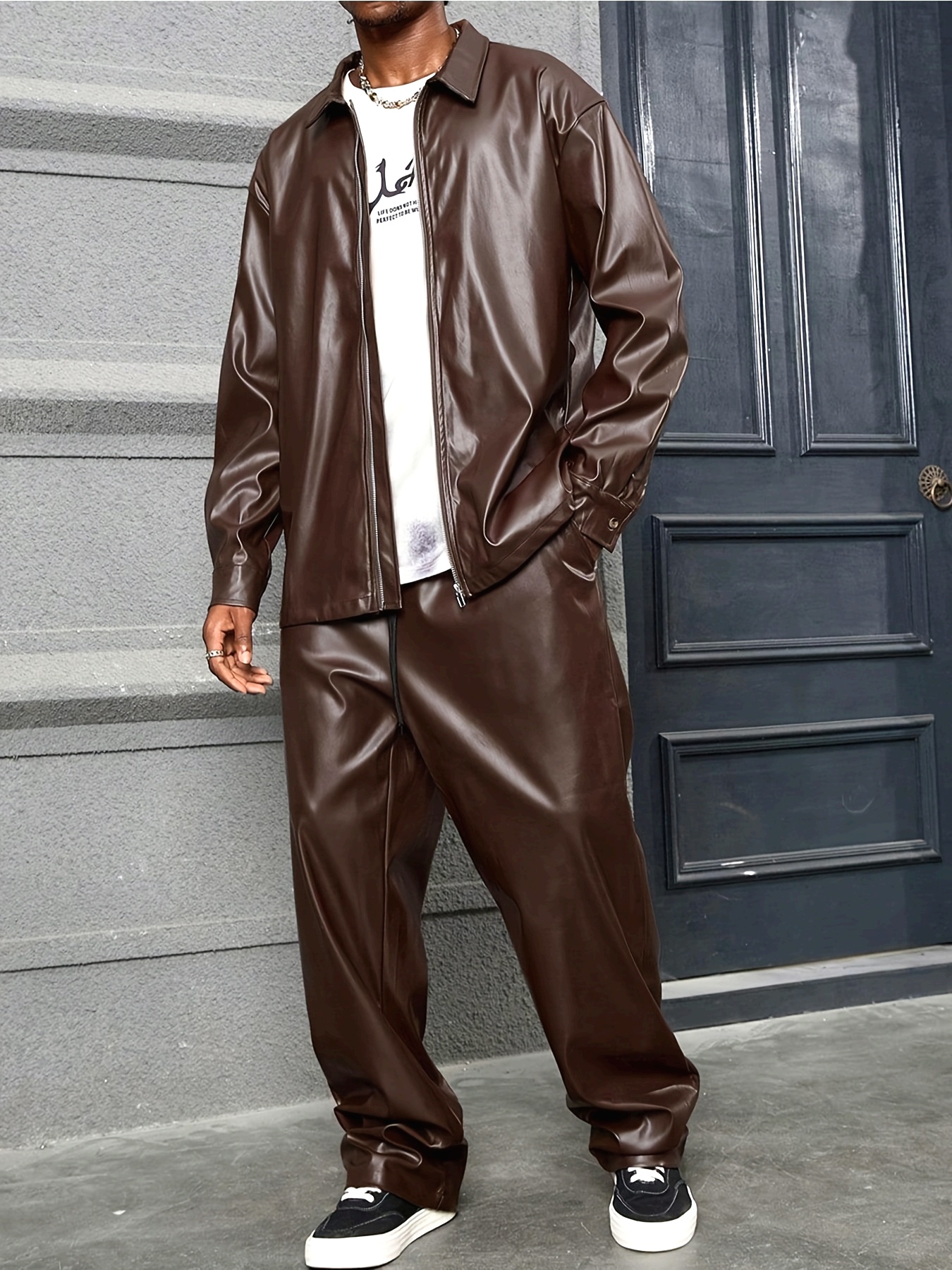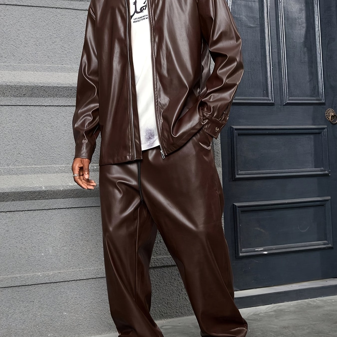 Men's Vintage Motorcycle Jacket, Casual Wear Set, Leisure Outerwear