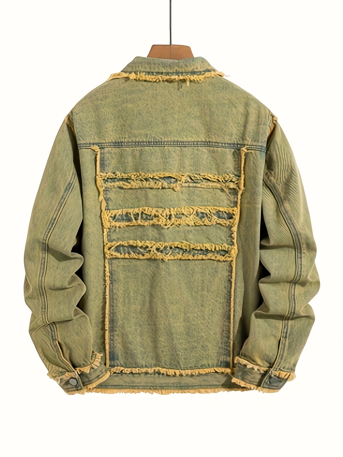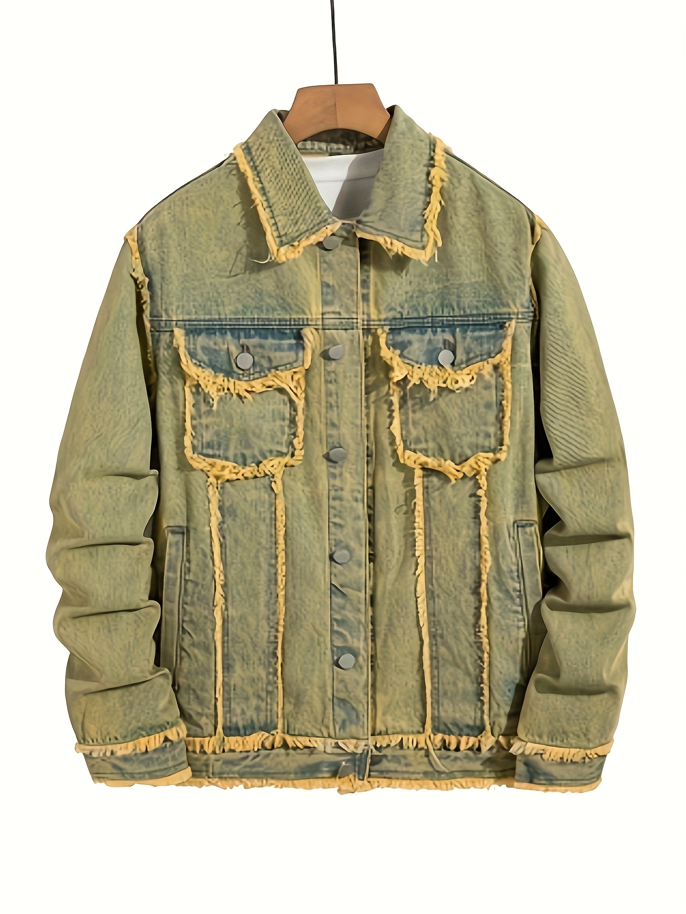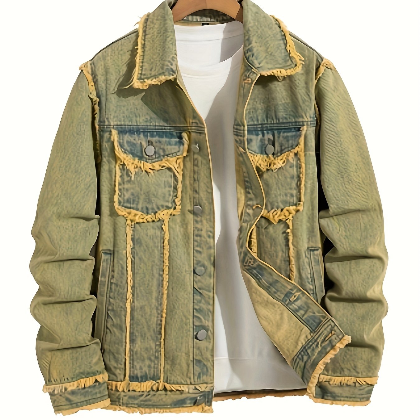 Men'S Vintage Streetwear Jacket – Non-Stretch Faux Denim-like Fabric, Classic Button Closure, Olive Green Casual Coat for Everyday & Formal Outfits – Urban Fashion Outerwear, Durable Fabric, Street Style, Retro Design, Sturdy Construction, Fashion Enthusi