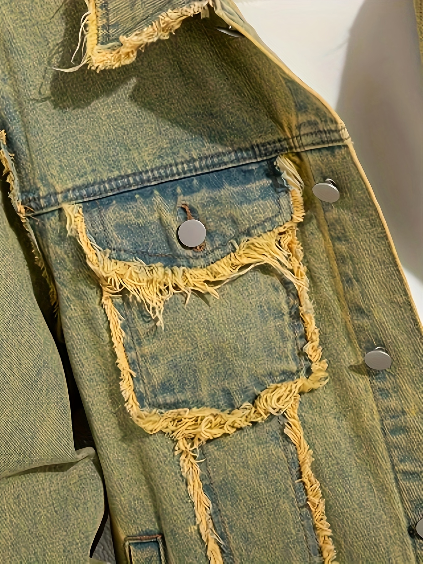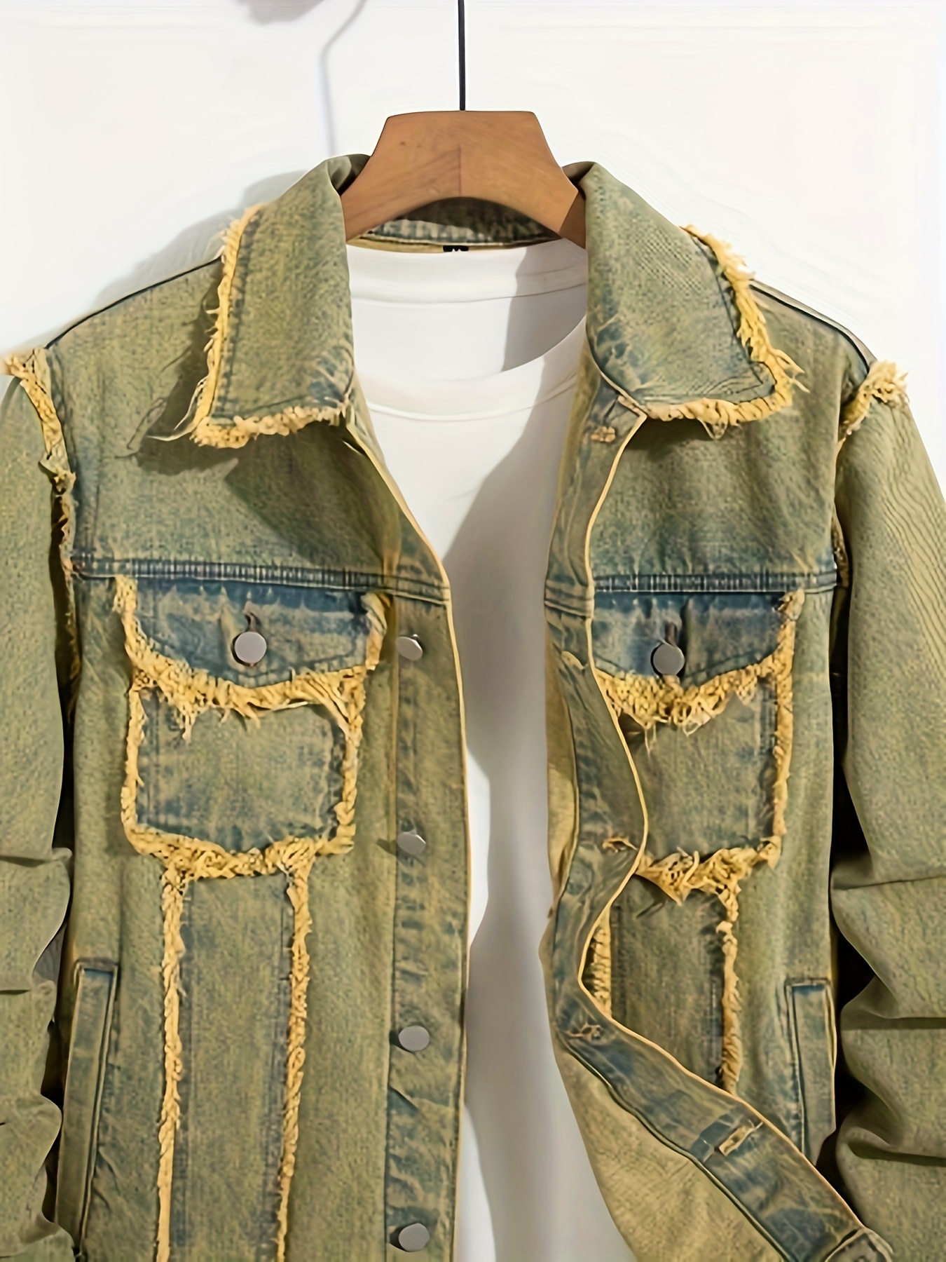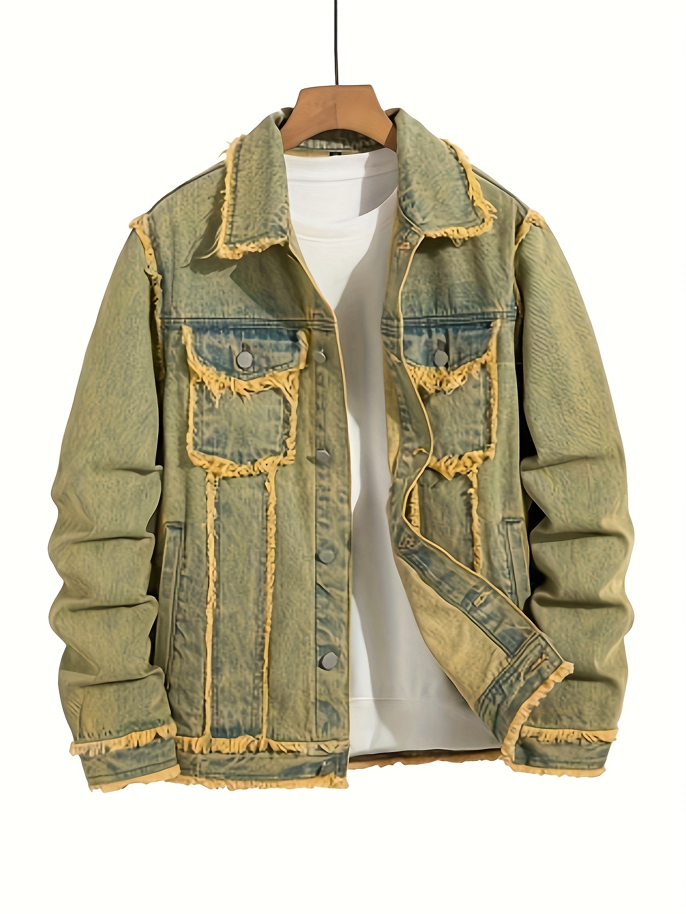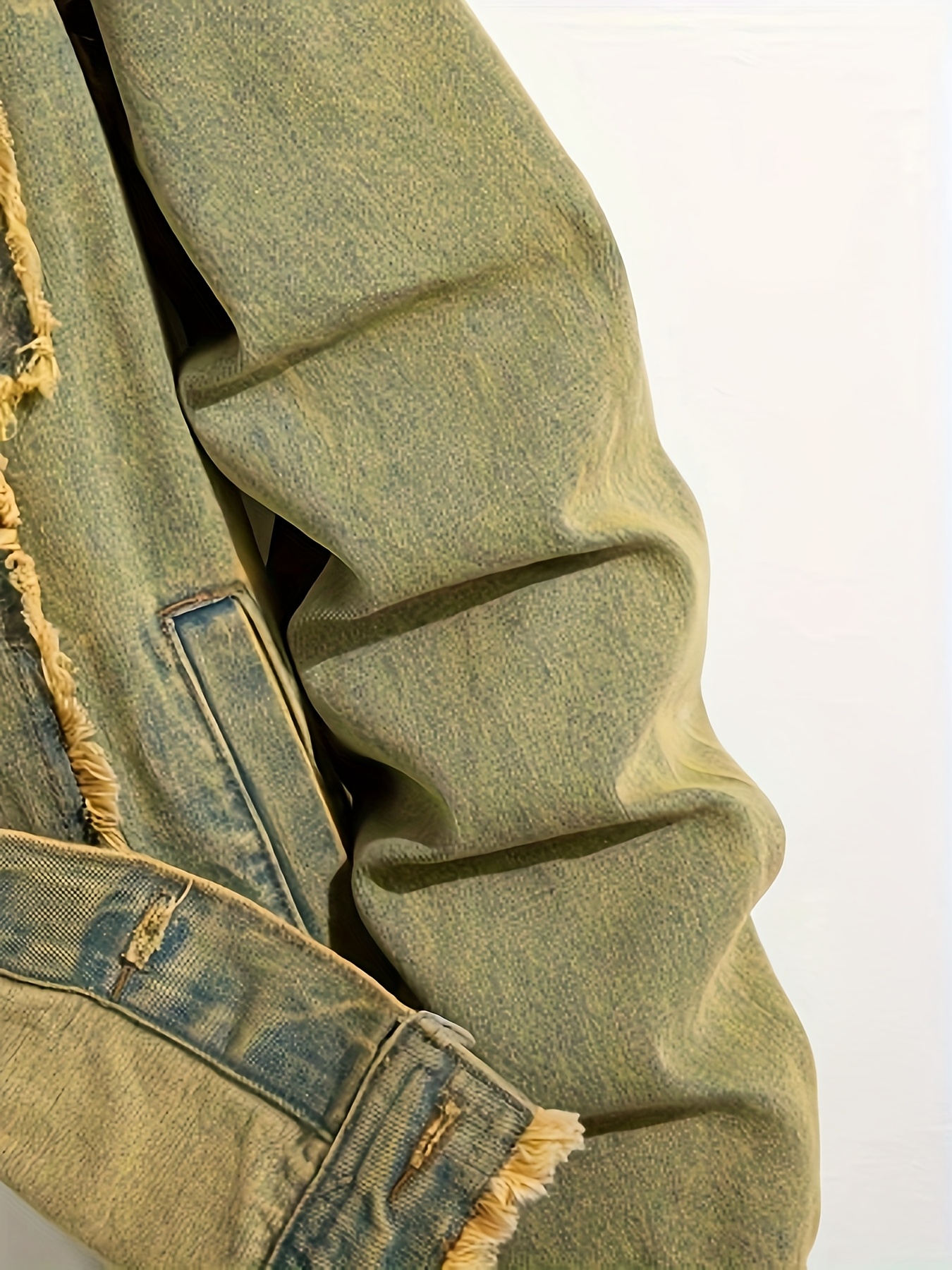 Men'S Vintage Streetwear Jacket – Non-Stretch Faux Denim-like Fabric, Classic Button Closure, Olive Green Casual Coat for Everyday & Formal Outfits – Urban Fashion Outerwear, Durable Fabric, Street Style, Retro Design, Sturdy Construction, Fashion Enthusi
