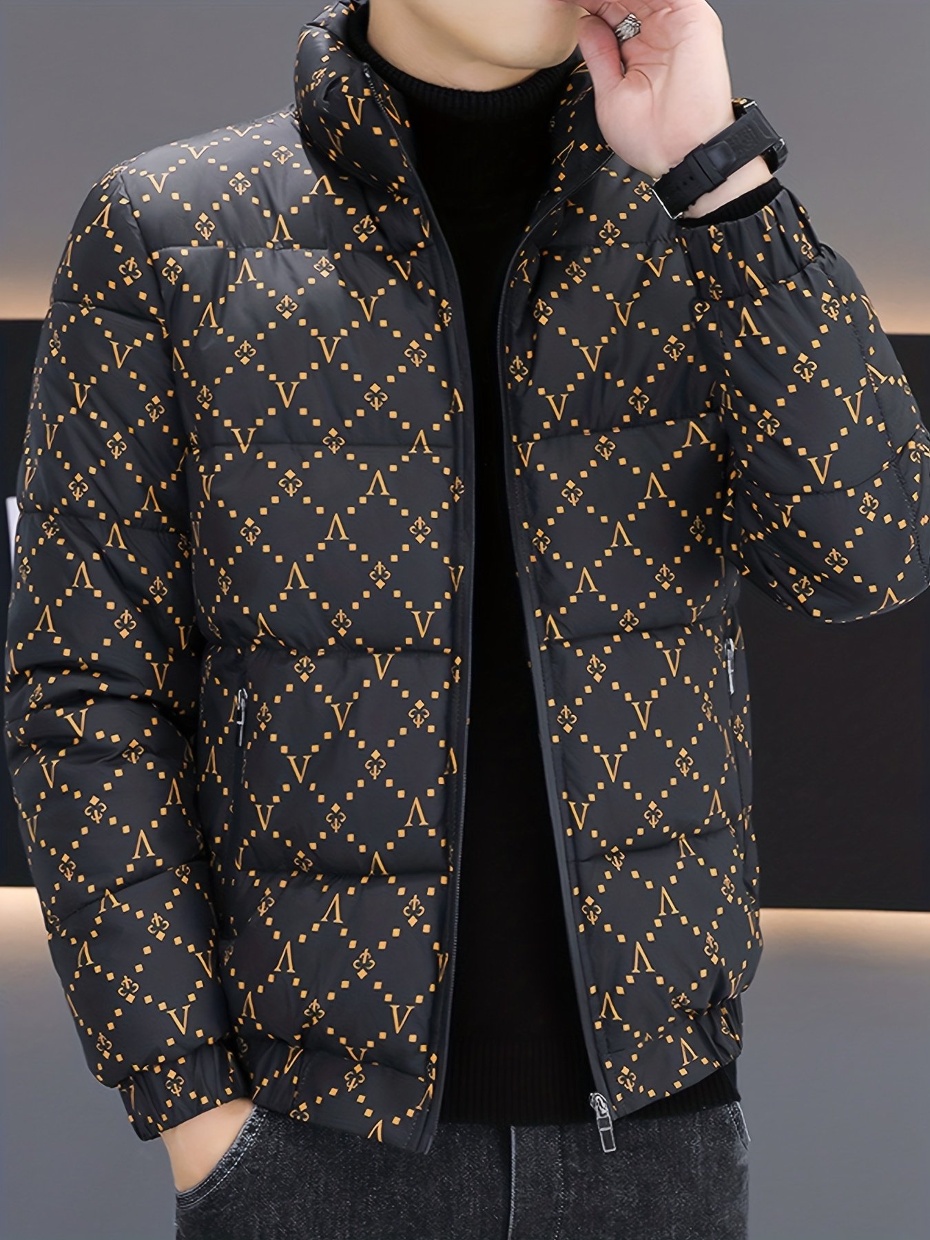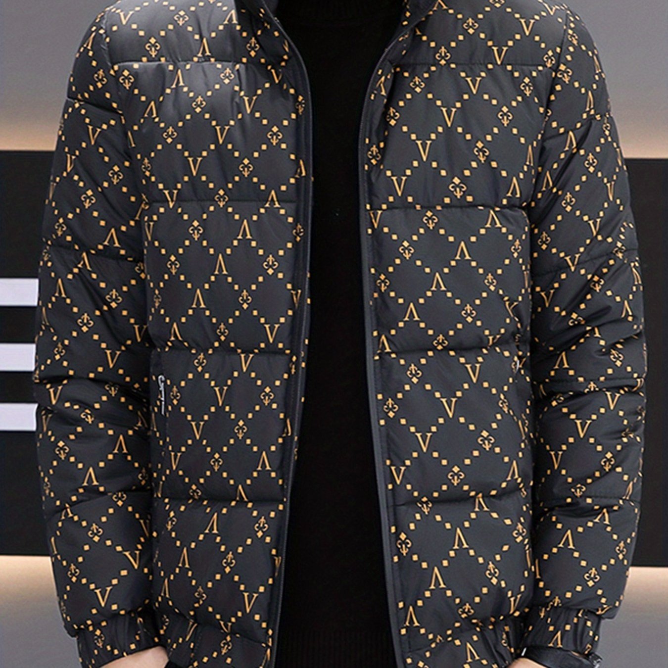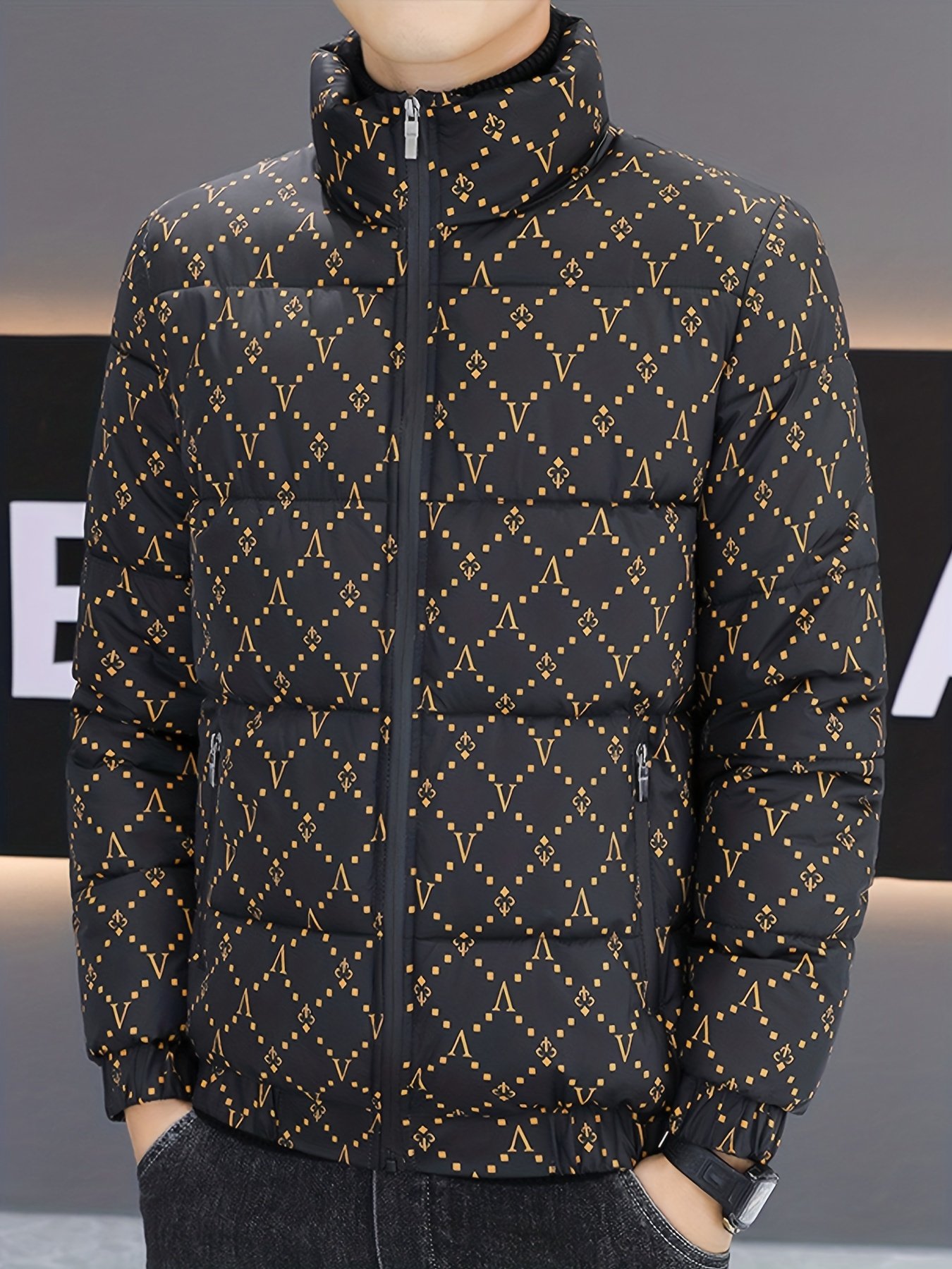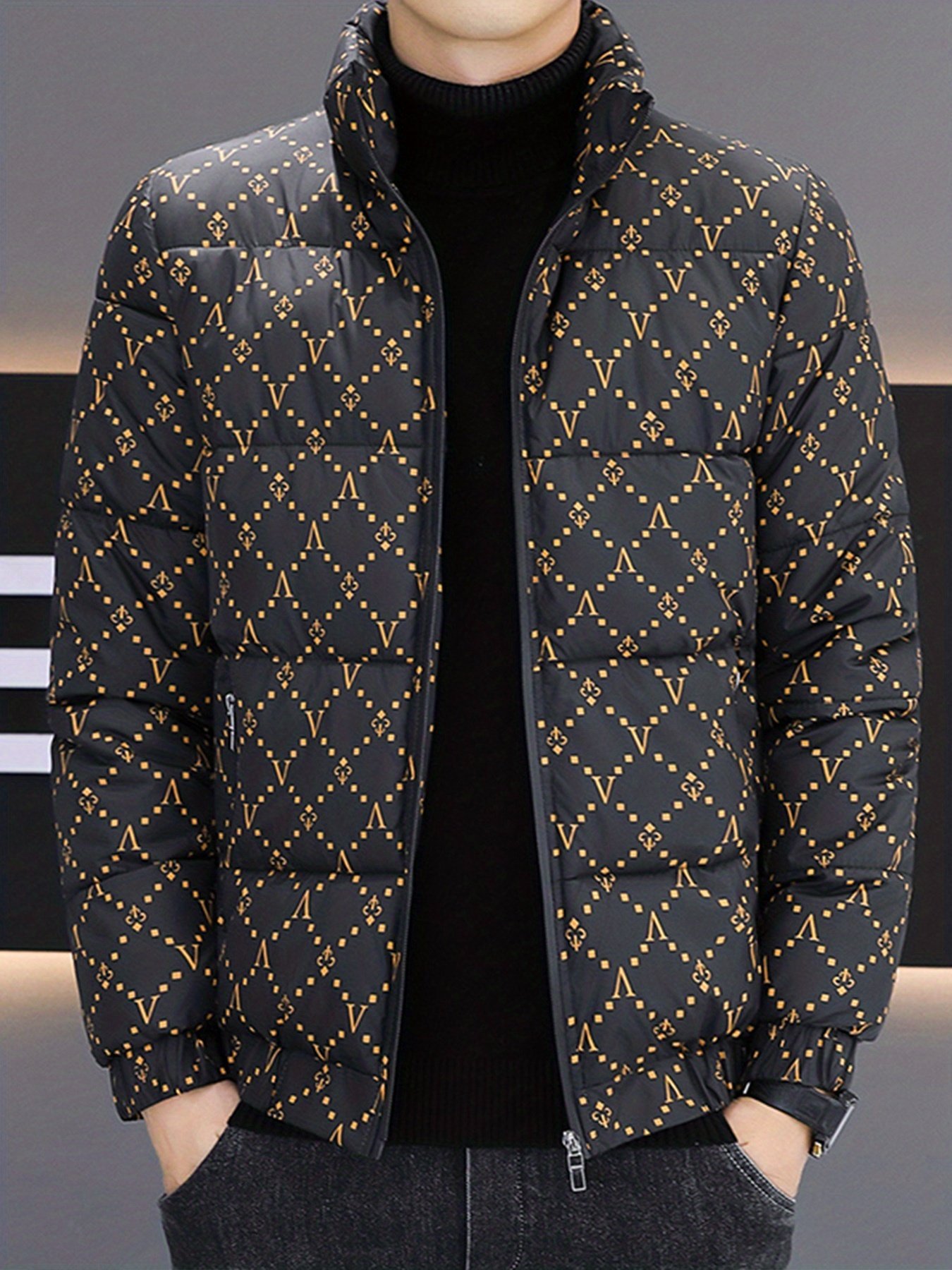 Men's Winter Stand Collar Padded Coat, Stylish Versatile Casual Warm Outerwear Jacket
