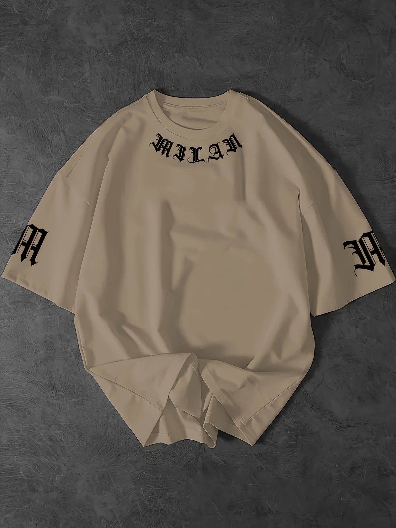 MILAN Men's Street Style Casual Graphic Tee – Relaxed Fit Crew Neck T-Shirt with Bold "e;MILAN"e; Letter Print, Lightweight & Breathable for Summer, Machine Washable, Streetwear Fashion | Trendy Casualwear | Lightweight Fabric, Casual T Shirts